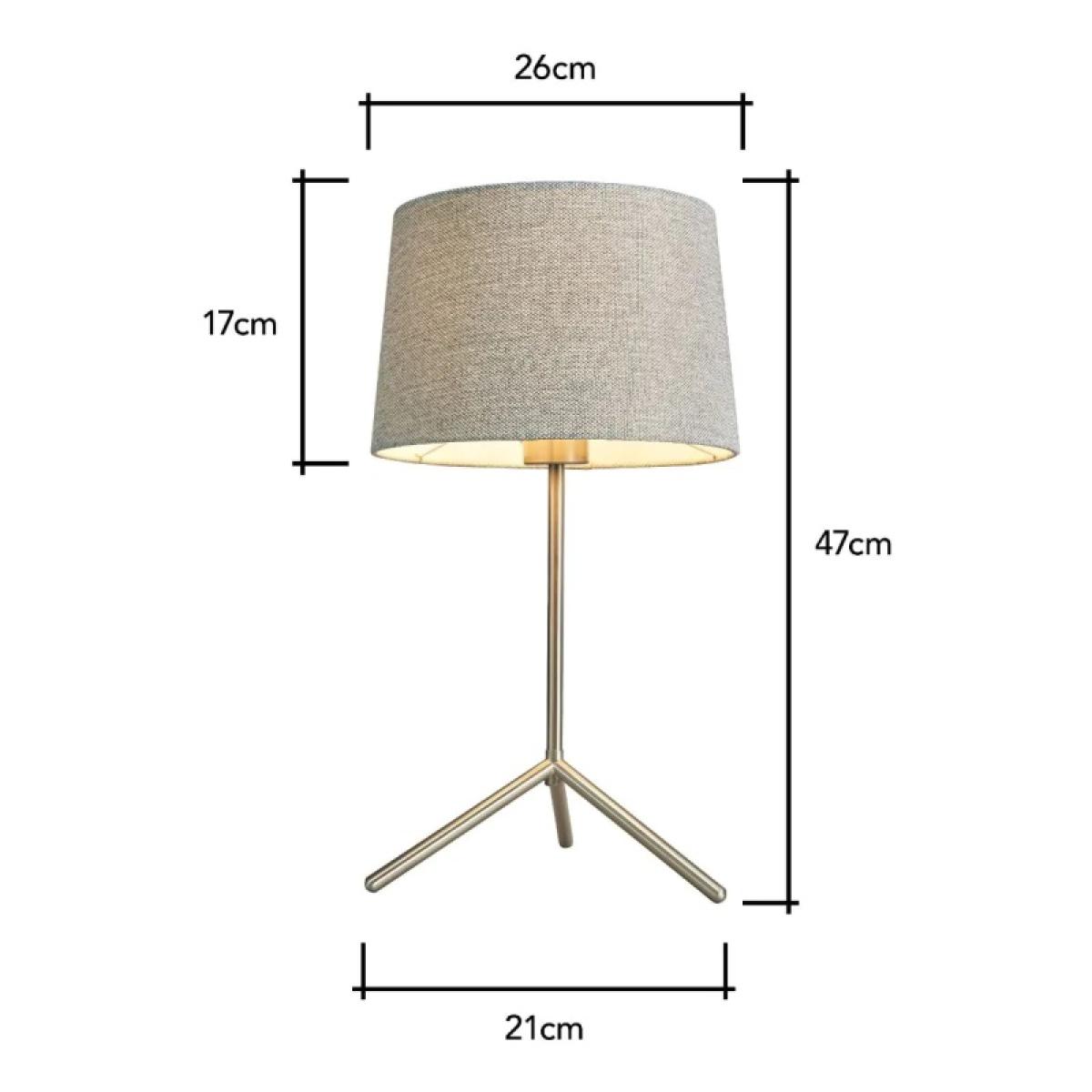 Elevate your interior décor with the BHS Stassy Table Lamp in Nickel and Grey. This chic table lamp features a sleek nickel base that adds a touch of contemporary elegance to any space. The striking combination of materials showcases a modern design aesthetic, while the soft grey fabric shade provides a warm and inviting glow, perfect for creating a cosy atmosphere in your home. The Stassy Lamp’s versatile style makes it ideal for various settings, whether placed on bedside tables, desks, or side tables. Its elegant silhouette and refined finish ensure it complements both modern and traditional interiors beautifully. Number of lights: 1 Bulb type: 1 x E27 Edison Screw bulb required (not included) Max Wattage: 10 W (LED only) Compatible with LED Shade Material: Fabric Base Material: Metal Some assembly is required Dimensions: Height: 47cm Diameter: 26cm Base Diameter: 21cm Shade Height: 17cm Shade Diameter: 26cm All screens vary in colour reproduction and whilst every effort has been made to display the colour as accurately as possible it is for guidance only.