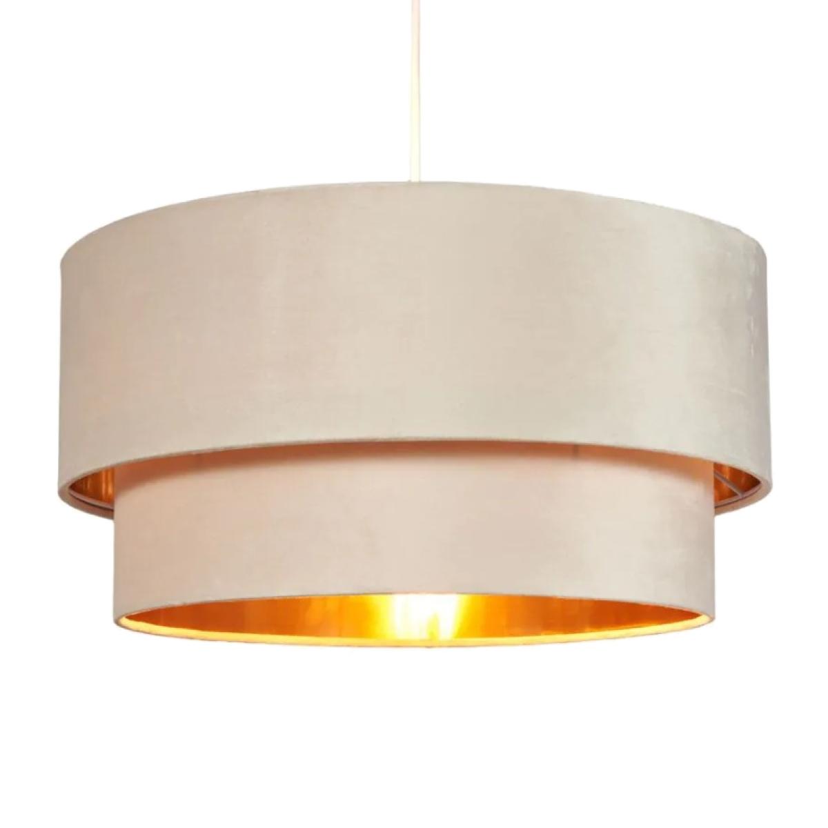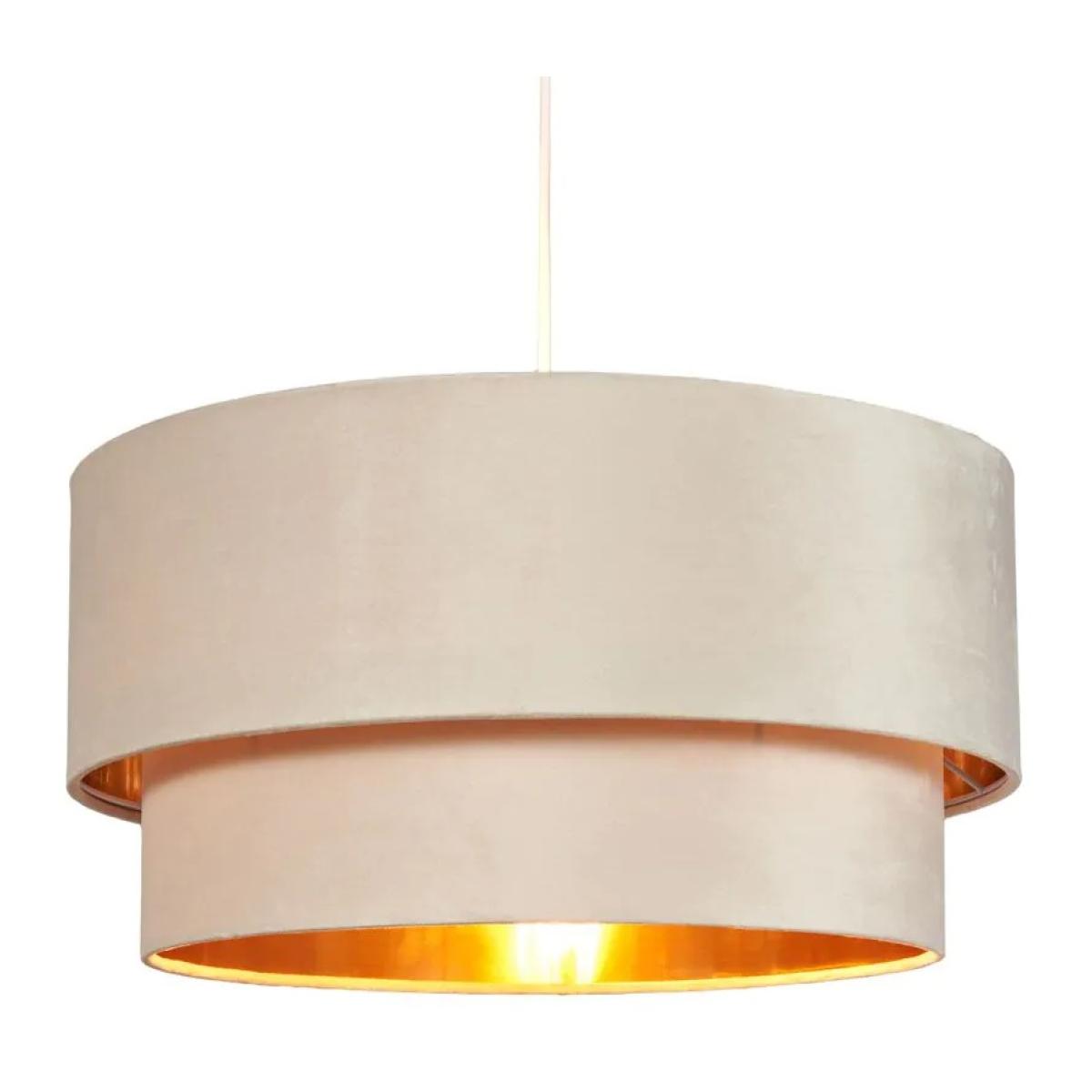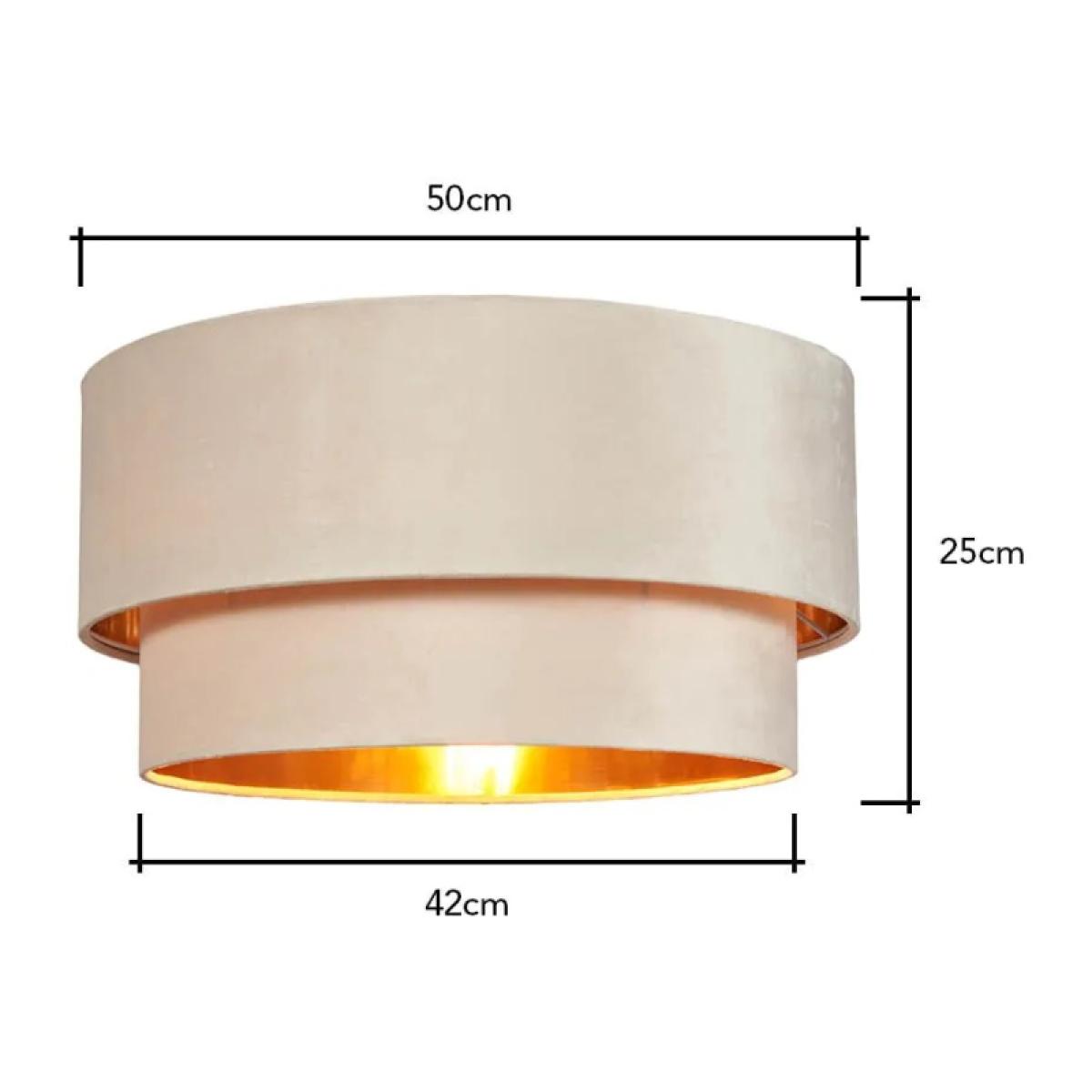 Enhance your lighting with the Tia Super Size Tiered Velvet Shade from BHS, featuring a rich ivory velvet texture and elegant brass accents. The combination of luxurious materials creates an opulent and sophisticated aesthetic. Its oversized design makes a bold statement, adding both refinement and warmth to your space, turning any room into a haven of style and comfort. Max Wattage 10 Watt (LED Only) Dimensions Height 25cm Diameter 50cm Base Diameter 42cm Weight 1.2kg All screens vary in colour reproduction and whilst every effort has been made to display the colour as accurately as possible it is for guidance only.