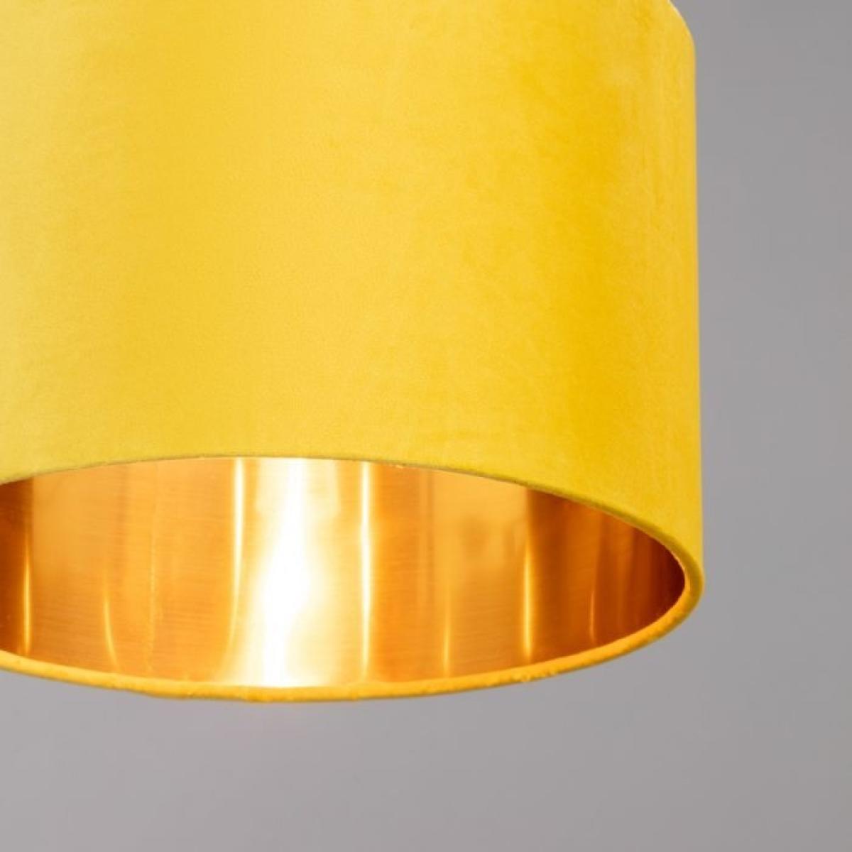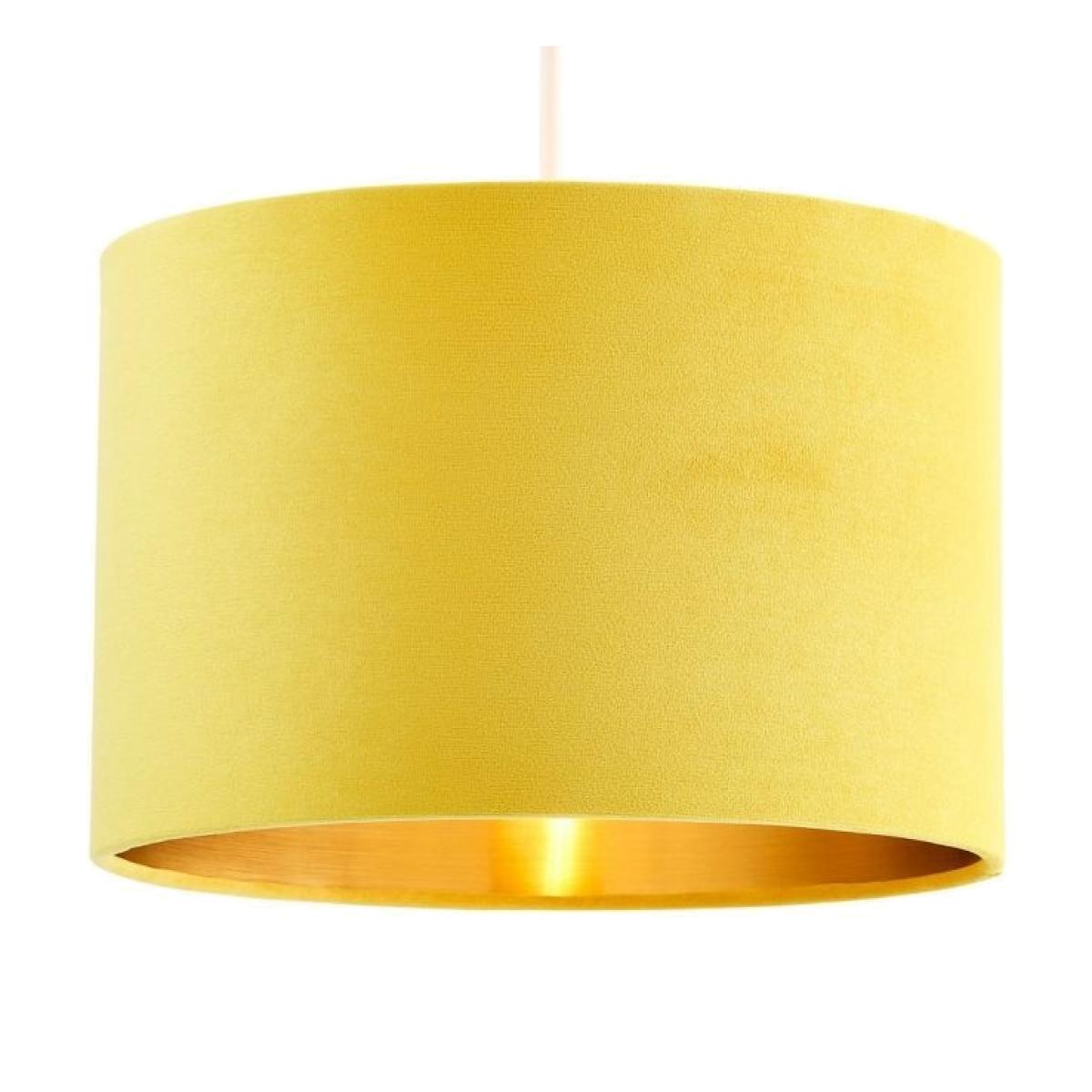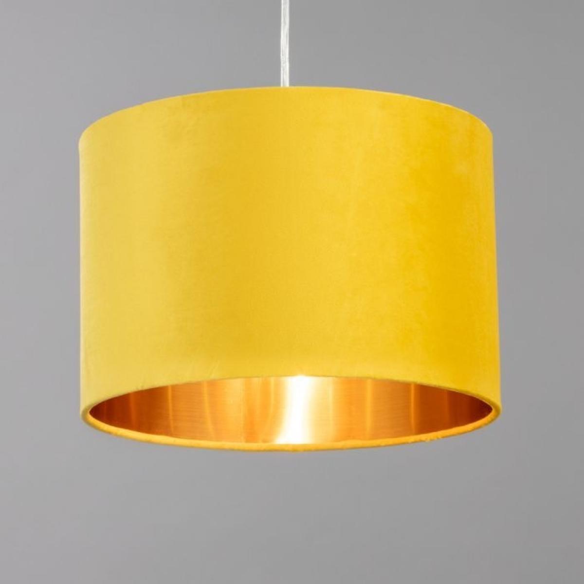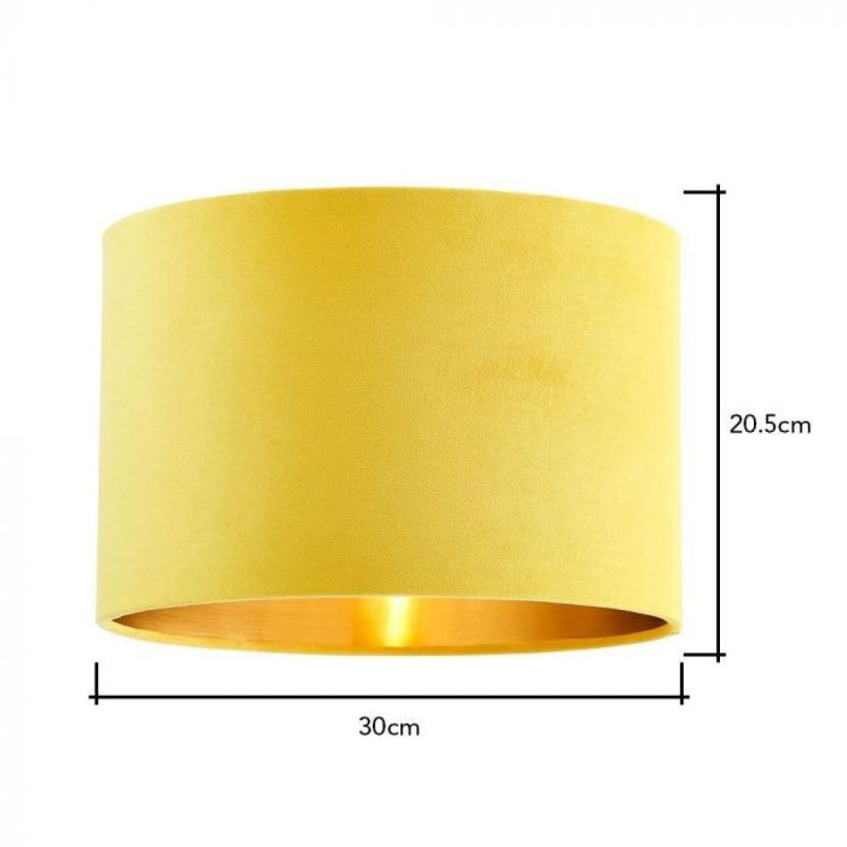 The Velvet 30cm Shade in Ochre and Brass will offer a pop of colour in your home. The ochre finish has a glamorous sheen that shimmers in the light giving your room a luxury feel. Within, the brass lining projects a warm, soothing light that changes the mood in any room. With easy to fit functionality, this mid-century shade can be easily incorporated onto any existing fitting. Number of Lights 1 Light Bulbs Required 1 Bulbs Included No Cap Type Fits over Existing Fixture Compatible with LED Yes Height CM: 20.5 Diameter CM: 30.0 Shade Height CM: 20.5 Shade Diameter CM: 30.0 Shade Material Velvet Material Brass