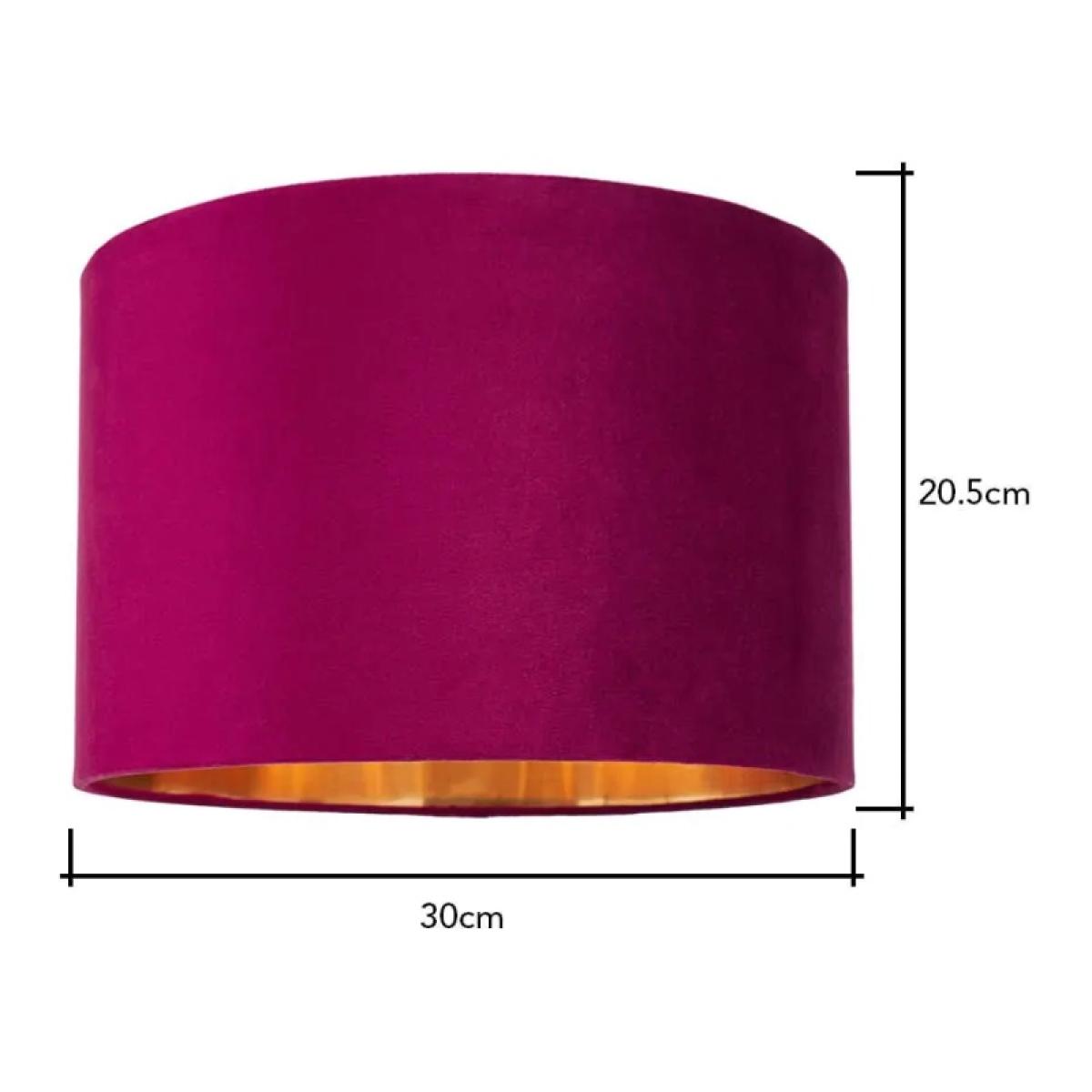 Introduce a touch of luxury to your space with the BHS Velvet Easy Fit Light Shade in Raspberry Red and Brass lining, now in a sleek 30cm size. This smaller yet equally impactful shade features a beautiful Raspberry Red velvet exterior paired with refined satin brass accents, offering a sophisticated contrast that suits any room style. Perfect for compact spaces, the 30cm shade is designed to fit easily onto existing light fixtures, eliminating the need for wiring or tools. The velvet fabric softens and warms the light, creating a cozy, inviting atmosphere ideal for bedrooms, reading nooks, or entryways. With its effortless installation and premium design, this easy-fit shade brings a layer of modern elegance to even the smallest spaces. Shade Material: Velvet Colour: Raspberry Red Height: 20.5cm Diameter: 30cm All screens vary in colour reproduction and whilst every effort has been made to display the colour as accurately as possible it is for guidance only.