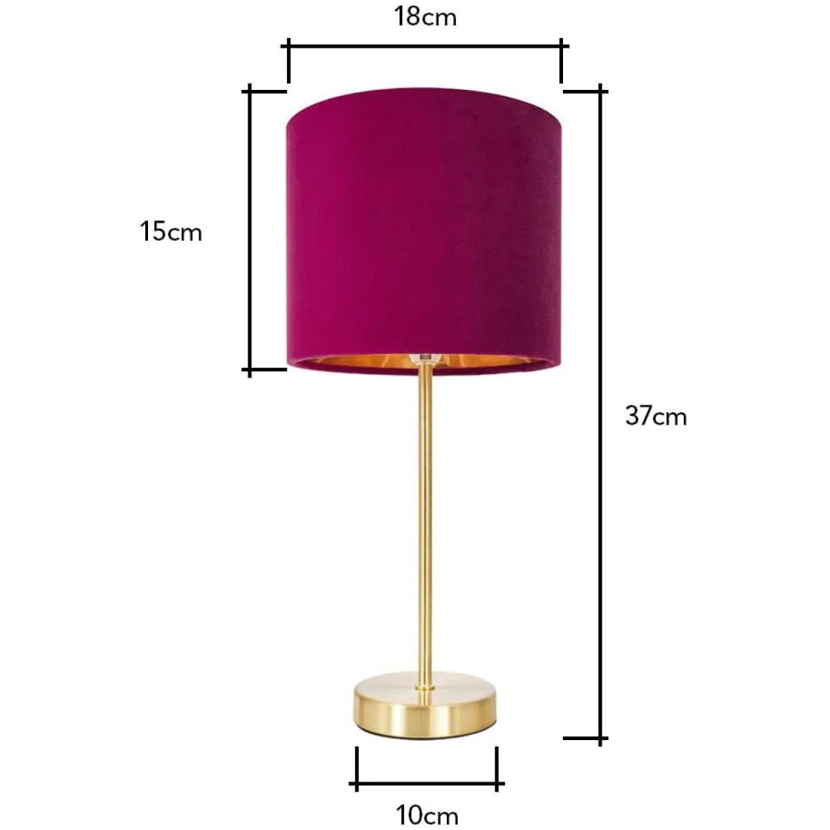 Introducing the BHS Velvet Table Lamp featuring a Raspberry Red shade and a striking brass base, an exquisite piece that brings a touch of elegance and sophistication to any space. The vibrant raspberry red shade not only adds a pop of colour but also provides a soft, warm glow, perfect for creating a stunning atmosphere in living rooms, bedrooms, or office areas. The polished brass base complements the raspberry red hue, offering a stylish contrast that enhances the lamp's overall aesthetic. This combination of materials and colours makes it a versatile addition to various décor styles, from modern to traditional. Number of lights: 1 Bulb type: 1 x E14 Small Edison Screw bulb required (not included) Max Wattage: 10 W (LED only) Compatible with LED Shade Material: Velvet Base Material: Metal Some assembly is required Dimensions: Height: 37cm Diameter: 18cm Base Diameter: 10cm Shade Height: 15cm Shade Diameter: 18cm All screens vary in colour reproduction and whilst every effort has been made to display the colour as accurately as possible it is for guidance only.