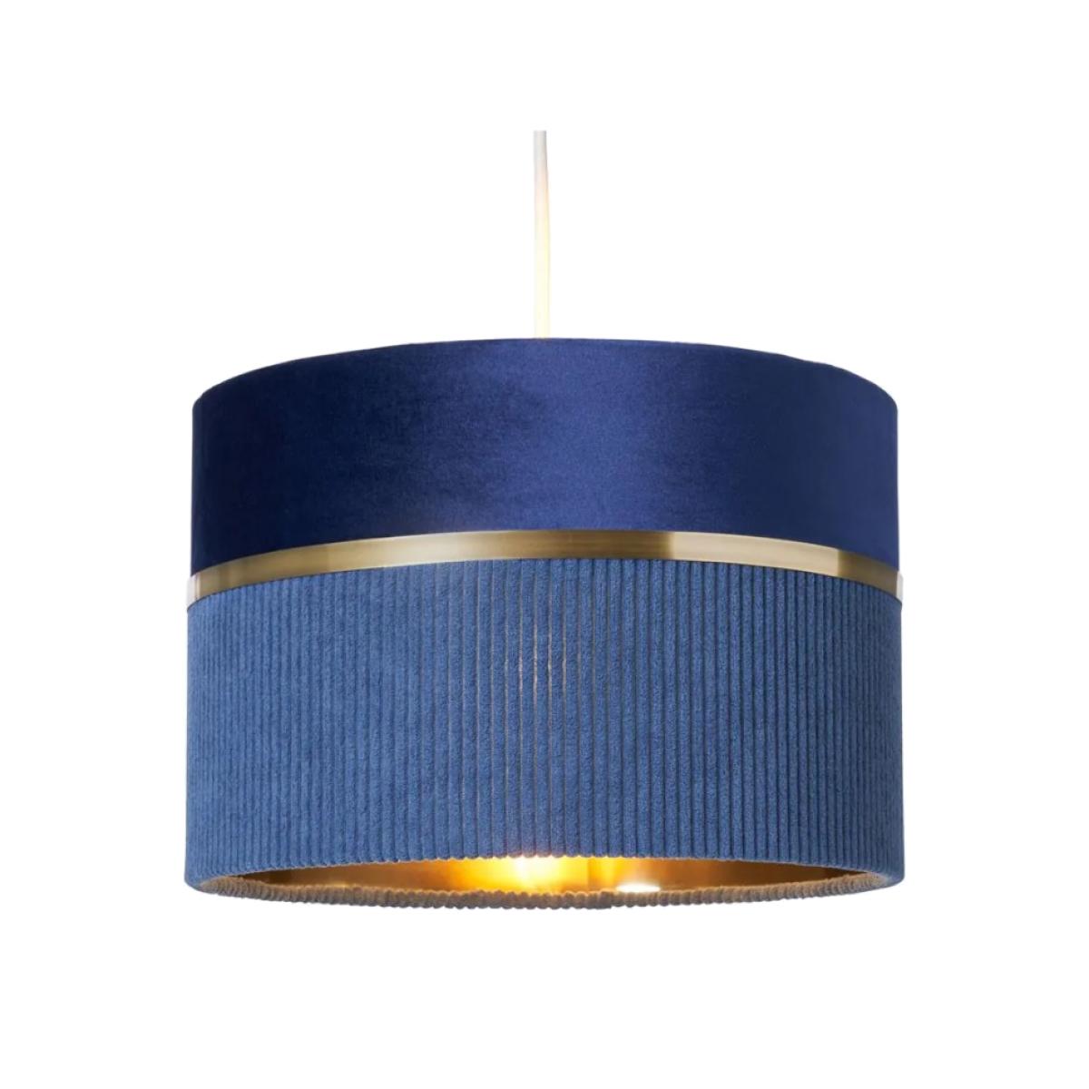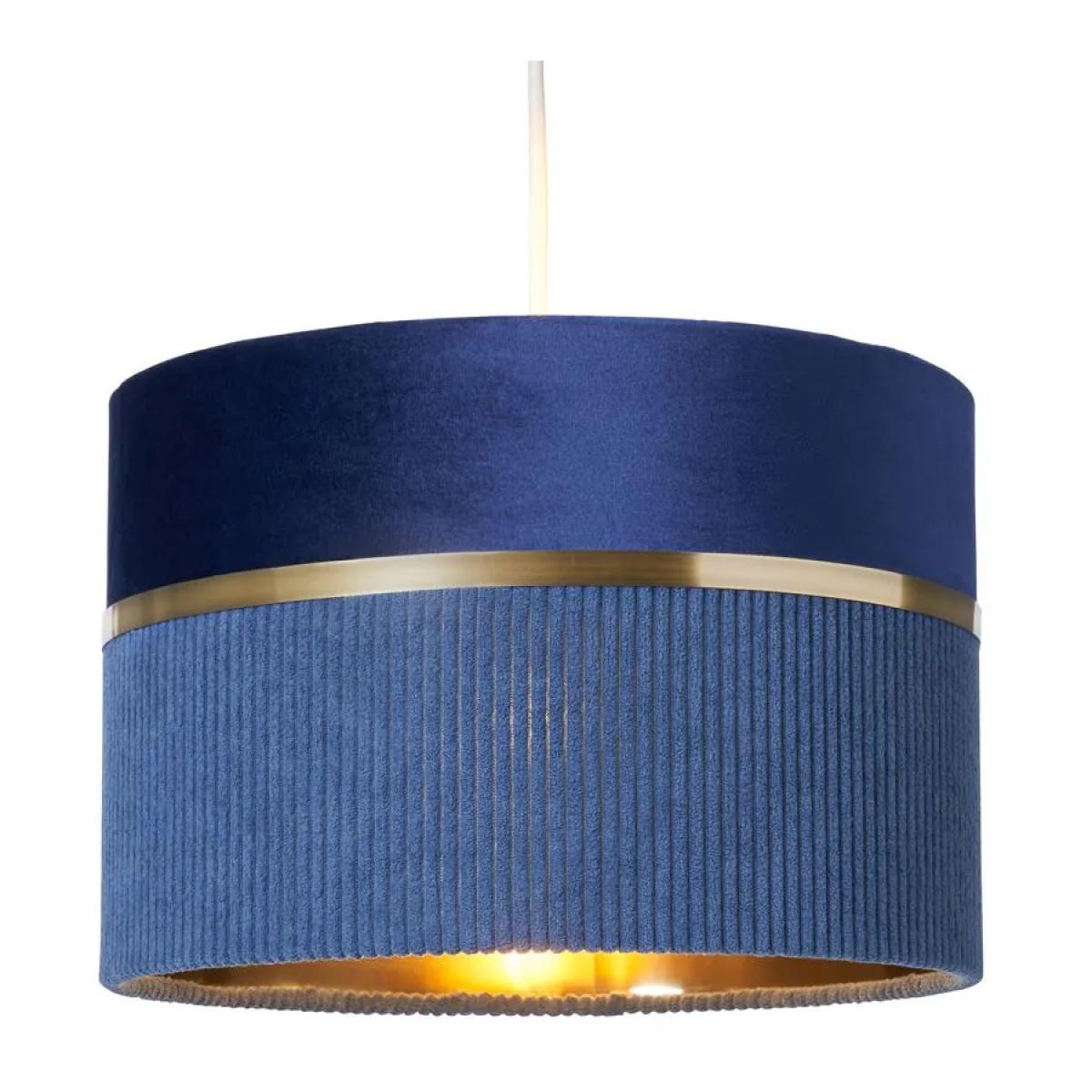 Bring a refined touch to your home with the BHS Violet 30cm Mixed Fabric Easyfit Shade in Blue. Featuring a stylish blend of textures and a calming palette, this versatile shade pairs beautifully with both classic and contemporary interiors. The brass lining adds a warm, ambient glow—perfect for effortlessly updating pendant light fittings without the need for tools. Shade Material: Fabric Compatible with LED Colour: Blue Cap Type: Fits over Existing Fixture Dimensions: Height: 20cm Diameter: 30cm Weight: 0.4kg All screens vary in colour reproduction and whilst every effort has been made to display the colour as accurately as possible it is for guidance only.