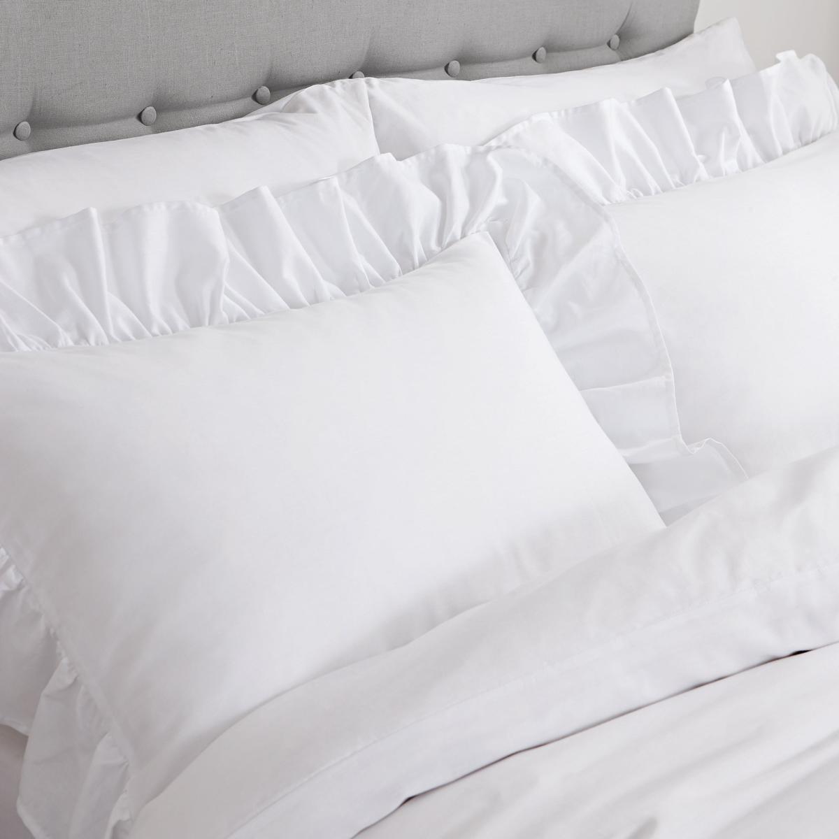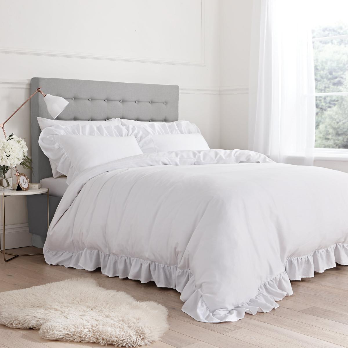 Softly relaxed, the frills on this stunning 200 thread count luxury cotton bedding set, bring a casual-contemporary style to this classic fresh palette. Bianca envokes a sense of wellbeing and relaxation, perfect for creating a calming retreat with timeless styling for the modern home. Beautifully crafted from 100% cotton, this betting set is soft, durable, and machine washable.