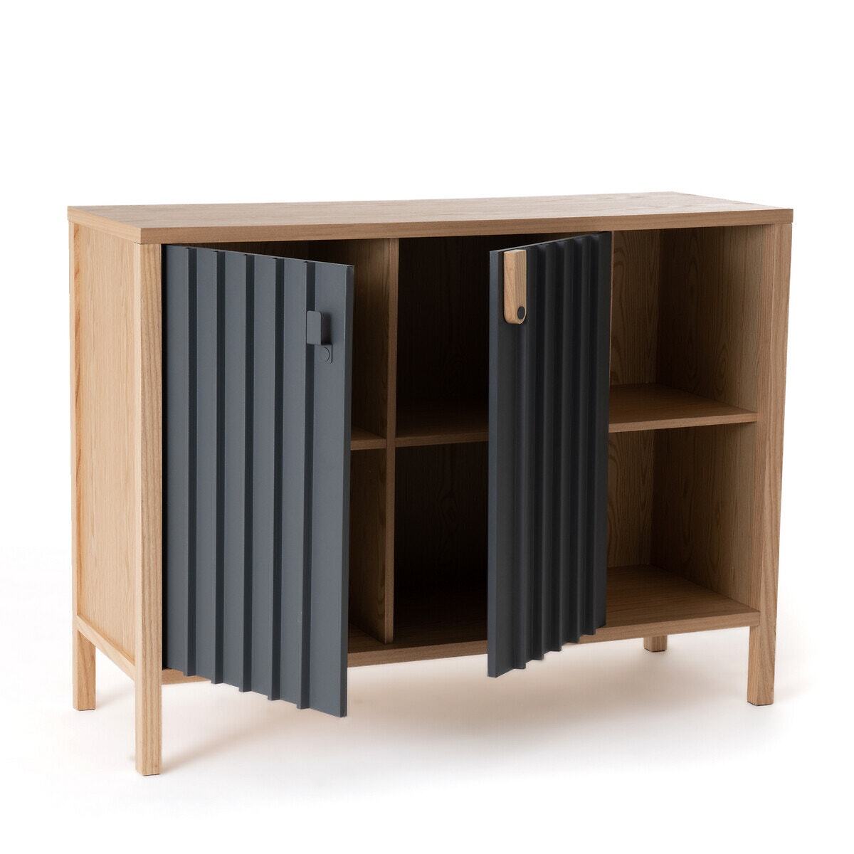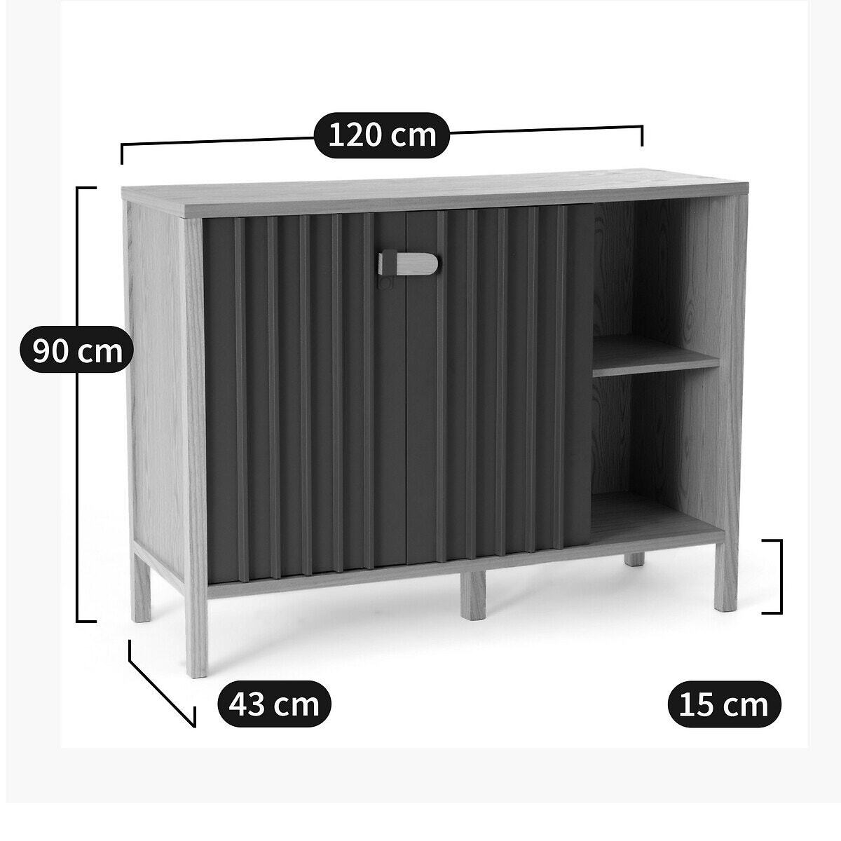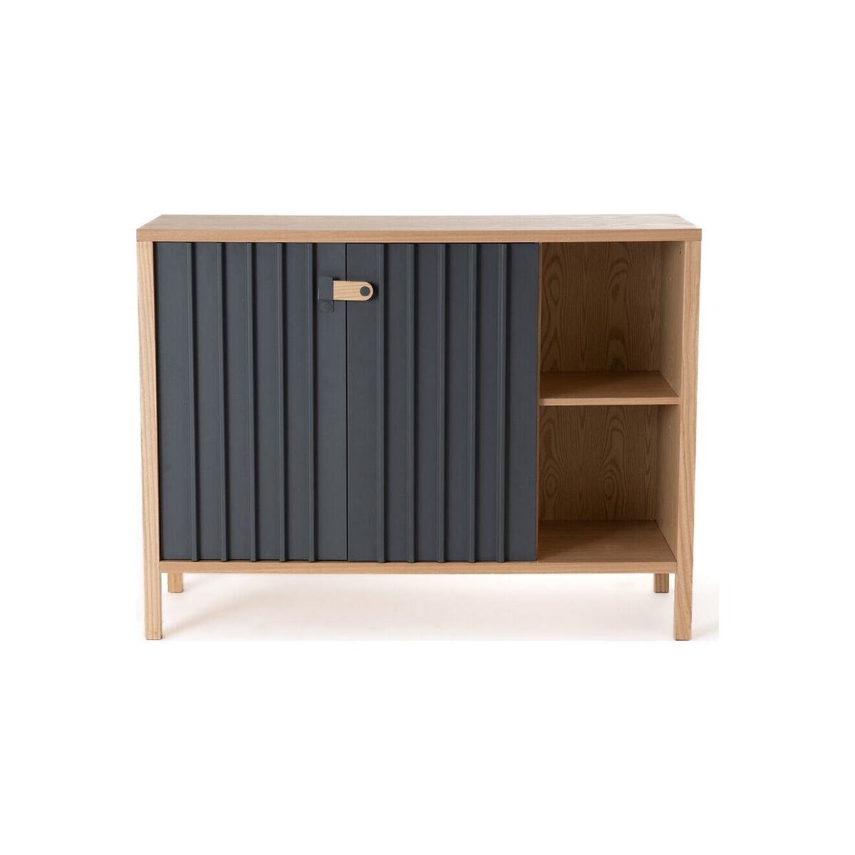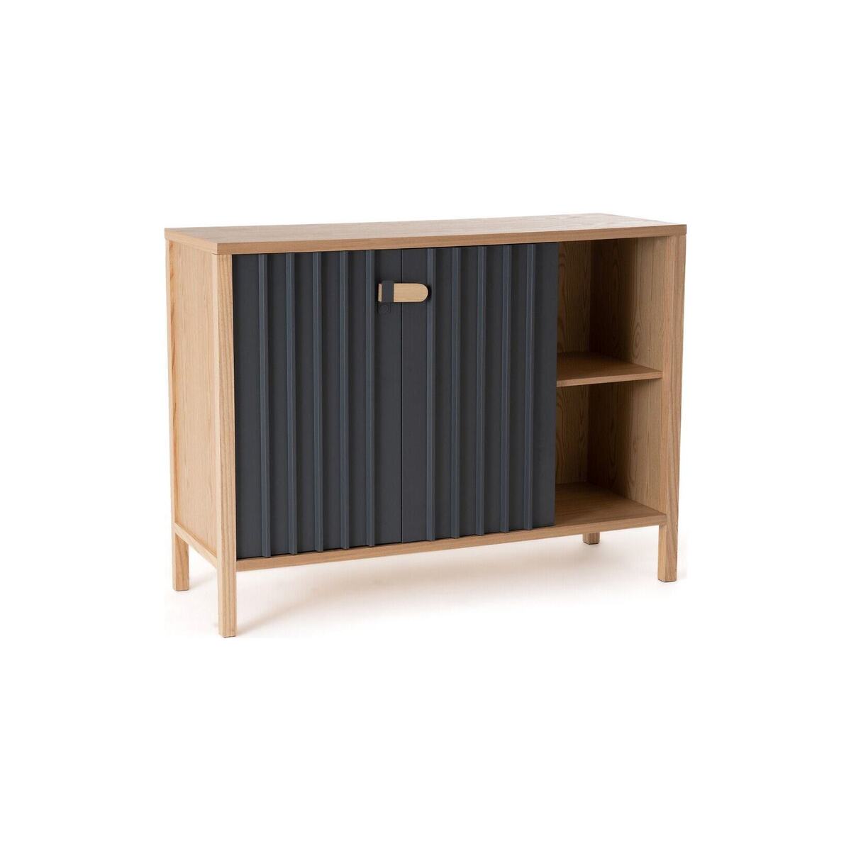 The Bianca Ash Sideboard with 2 Doors. This range of storage furniture combines sober lines and ultra-contemporary moulded steel doors.