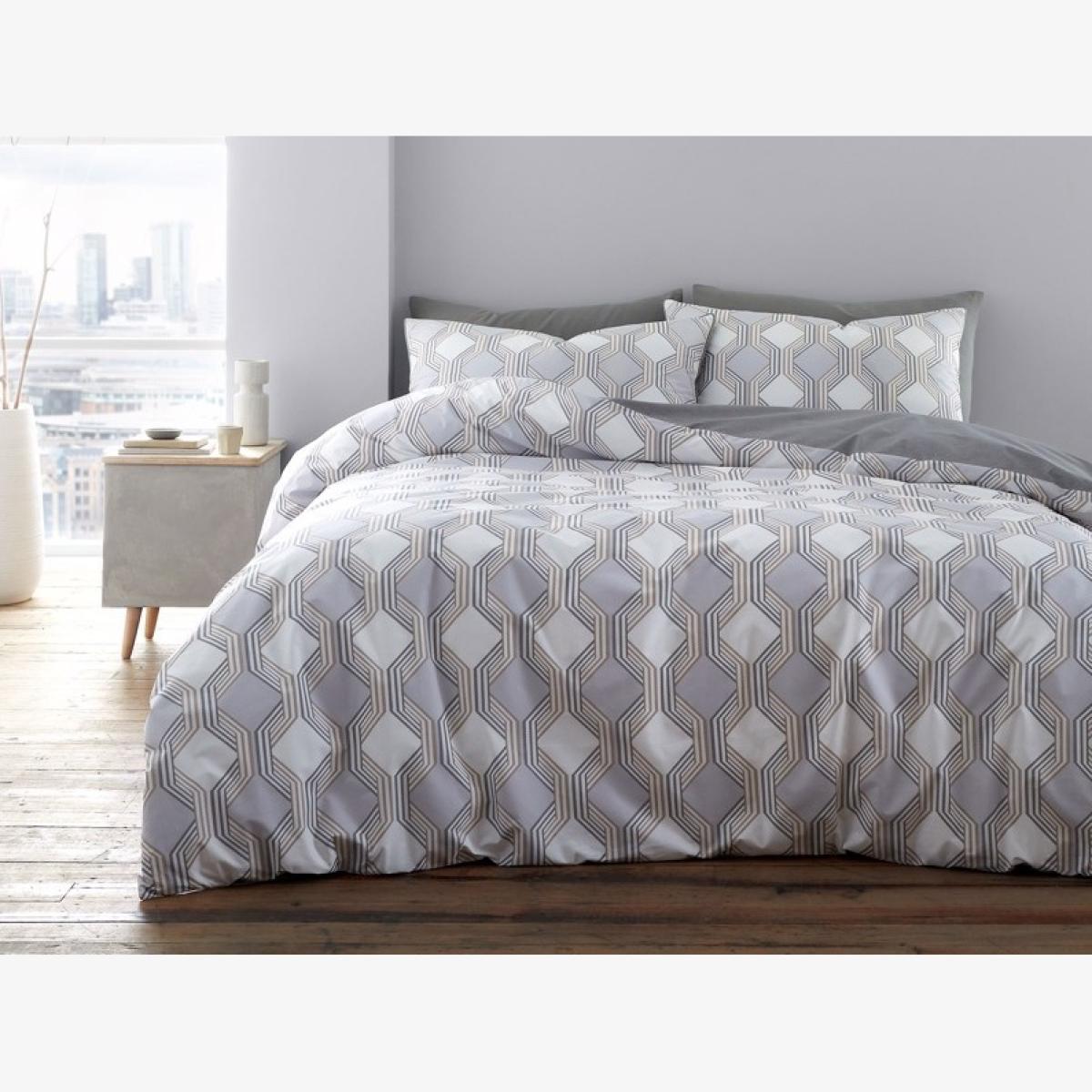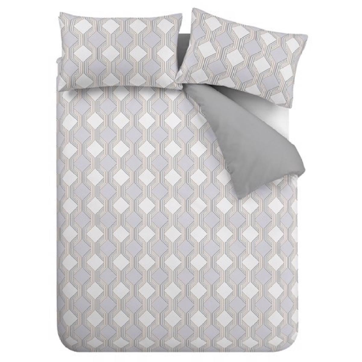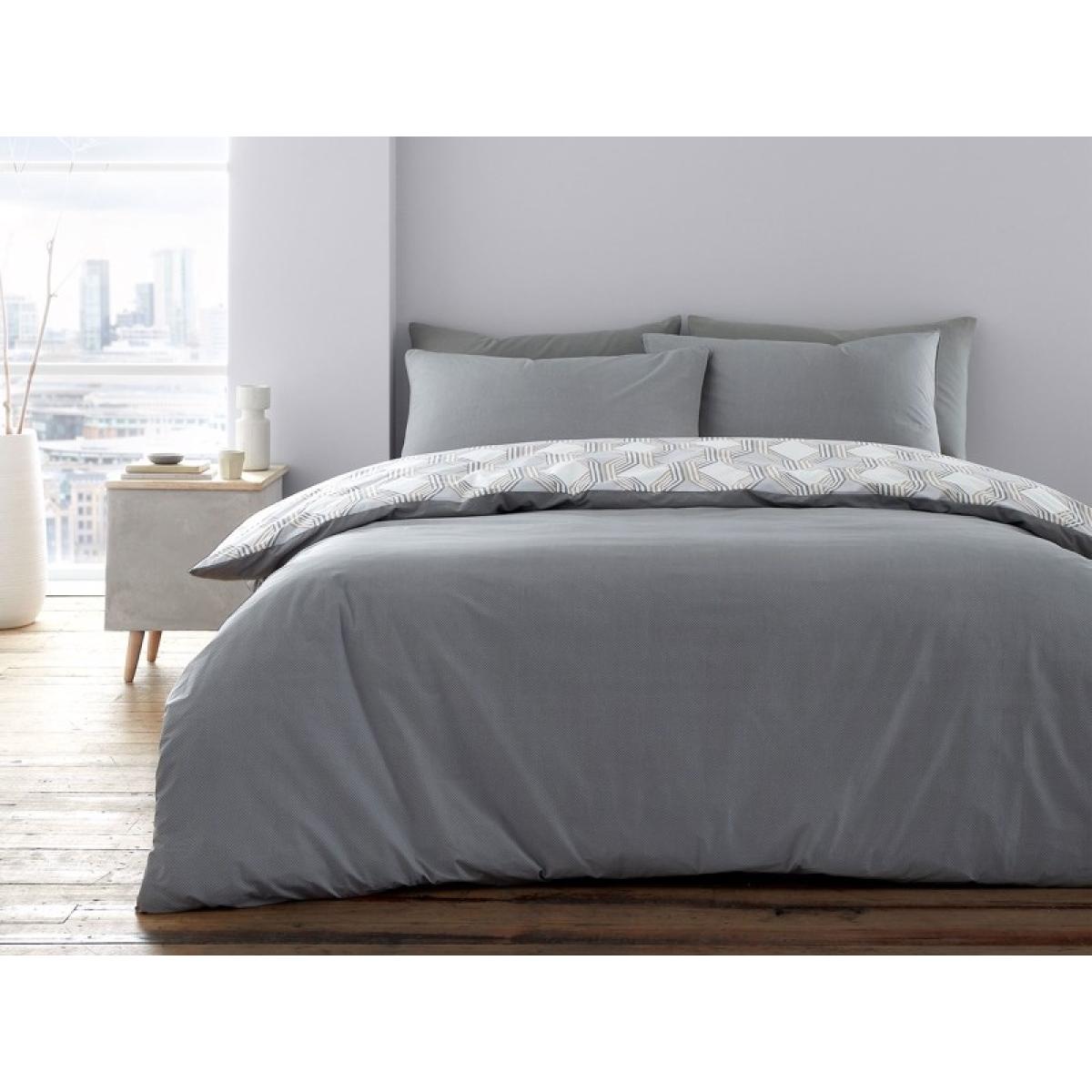 Enhance your bedroom decor with the Bianca Atticus Geometric Duvet Set. This is a fully reversible ensemble, where versatile style meets sumptuous softness, for a sleep haven that exudes sophistication. The front showcases interlocking geometric shapes, creating a mesmerizing display of contemporary design, while the reverse features a charming miniature checkerboard pattern for a touch of timeless charm. Dream in blissful comfort under wonderfully soft 200 thread count percale responsibly sourced cotton, a beautiful naturally breathable fibre that encourages a better night's sleep. Features: Pure Cotton:The natural fibres of cotton create a fabric that is smooth and comfortable to touch. Responsible: Crafted from soft responsibly sourced cotton. 200 Thread Count: Percale weave creates a smooth, soft hand feel. Fully Reversible: For two stylish looks in one. Button Fastening: To keep your duvet securely in place. Envelope Closure: Providing a secure and snug fit for your pillow. Care Instructions: Wash Before use and machine wash at 40 degrees. This duvet cover set is also Tumble Dry Safe. All screens vary in colour reproduction and whilst every effort has been made to display the colour as accurately as possible it is for guidance only.