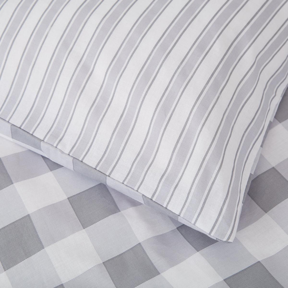 Bianca Check And Stripe 100% Cotton Grey Duvet Cover and Pillowcase Set Grey and White