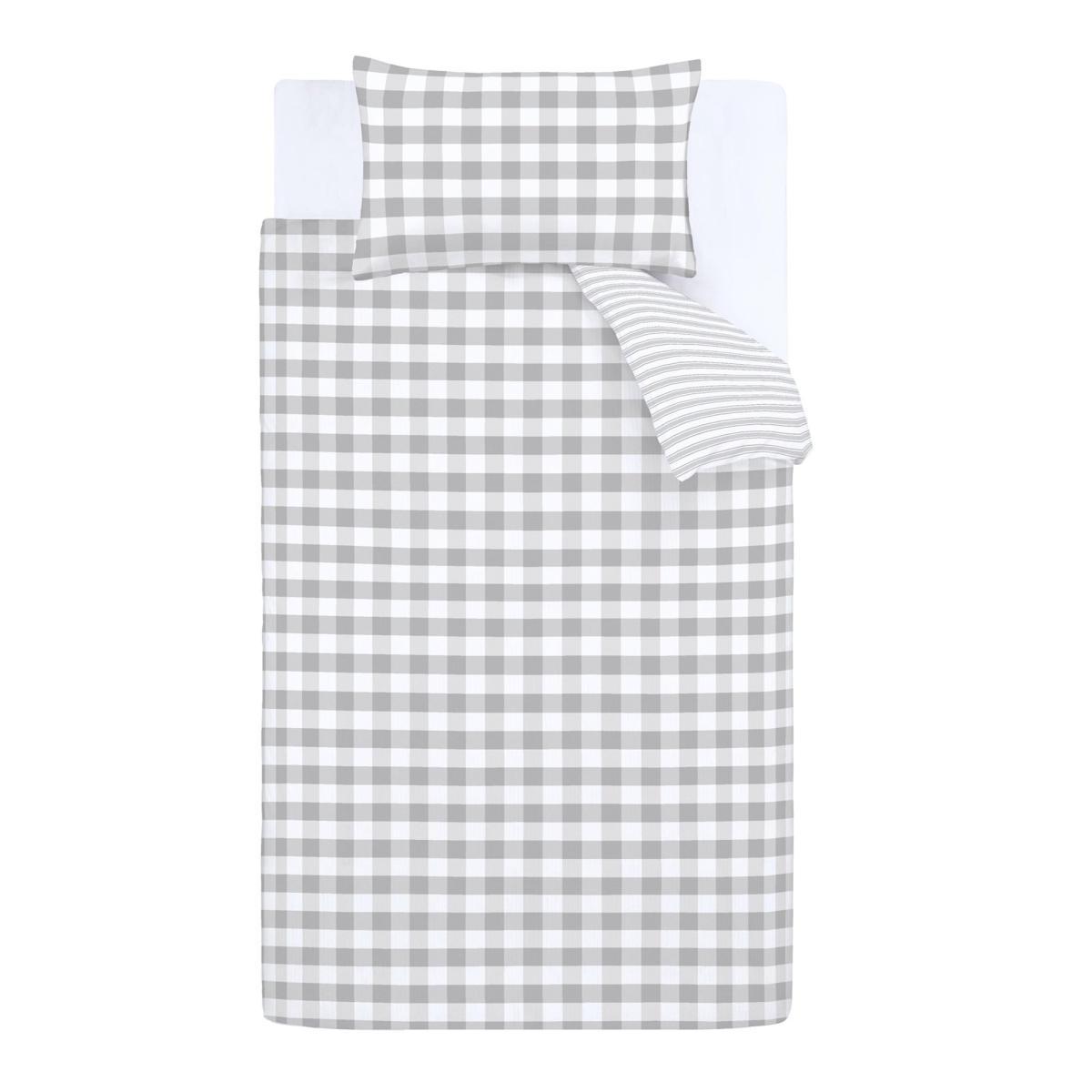 Create a classic look in a child's or spare bedrooms with a gingham check pattern that’s full of traditional charm. Classy in a grey and white colour scheme and finished with a delicate ticking stripe reverse in a complimentary grey and white palette, so it’s easy to create an alternative look with a quick duvet flip. Bianca evokes a sense of well-being and relaxation perfect for creating a calming retreat with timeless styling for the modern home. A classic check design, in a relaxing grey and pure white colour palette. This duvet cover and pillowcase set is crafted from pure 100% cotton and is machine washable.