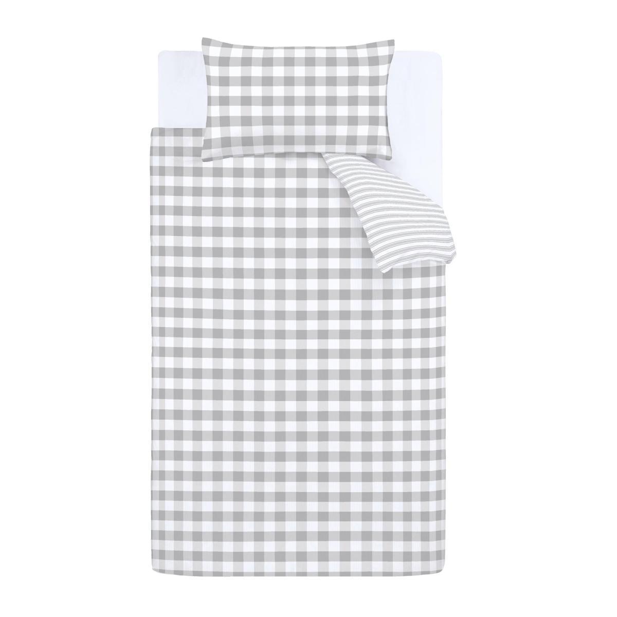 I love this bed sheet for its classic check stripe pattern and neutral grey and white colour palette, making it versatile for various nursery or child's room styles. It's perfect for adding a touch of timeless charm to a modern or traditional interior, especially pairing well with both pastel shades and bolder colours. Practical tips would include mixing it with solid-coloured duvet covers or cushions to create a balanced look, and it works beautifully with plain, textured, or patterned bedding for a layered, inviting feel. Its cotton fabric ensures comfort and durability, which is essential for active little ones, while the fitted style makes it easy to keep everything tidy.