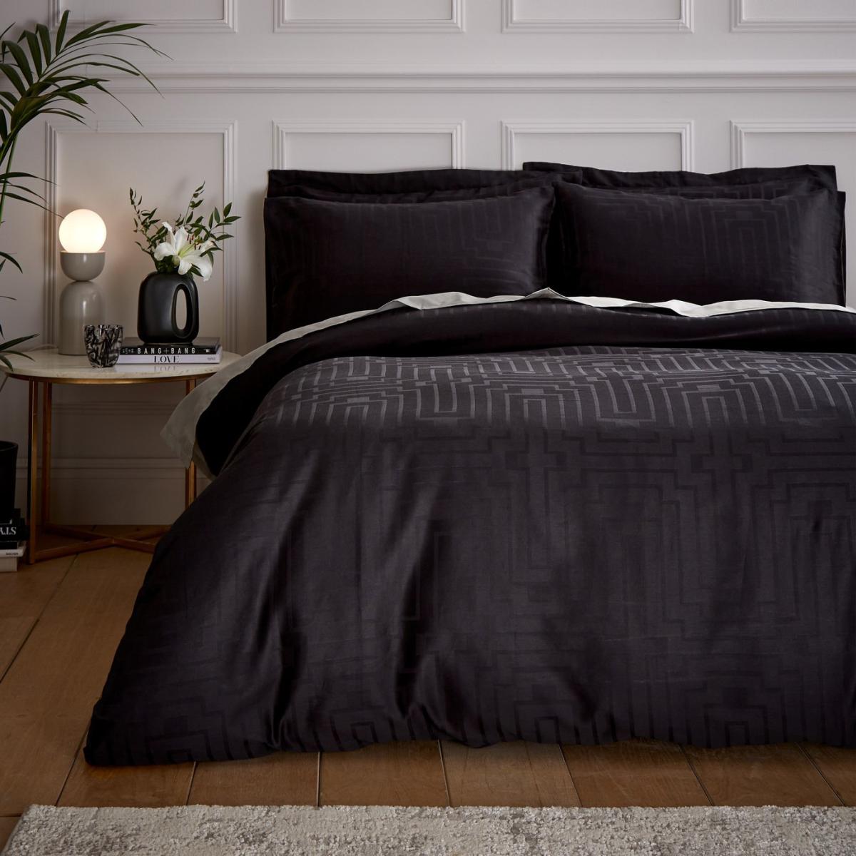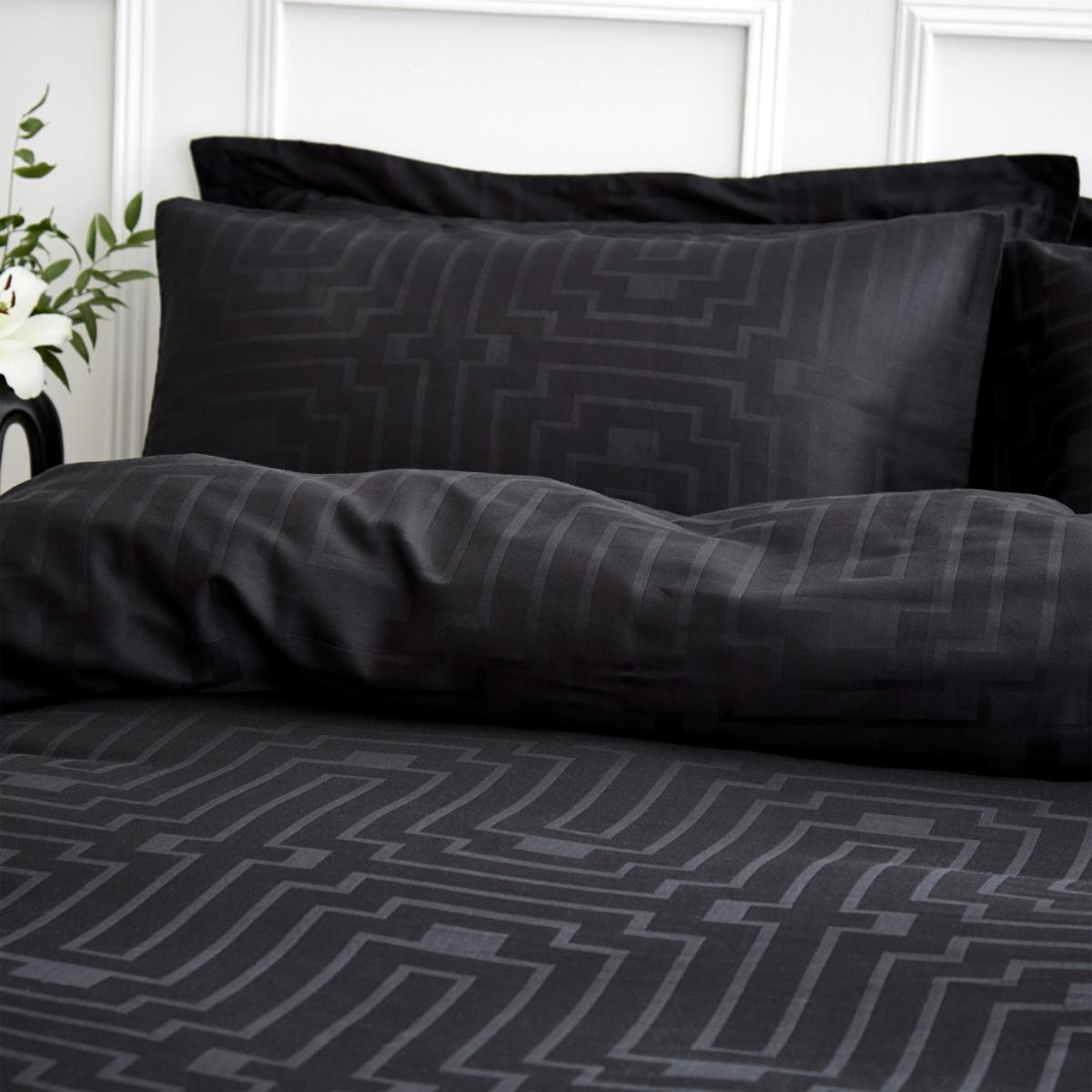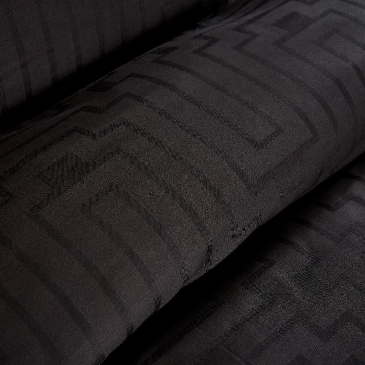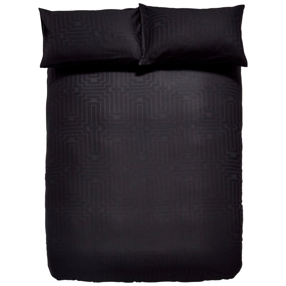 The epitome of luxury hotel styling, this soft pure cotton geometric jacquard bedlinen with silky satin finish is the perfect option for a relaxed and comfortable sleep. Pure 180 Thread Count Cotton, Soft to Touch, Button Fastening, Jacquard Detailing. This item carries the STANDARD 100 by OEKO-TEX logo, which means you can be certain that every component has been tested for harmful substances and is therefore harmless to human health. 100% cotton. 180 thread count. Set includes 1 duvet cover and 2 pillowcases. Bed size: king size. Length 220cm, Width 230cm. Jacquard panel. Reversible. Buttons for fastening. Standard pillowcase (s). Pillow case length 75cm, Width 50cm. Reversible pillowcase (s). Machine washable. Suitable for tumble drying.
