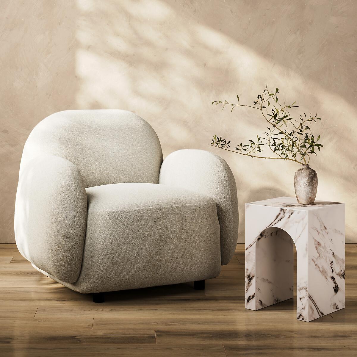 Bianca brings soft curves, sumptuous squish, and laid-back elegance to any space. Upholstered in textured weave fabric and finished with plump, sink-in cushions, this chair is all about relaxed sophistication. Its sculptural silhouette adds a design-forward edge, making Bianca as stylish as it is comfortable. Perfect for curling up or showing off. Product Details • Upholstered in Chenille Weave fabric • Foam fillings • Curved design • Generously stuffed cushions • Wooden legs • Delivered fully assembled • 1 year manufacturers warranty. Product Composition - Chenille Weave. Product Dimensions • Total Dimensions - 101 cm x 89 cm x 82 cm , Weight - 30 KG • Seat Height (from floor): 43 cm • Back Height (from floor): 82 cm • Seat width: 54.5 cm • Seat depth: 57 cm • Arm height (from floor): 63 cm • Clearance to floor: 5 cm Package Dimensions - 91 cm x 79 cm x 79 cm, Weight 34 kg. Please note: this product cannot be be delivered to all Offshore Islands Northern Ireland or Republic of Ireland. This product will be dispatched by one of our trusted suppliers. You’ll be contacted by their selected courier about your delivery.