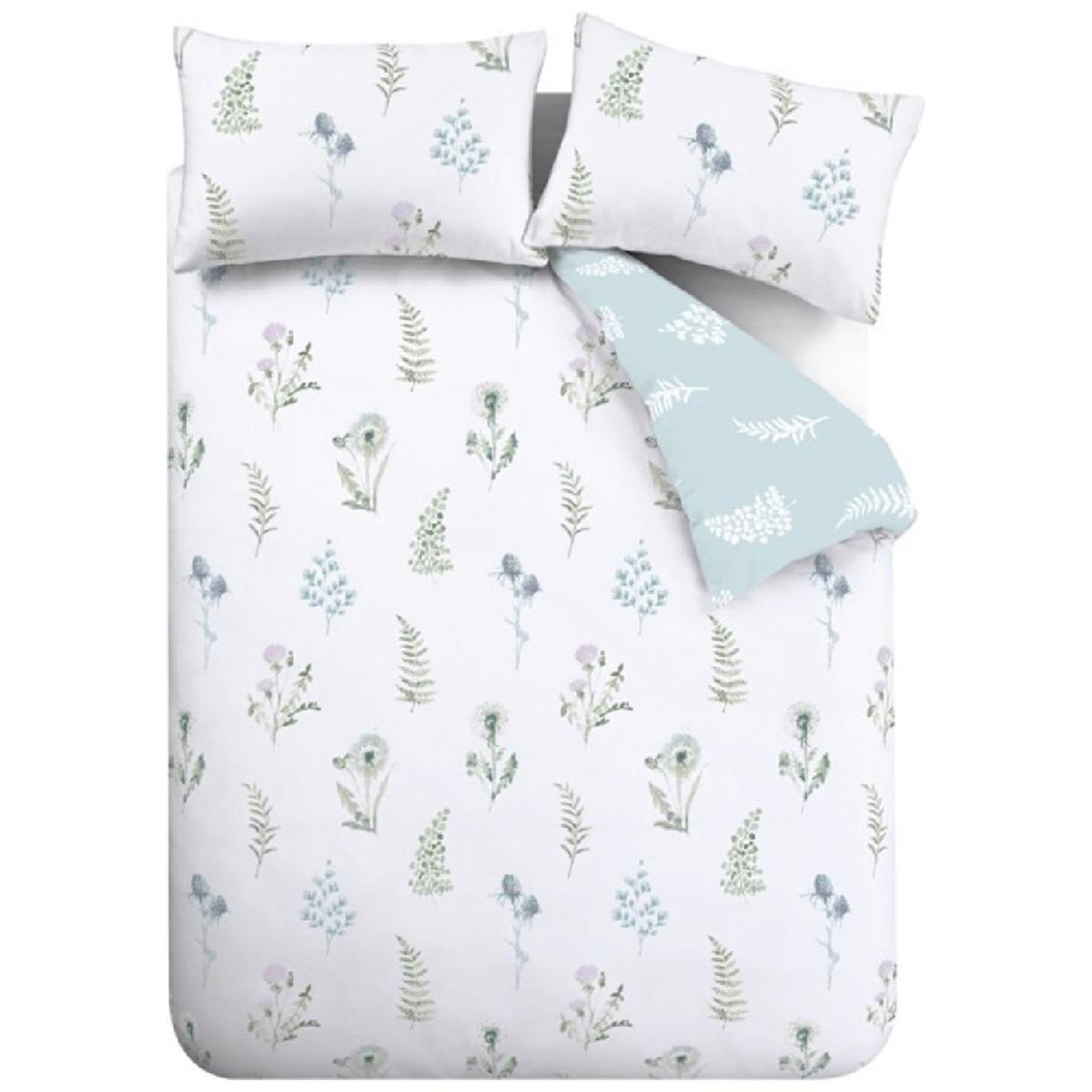 Bringing soft country style to your room, this fresh meadow and hedgerow leafy florals lay on a breathable Egyptian cotton offering a gentle soft to touch yet durable option for a timeless look to any Bedroom. Pure Egyptian Cotton, Fully Reversible, Button Fastening. This item carries the STANDARD 100 by OEKO-TEX logo, which means you can be certain that every component has been tested for harmful substances and is therefore harmless to human health. 100% egyptian cotton. Set includes 1 duvet cover and 2 pillowcases. Bed size: double. Length 200cm, Width 200cm. Reversible. Buttons for fastening. Standard pillowcase (s). Pillow case length 75cm, Width 50cm. Reversible pillowcase (s). Machine washable. Suitable for tumble drying.