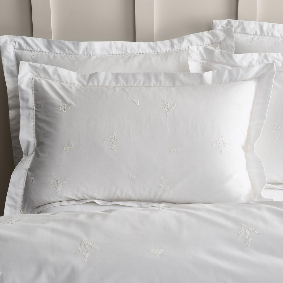 Exuding a sense of delicate refinement and understated elegance, the Bianca Lottie Embroidery Oxford Pillowcase features intricate embroidered floral motifs, meticulously stitched to create a timeless and serene bedroom setting. Experience the softness of premium 180 thread count percale cotton against your skin, as you immerse yourself in its tranquil charm, perfect for enhancing your sleep space with a touch of grace. 100% Cotton The natural fibres of cotton create a fabric that is soft and breathable 180 Thread Count: Percale weave creates a smooth, soft hand feel. Breathable: Allowing air to move and moisture to evaporate. Envelope Closure: Providing a secure and snug fit for your pillow. 50x75cm + 5cm border Care Instructions Wash Before Use. Machine Wash at 40 Degrees. Tumble Dry Safe. Please note All screens vary in colour reproduction and whilst every effort has been made to display the colour as accurately as possible it is for guidance only.