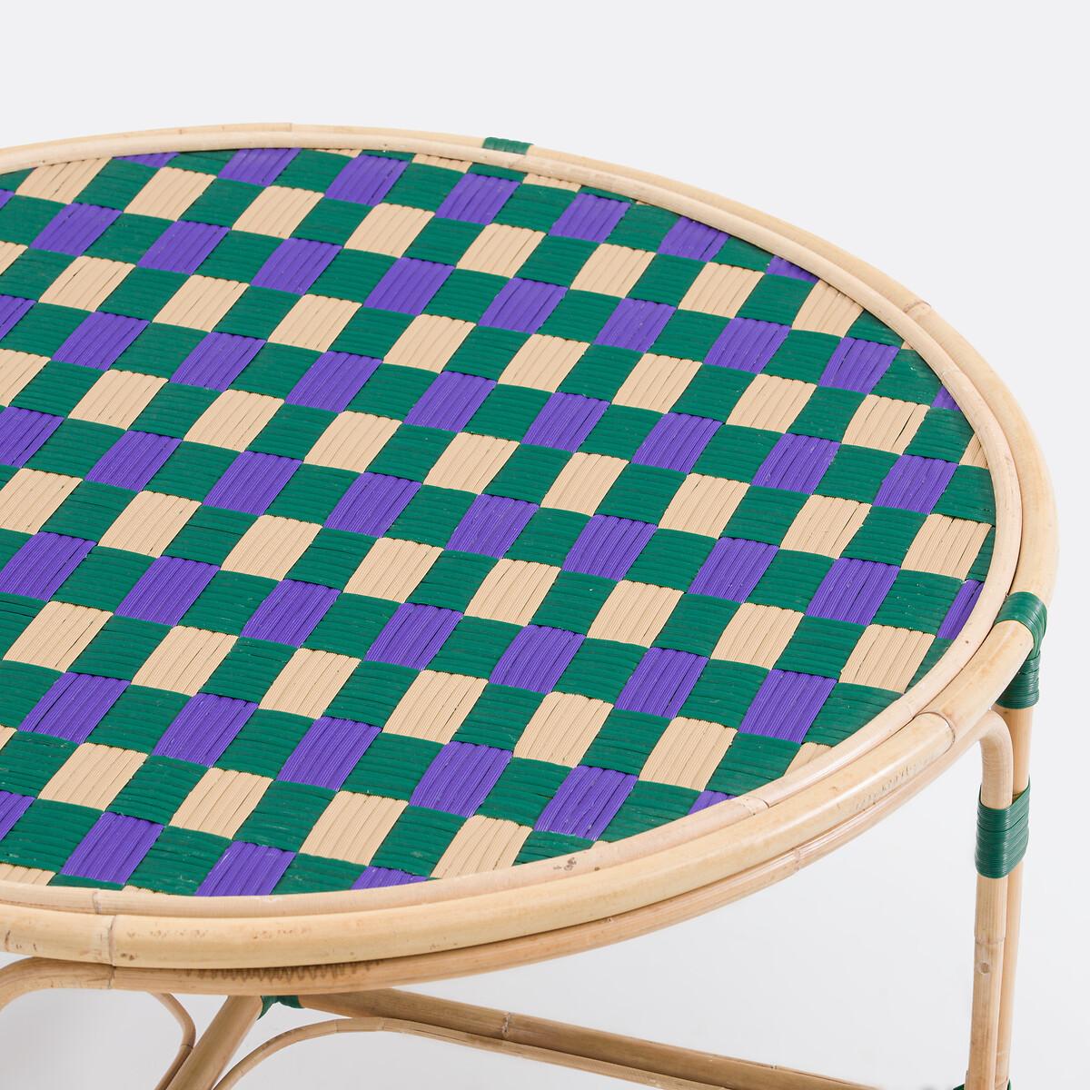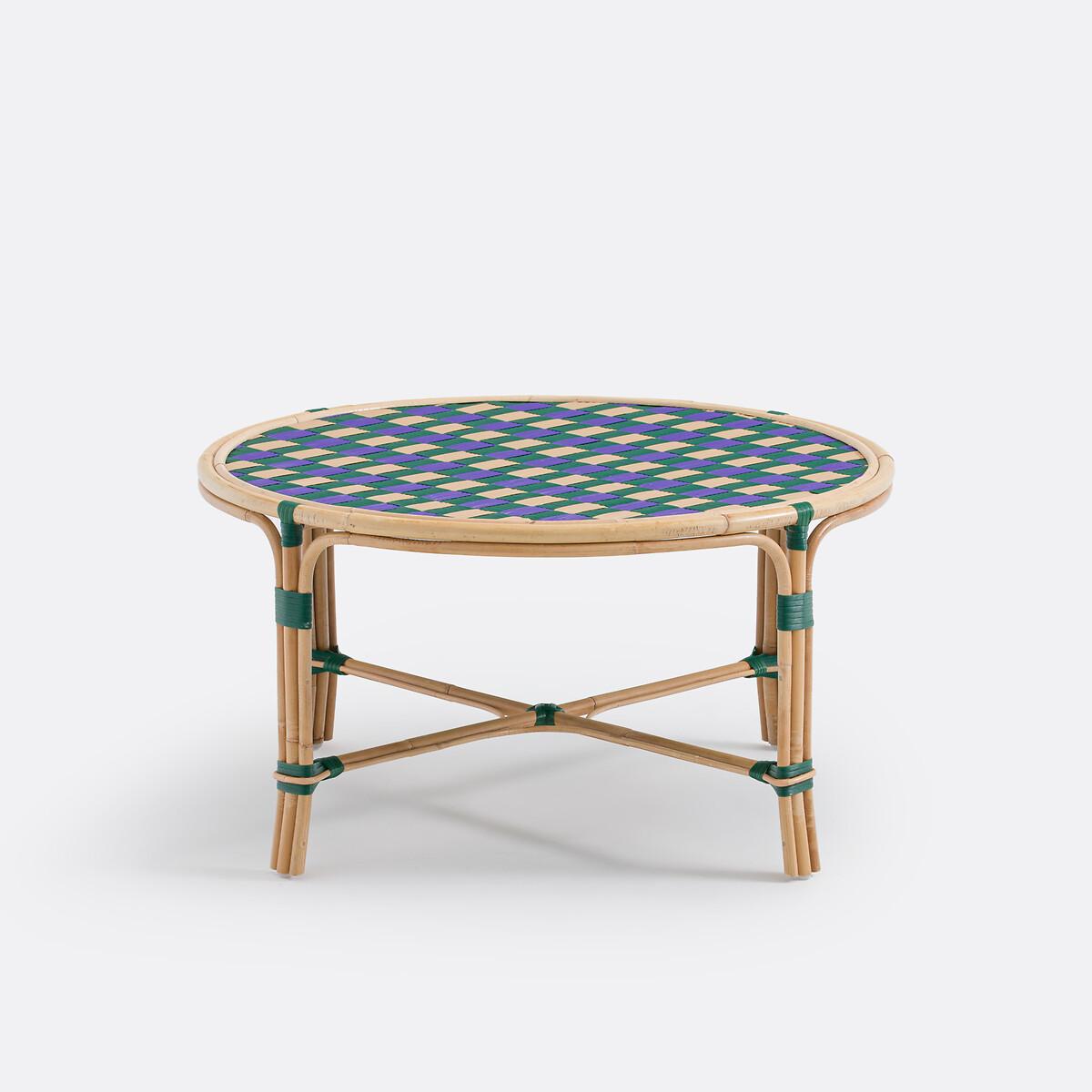 Ideal for relaxing outdoors, this rattan and woven resin coffee table combines aesthetics with timeless design. Designed for outdoor use, it will look great on your terrace or in your garden. Product Details • Low table • Rattan frame • Top in woven polyethylene resin • 4 feet with nylon glides. Quality • The woven resin is resistant to bad weather, temperature variations and UV rays.. Its lifespan will nevertheless depend on its exposure to UV rays, lunar rays and temperature variations. To maintain the braided resin, simply wash it with a soft sponge in soapy water. Dimensions • Diameter: 84cm • Height: 42cm • Weight: 8.5kg • Sold pre-assembled. Dimensions and weight of parcel • 1 parcel • L84 x H47 x D84cm, 13.95kg