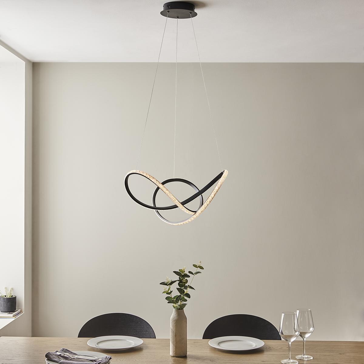 I love this piece for its contemporary yet versatile design. The black textured finish makes it a great statement for modern interiors, especially in spaces with a neutral or monochrome palette. It works particularly well in open-plan kitchens or dining areas where a sculptural fixture can act as a focal point. Practical styling tips include hanging it above a dining table or in a minimalist living space to add visual interest without overwhelming the room. For a balanced look, pair it with understated furniture and let the pendant take centre stage. Its unique shape also means it can complement both sleek, modern décors and more eclectic styles, making it a flexible lighting choice.