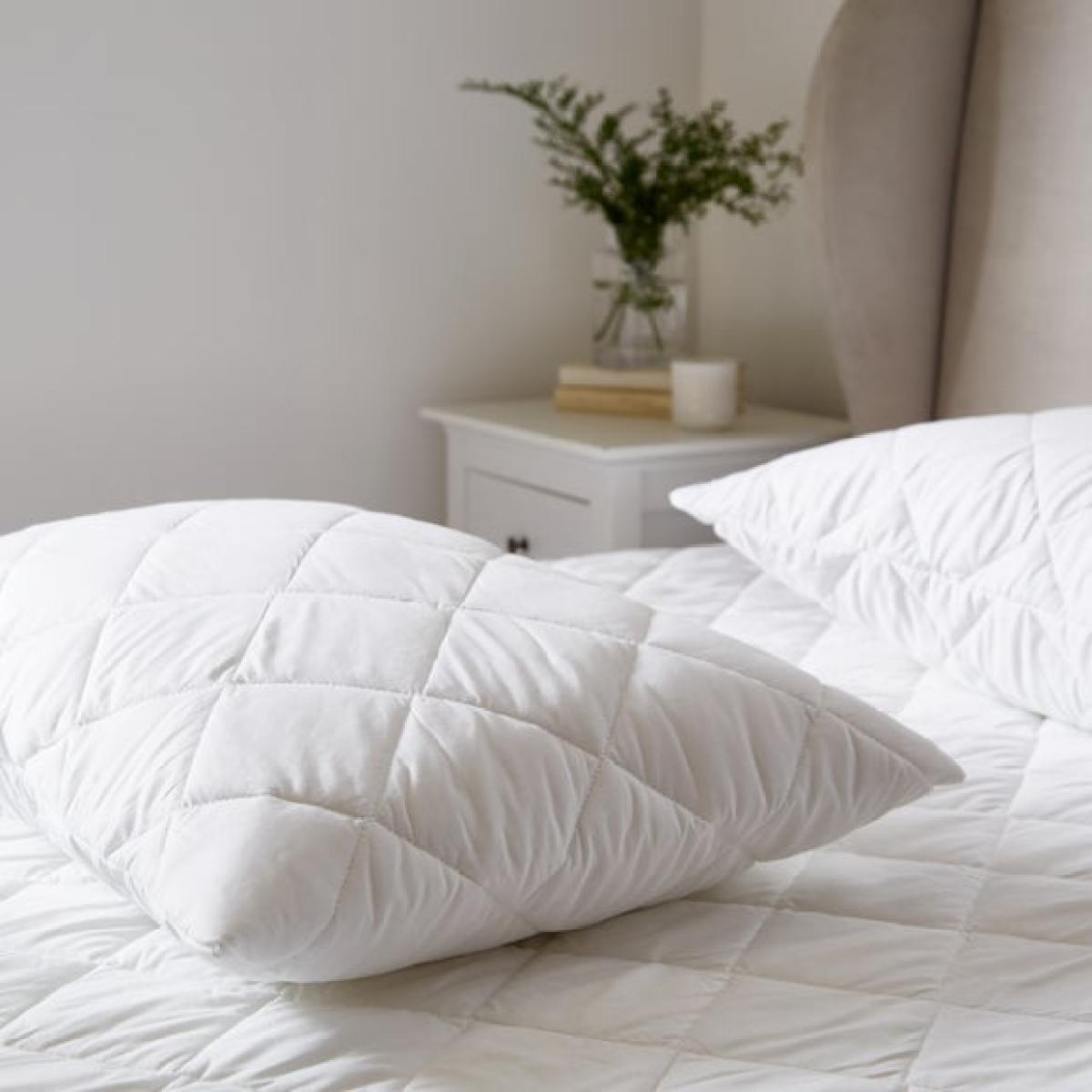 * Temperature regulating * Envelope closure * Quilted Give your pillow a luxurious life with the Bianca Temperature Control Pillow Protector, designed to bring calm and comfort to your sleep sanctuary. Made from a soft, quilted blend of cotton and TENCEL Lyocell, it offers an extra layer of plushness while naturally regulating body temperature year round. Whether it's a warm summer night or a chilly winter evening, it helps keep you comfortably balanced. The envelope closure create a snug, secure fit, while the breathable fabric feels beautifully gentle against your skin. Beautifully crafted and timeless in style, it's the perfect match for the co-ordinating bedlinen. A restful night's sleep starts right here.