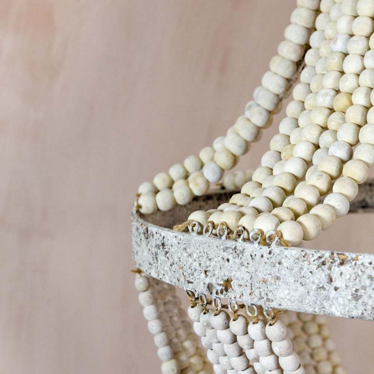 Combining rustic beach house charm and vintage style glamour, our Bianca Wooden Bead Chandelier is an envious lighting statement. From your sitting room to your hallway, use the ceiling rose provided to hang the light and illuminate your interior with grace. Made from necklaces of maple beads and patinated iron, this artisan take on traditional crystal chandeliers exudes elegance off or on.