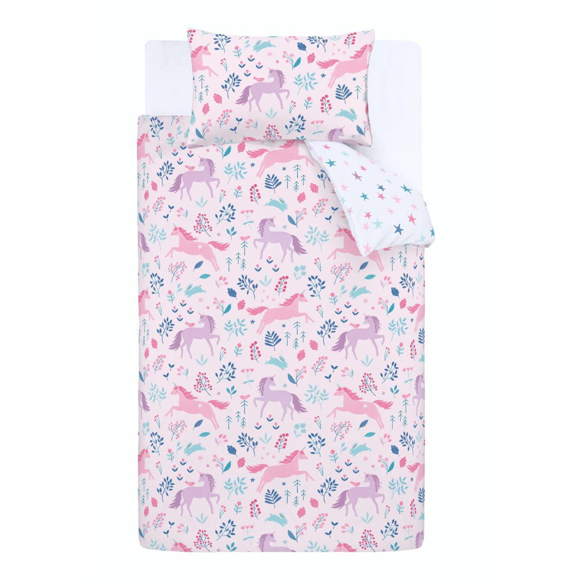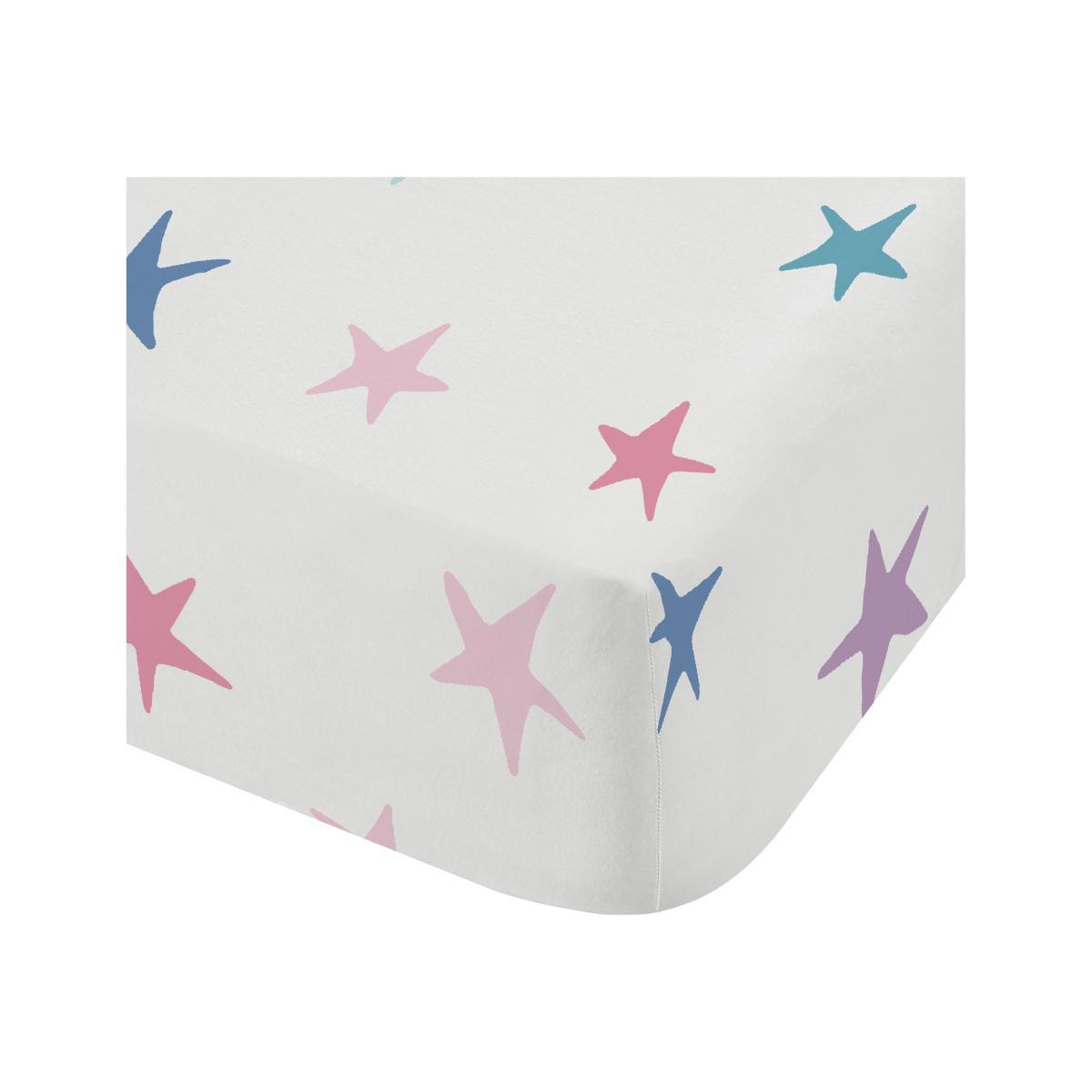 Bianca Woodland Unicorn And Stars 100% Cotton Fitted Sheet Pink, White and Blue