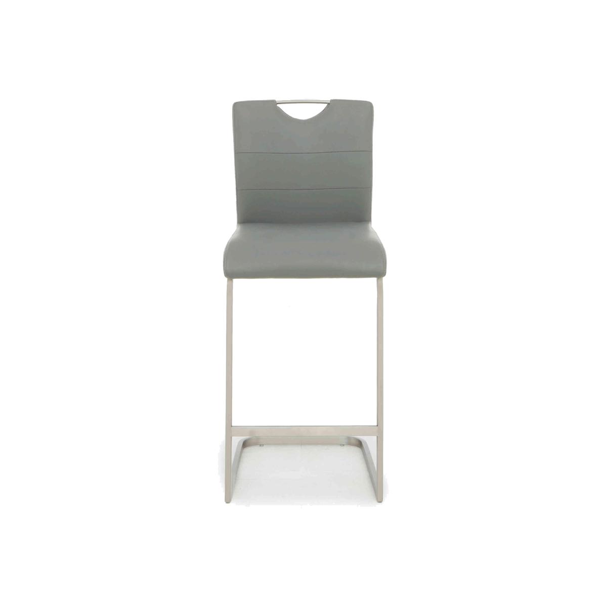 Gorgeously glossy and bright, Bianco dining and occasional furniture will make your home feel light and spacious. The ultra-modern style, sculptural pedestal bases and sleek brushed detailing make a bold design statement. This extensive dining and occasional range includes space-saving pedestal dining tables with smooth pop-up extension leaves, the larger dining table seats up to ten. Chic faux leather dining chairs add a pop of colour in six fashionable shades. Choose all one colour, or go for a mix. The Bianco range is exclusive to Furniture Village, at a great value price. The Bianco bar stool is comfortable, stylish and beautifully upholstered in faux leather. The cantilever base is very on-trend. Why you'll love it Compact dining space? Here’s the bar stool for you. Ultra-modern style meets dining comfort. Upholstered by hand in faux leather in a choice of colours. Supportive high back with and integrated handle. Sturdy yet elegant stainless steel cantilever base with footrest. Also available in a set of 4 bar stools. This bar stool is part of the Bianco furniture range. What you need to know Metal frame. Foam cushioning.