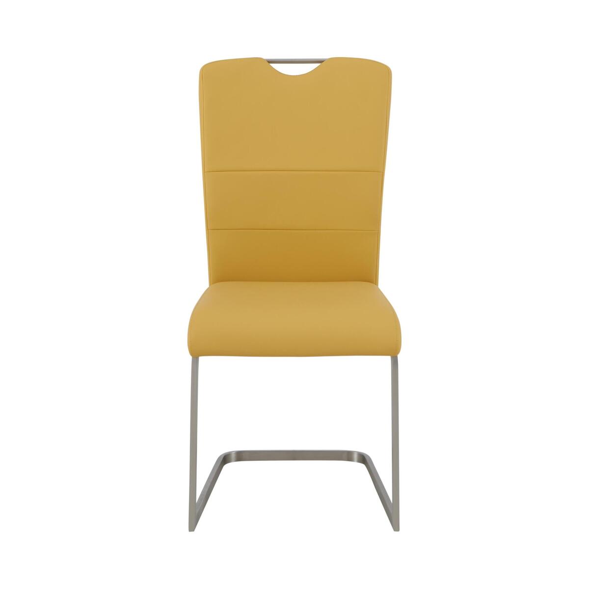 Gorgeously glossy and bright, Bianco dining and occasional furniture will make your home feel light and spacious. The ultra-modern style, sculptural pedestal bases and sleek brushed detailing make a bold design statement. This extensive dining and occasional range includes space-saving pedestal dining tables with smooth pop-up extension leaves, the larger dining table seats up to ten. Chic faux leather dining chairs add a pop of colour in six fashionable shades. Choose all one colour, or go for a mix. The Bianco range is exclusive to Furniture Village, at a great value price. Add a pop of colour to your dining. The Bianco dining chairs complement the glossy white Bianco dining tables. In a choice of six on-trend colours, in soft faux leather. Why you’ll love it. Chic, comfy and colourful. Modern style for the contemporary home. Cushioned with a supportive, angled back. Soft, faux leather upholstery in a choice of six colours. Cantilever style legs give ‘bounce’. Stitching creates horizontal back panels. What you need to know. Cantilevered, tubular brushed stainless-steel legs. Sturdy construction. Faux leather upholstery. Integral metal handle makes the chair easy to move. Part of the extensive Bianco range of dining and occasional furniture.