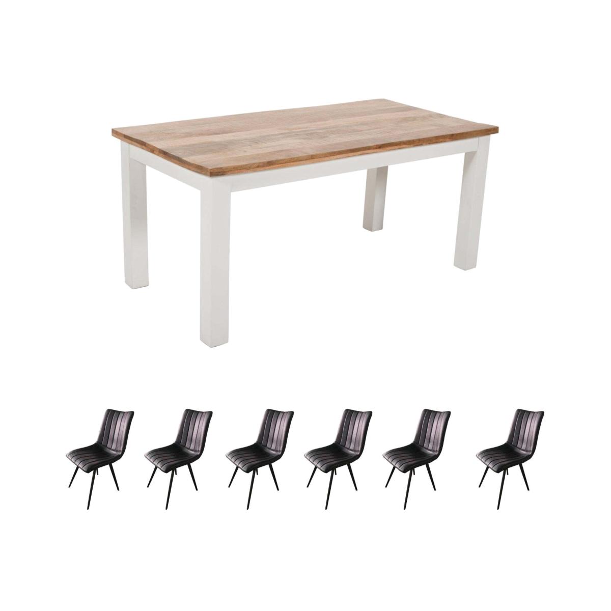 Bianco Solid Mango Wood White Dining Table Set 170Cm With 6 Chairs - Light Wood