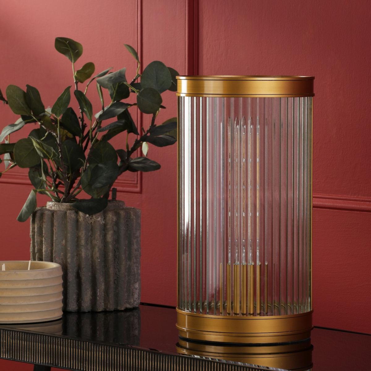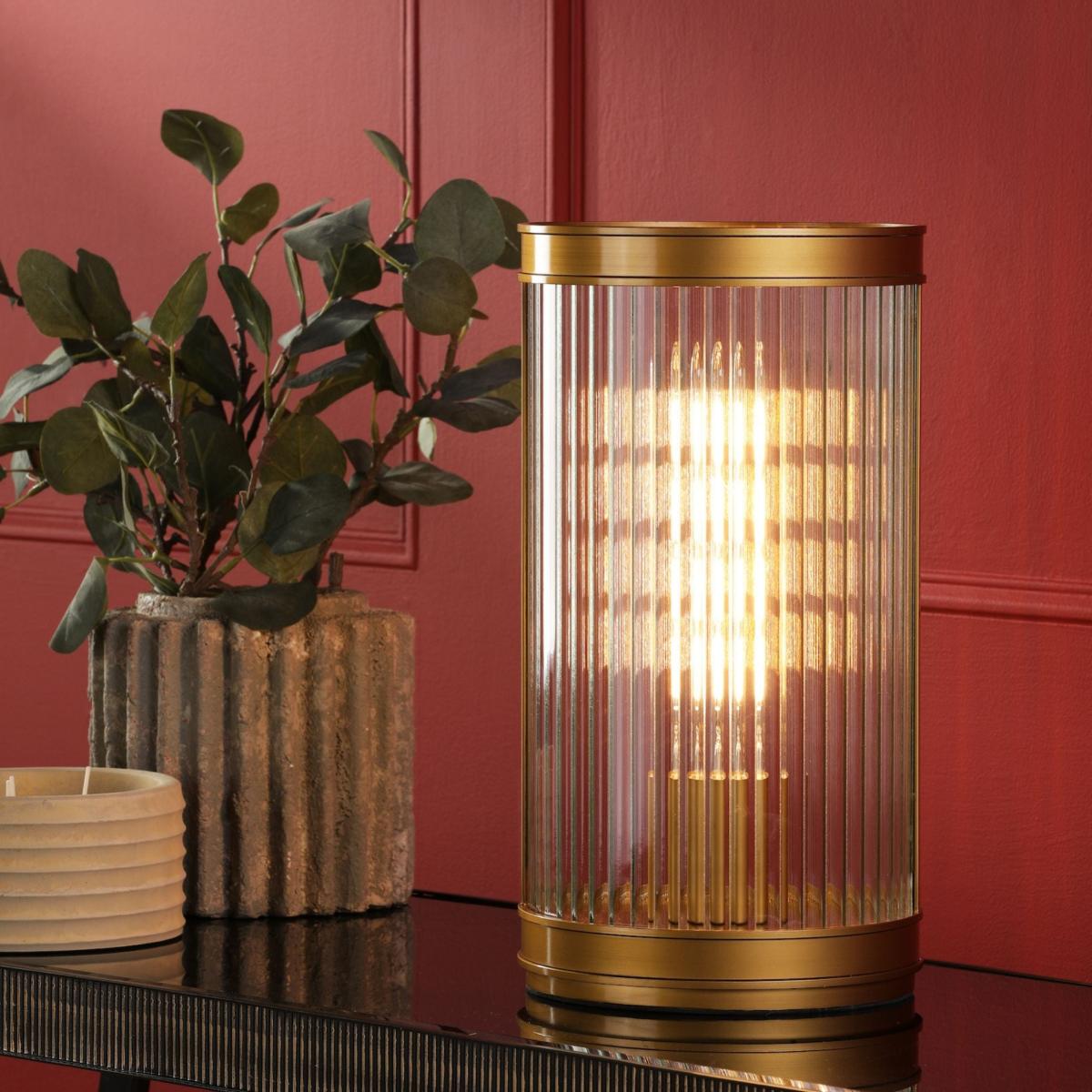 Bianka 1-light cylindrical table lamp, made from ribbed glass with bronze accents. The Bianka table lamp is a beautifully crafted piece that blends modern elegance with classic design. Made from ribbed glass, the lamp creates a soft, ambient glow while the painted bronze accents add warmth and refinement, enhancing the lamp's timeless appeal. Perfect for accent lighting on side tables, bedside tables or desks, the Bianka table lamp offers both function and style. Its cylindrical shape and luxurious materials make it a versatile addition to various interior styles, from contemporary to transitional, elevating any room with its understated yet eye-catching design. Bianka 1-light cylindrical table lamp, made from ribbed glass with bronze accents. The Bianka table lamp is a beautifully crafted piece that blends modern elegance with classic design. Made from ribbed glass, the lamp creates a soft, ambient glow while the painted bronze accents add warmth and refinement, enhancing the lamp's timeless appeal. Perfect for accent lighting on side tables, bedside tables or desks, the Bianka table lamp offers both function and style. Its cylindrical shape and luxurious materials make it a versatile addition to various interior styles, from contemporary to transitional, elevating any room with its understated yet eye-catching design.