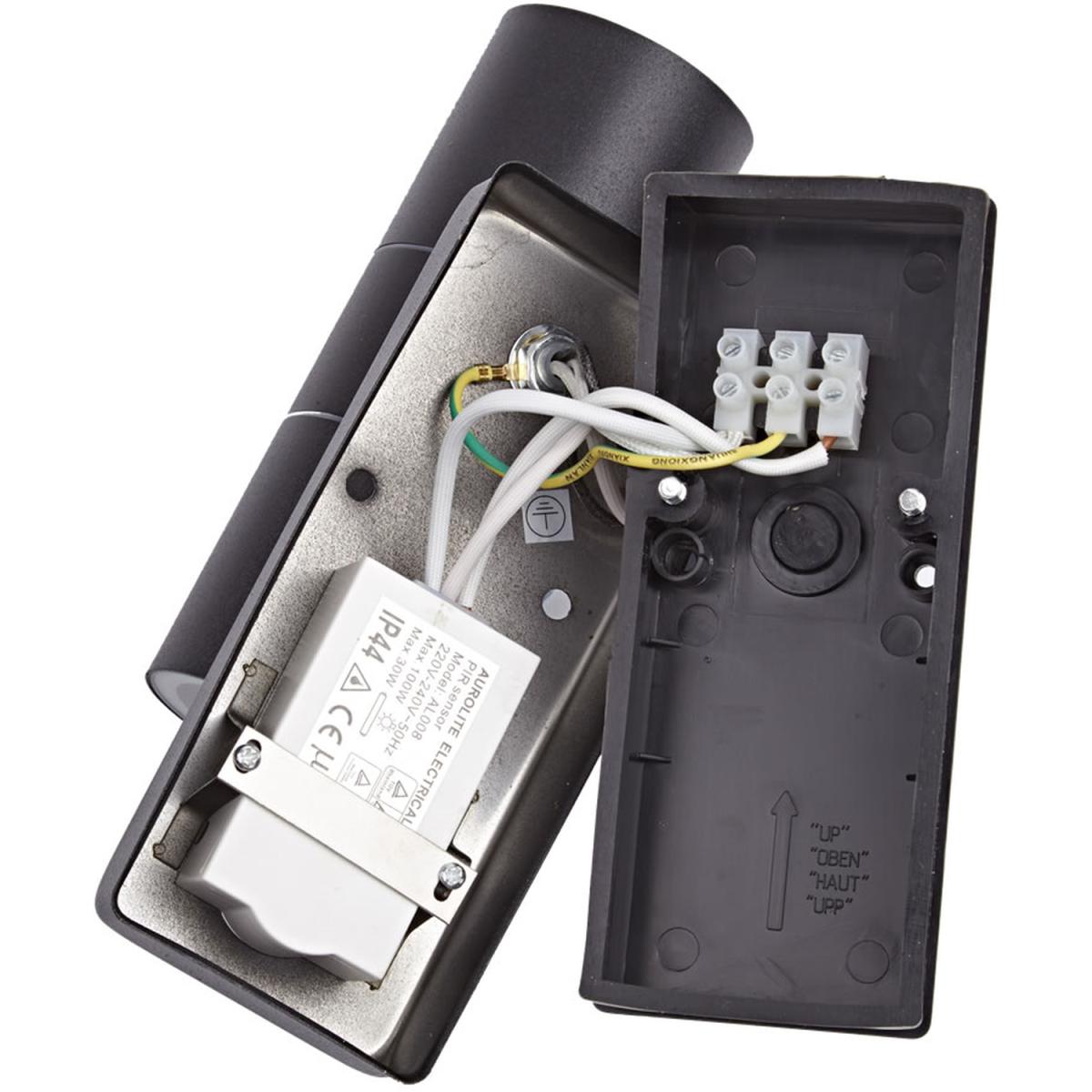 Provide your home or garden with ambient lighting and an added layer of security with this Biard Le Mans Black Wall Light with motion sensor. Providing an attractive up and down lighting as well as security through its PIR motion sensor, this wall light is easy to mount and has great durability afforded by its waterproof design. Requires 2 x GU10 bulbs. Comes with a 3 year warranty.