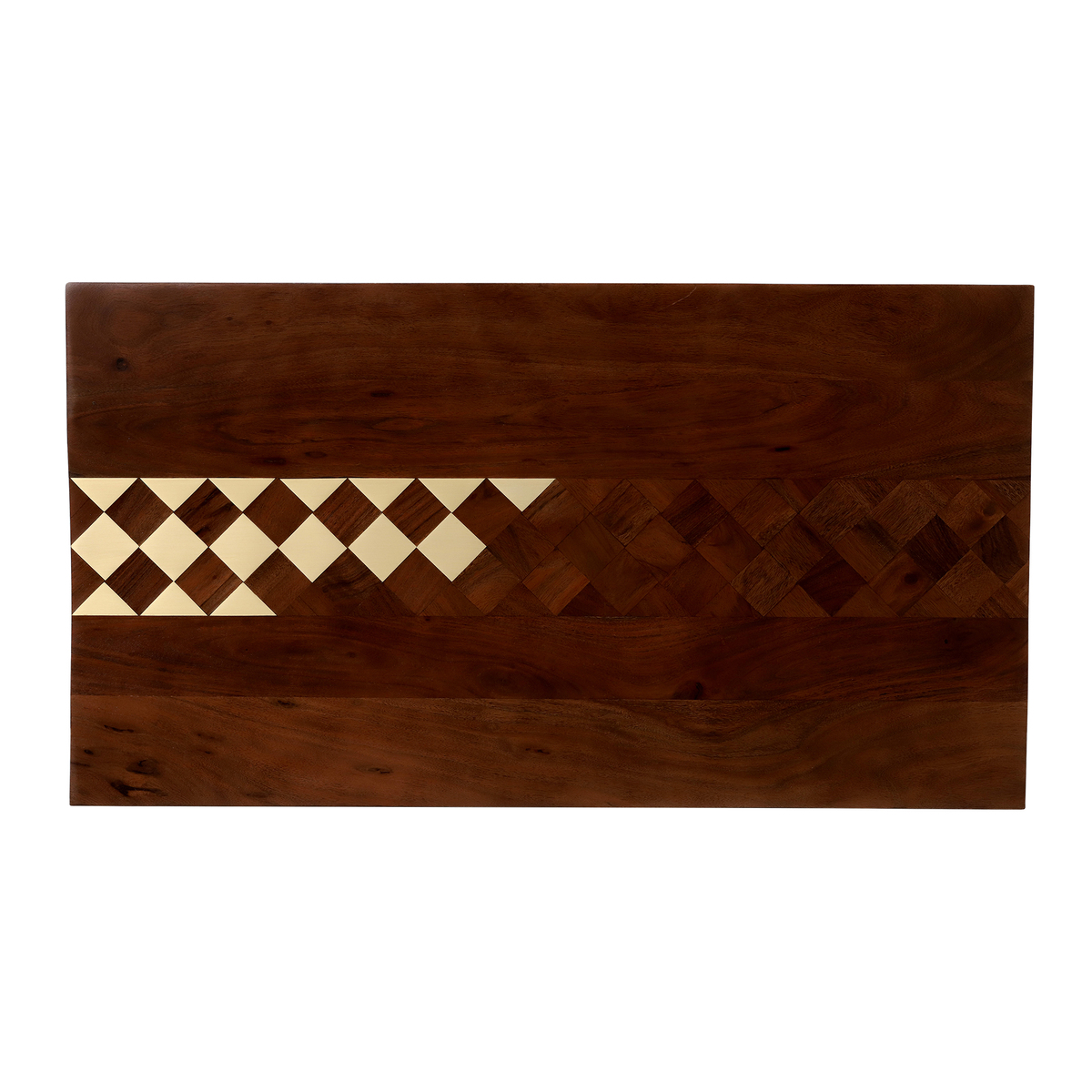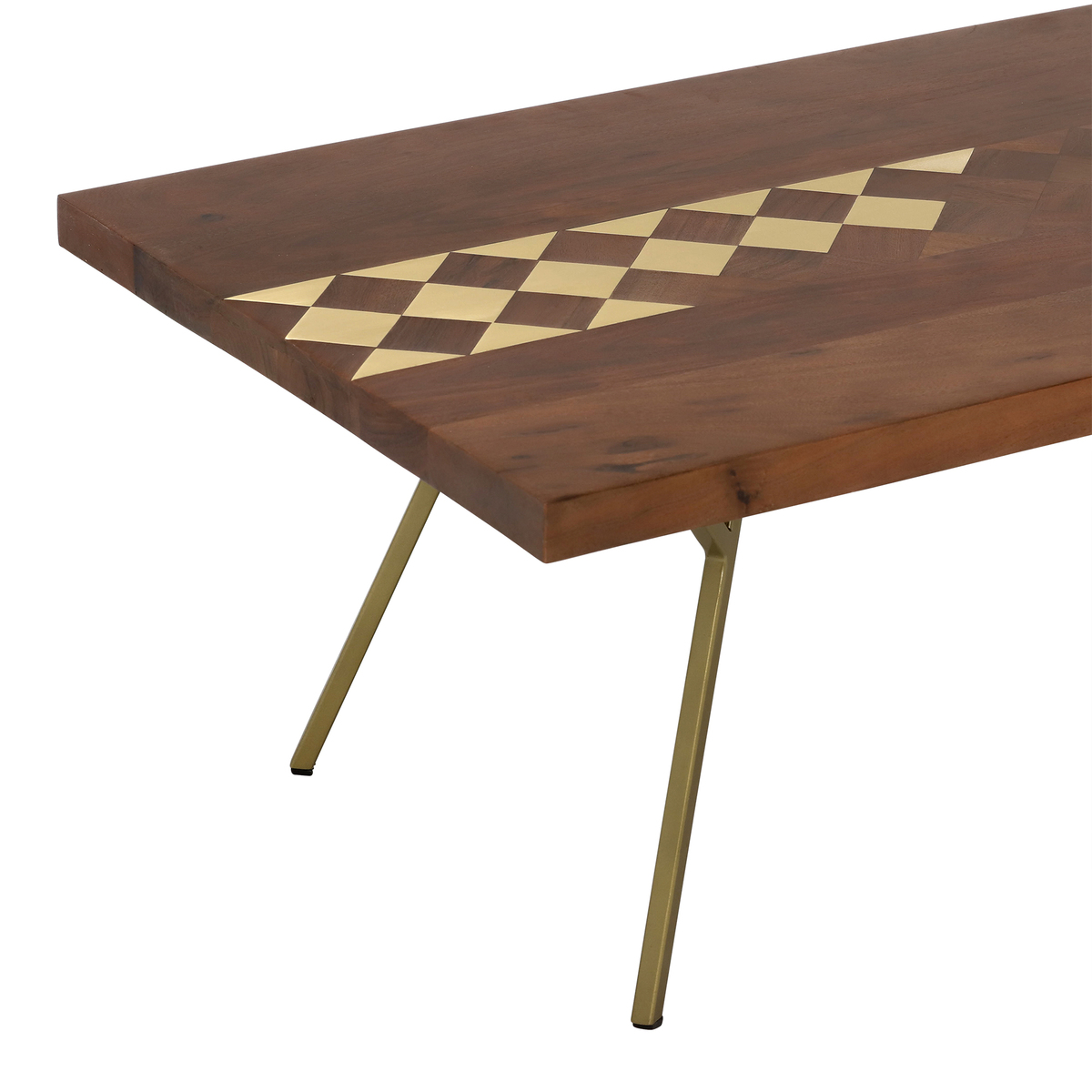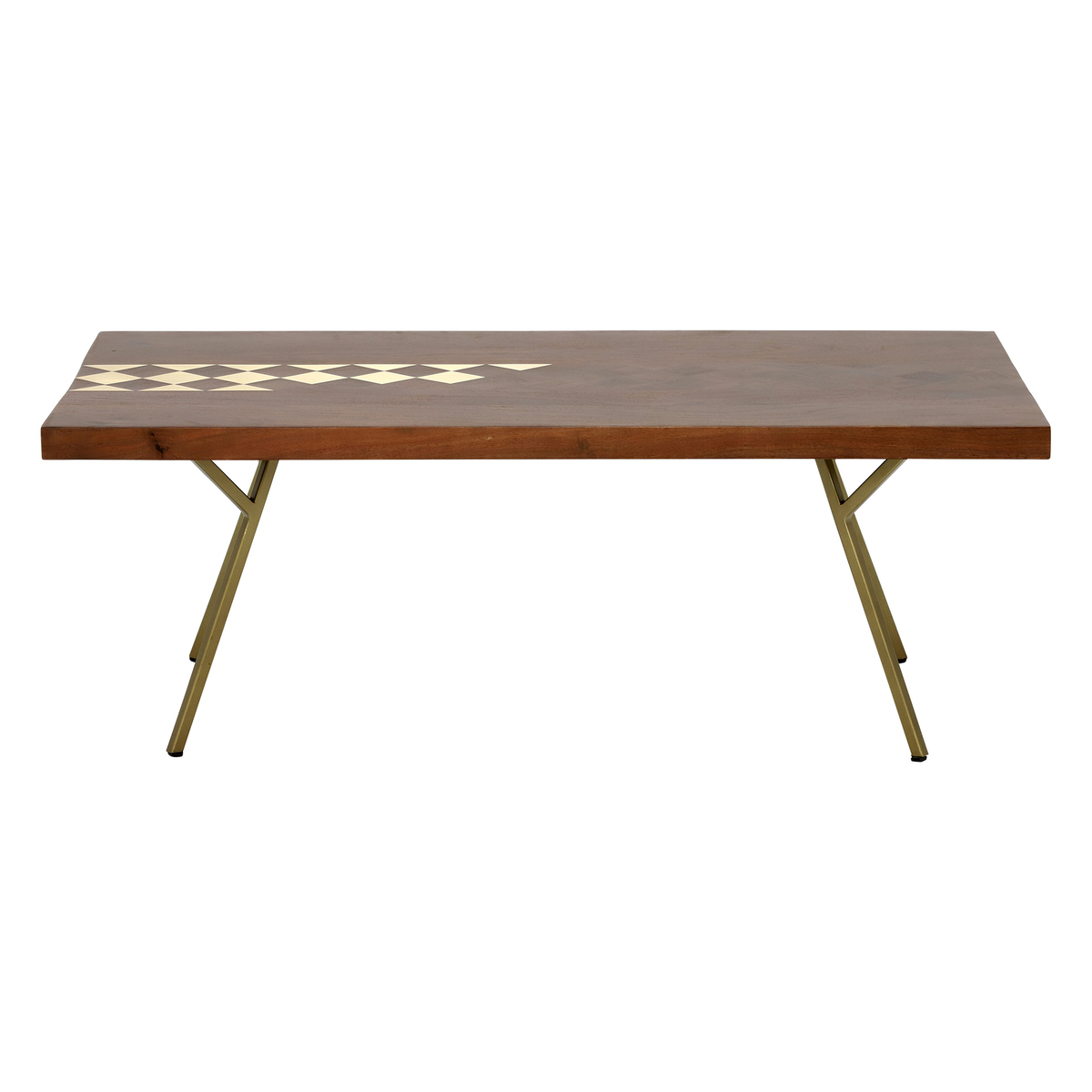 Complete your living room in retro glam style with the Bibi coffee table. Beautifully constructed from solid wood with geometric brass inserts to detail, it is the perfect combination of classic carpentry and mid-century elegance. Slim metal legs keep the look light and open to maximise precious space, whilst their brass finish brings the whole look together and enhances the warmth of the Acacia wood’s natural grain. Sharp yet smooth, the Bibi is a stunning focal point for any lounge. Make the most of its durable top with bold accessories and a drink or two.