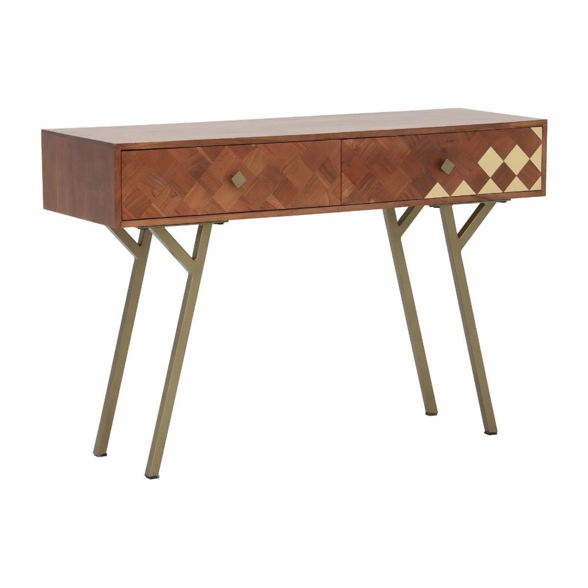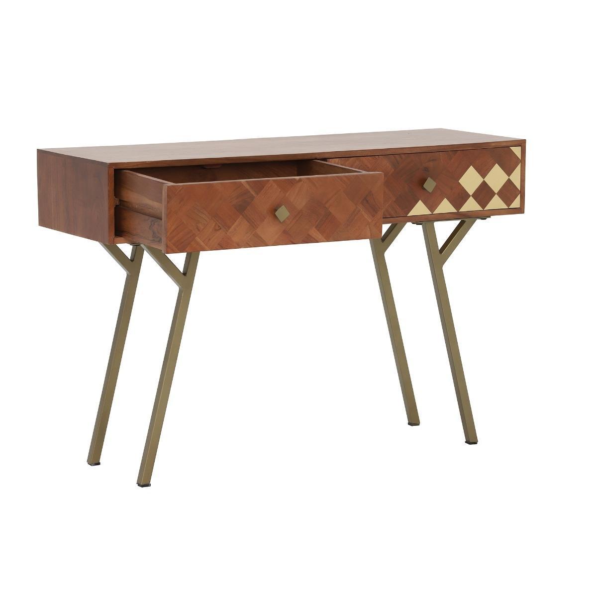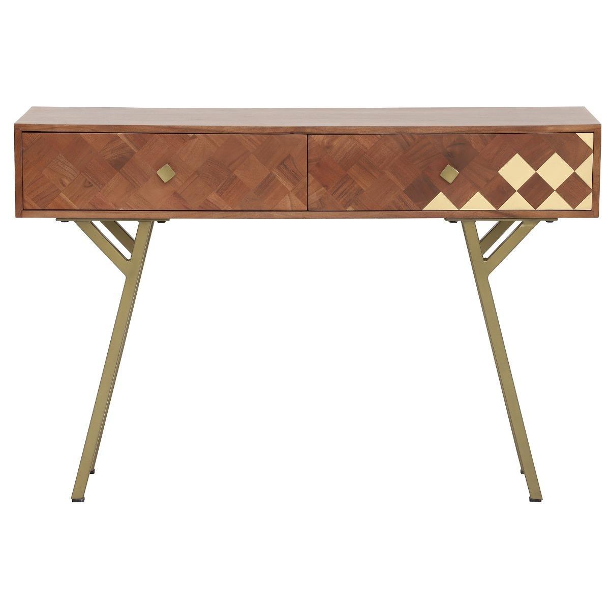 Design. An attractive piece with plenty of character. Brass inlays are a lovely detail which add to the mid-century style of the Bibi Console Table, Splayed legs provide a supportive finish to this practical piece and coordinate perfectly with the geometric design to the front. Each drawer is fitted onto runners for easy opening and closing and is fitted with a square brass handle to the centre.