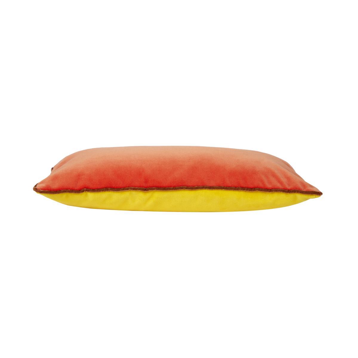 I love this Bibi court cushion for adding a pop of colour and a touch of luxury to both contemporary and eclectic interiors. Its vibrant mix of yellow, red, and orange makes it versatile enough to energise a neutral sofa or bed, especially in relaxed or boho schemes. For styling tips, consider pairing it with other textured or patterned cushions to create a layered look, or use it as a statement piece on a sleek, minimalist sofa to introduce colour without overwhelming the space. Its elongated shape makes it ideal for propping against armrests or layering behind smaller cushions, offering both comfort and visual interest.