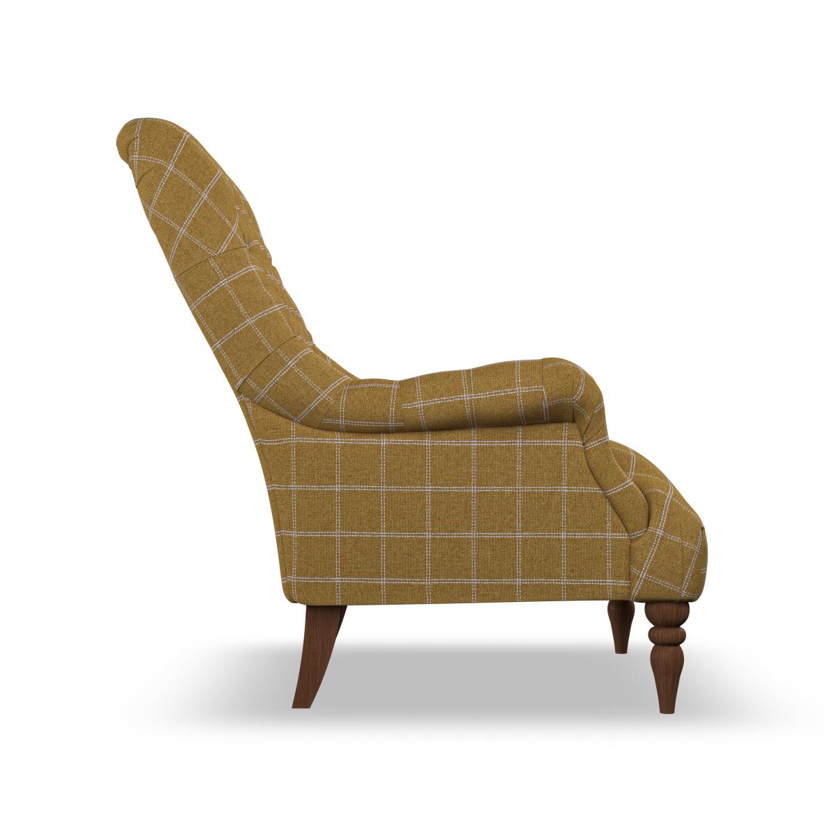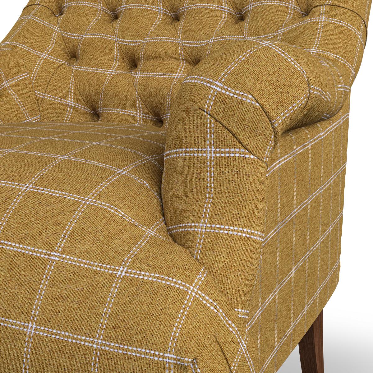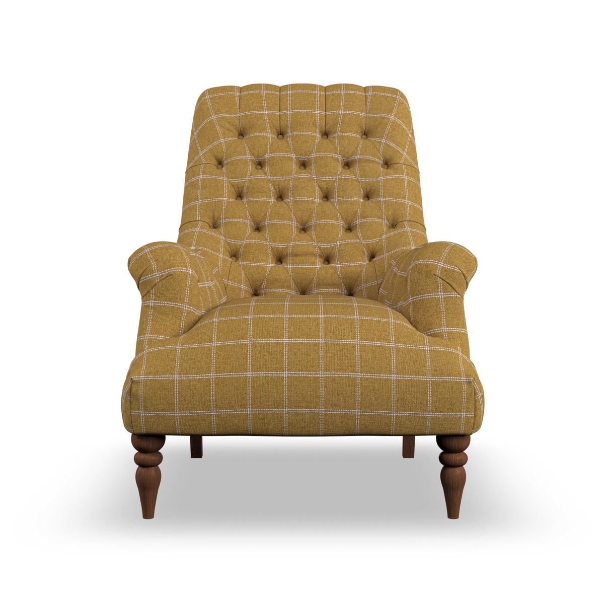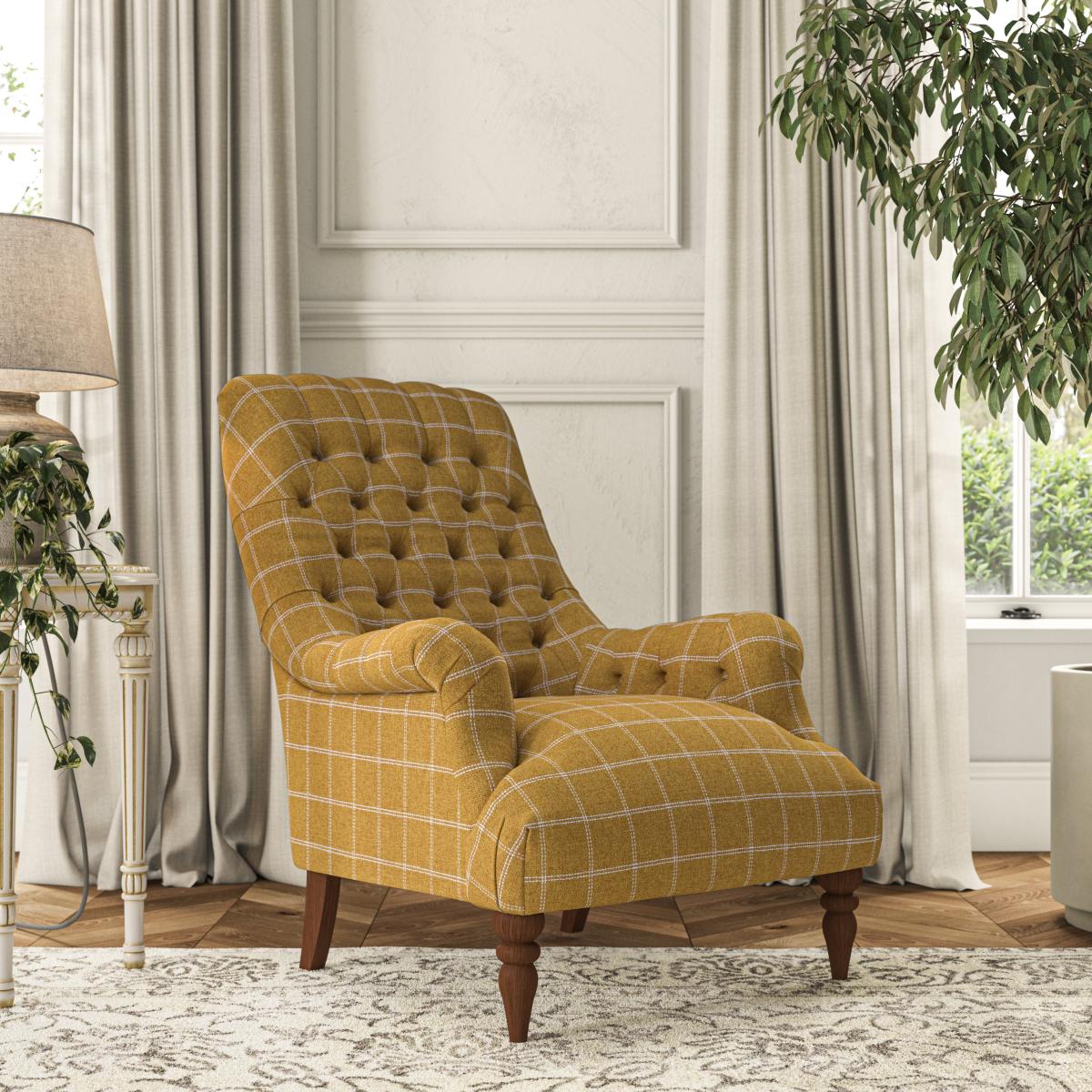 I’m fond of the Bibury’s clean, button-back silhouette and warm mustard check - it feels at home in both a country cottage and a contemporary living room. The turned wooden legs add a nod to tradition without looking fussy. To style, drape a neutral-tone knit throw over one arm and perch a contrasting velvet cushion (deep teal or ochre work well) on the seat. Position beside a simple oak side table with a brass reading lamp and a trailing houseplant for a welcoming reading nook.
