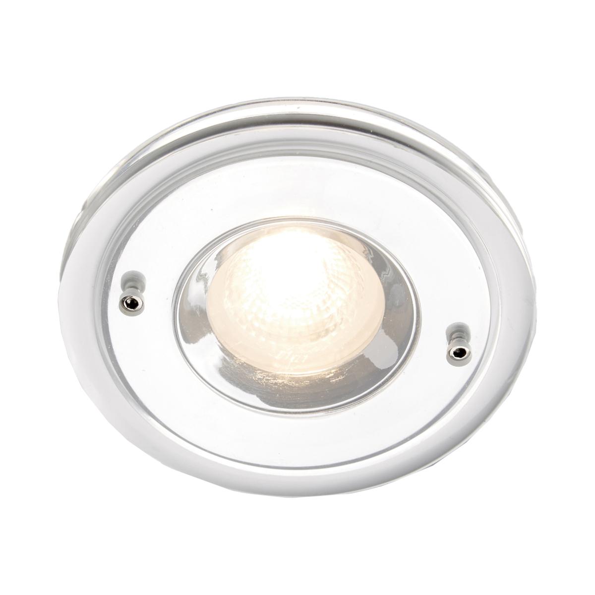 With a compact and unobtrusive design the Bibury Bathroom Downlight seamlessly integrates into any space making it ideal for areas where ceiling height or available surface area is limited. With premium materials such as aluminum and PMMA, this downlight exudes durability and sophistication. Featuring a chrome finish with a clear plated gloss, it adds an element of elegance to your bathroom decor. The clear shade complements the overall design while providing effective illumination. Its distinctive ring shape adds a touch of contemporary flair to any setting.