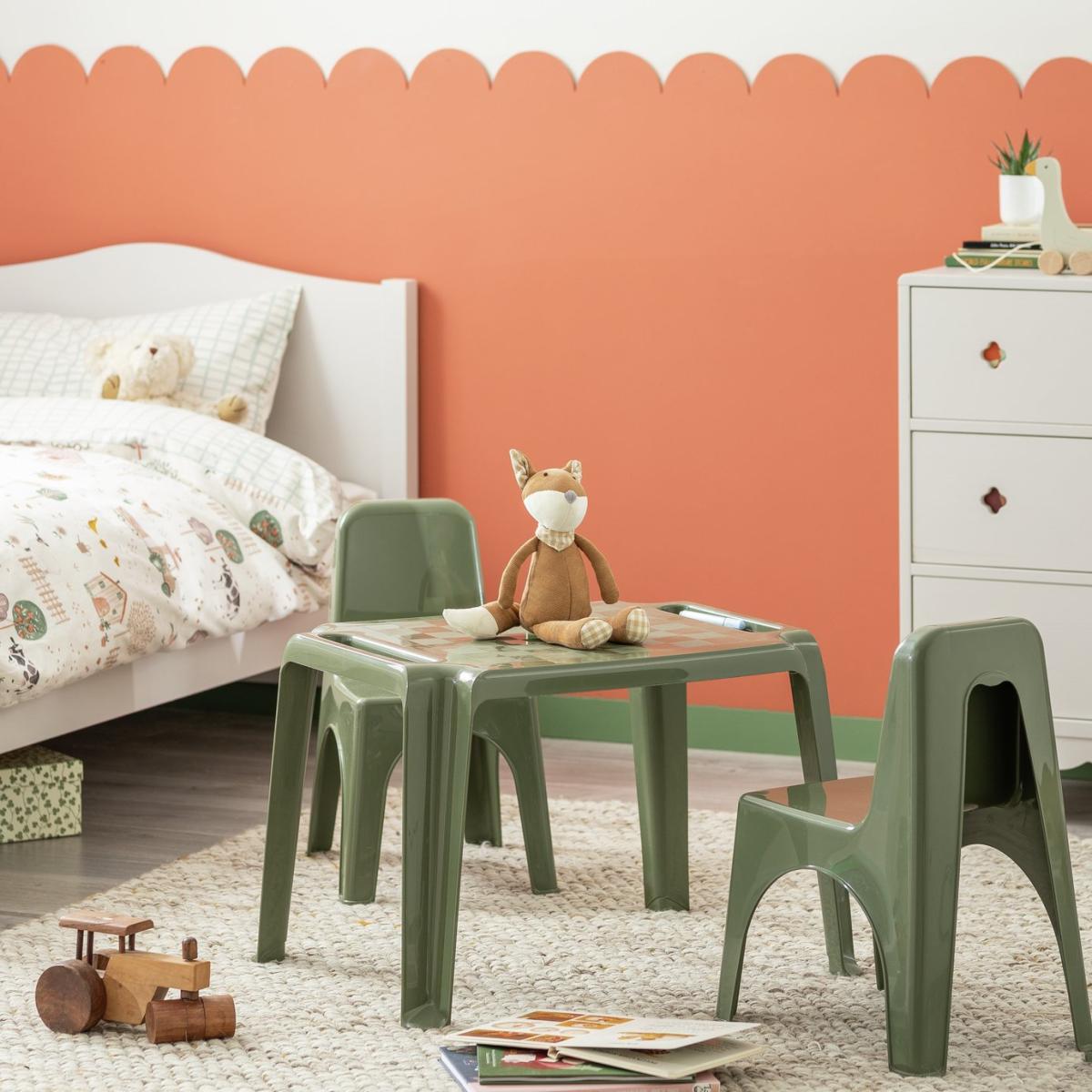 This cheerful table will brighten up your kid's room no end. Made from hardwearing plastic, it's a smart choice whether your little one's creating a messy masterpiece or hosting a terrific tea party. The drafts pattern is great for a quick game too. Stash away paintbrushes or crayons in the handy holders on either side and wipe clean when you're done. From playtime to snack time, this'll be the perfect play station. Polypropylene. Dimensions: Size of table: H43, W66, D51cm. Weight 2.6kg. Package Dimensions: Package 1 dimensions: H44, W67, D52cm. Package 1 weight: 2.6kg. General information: Manufacturer's 1 year guarantee.