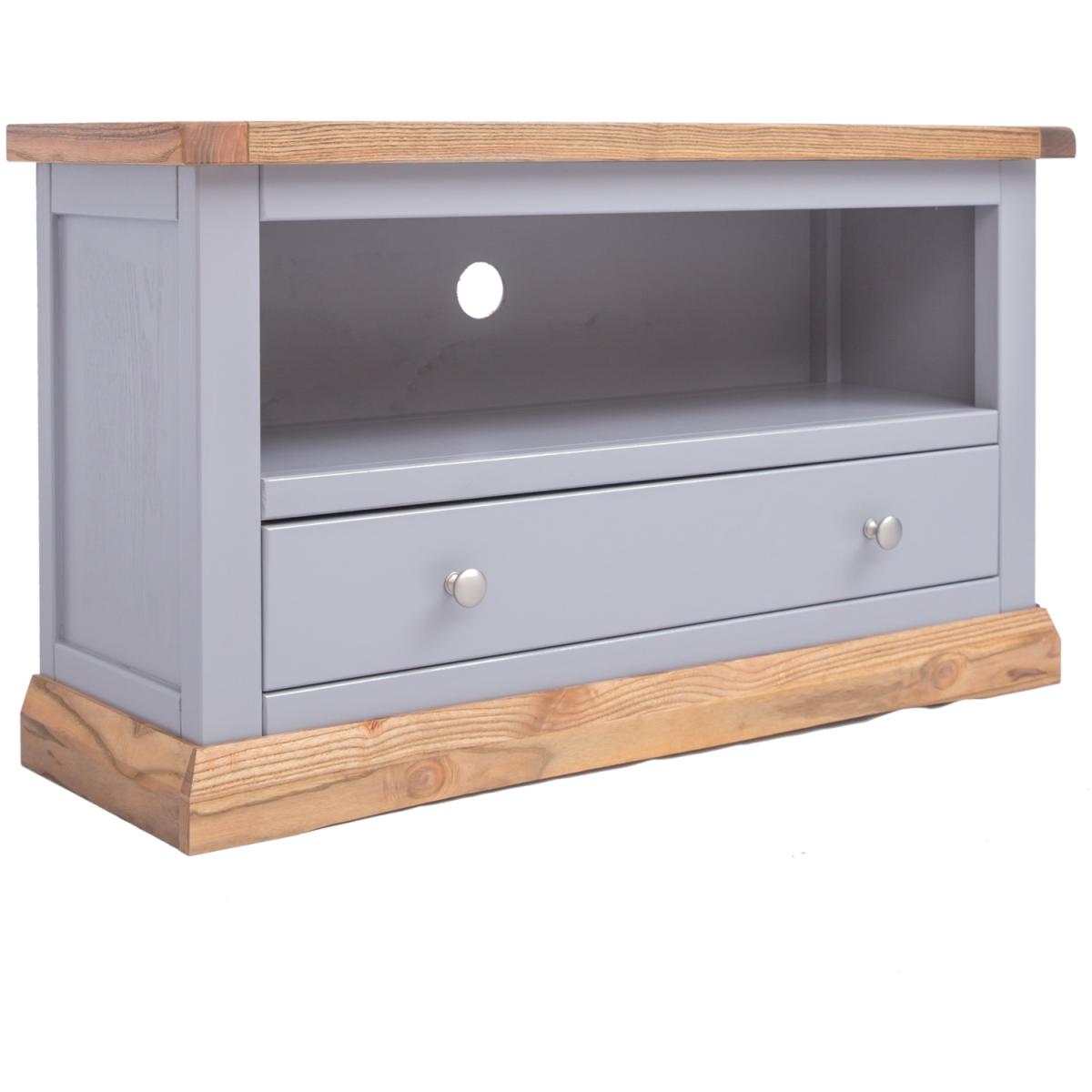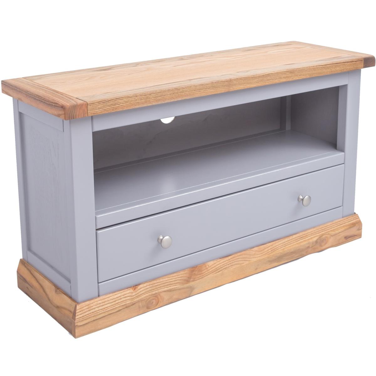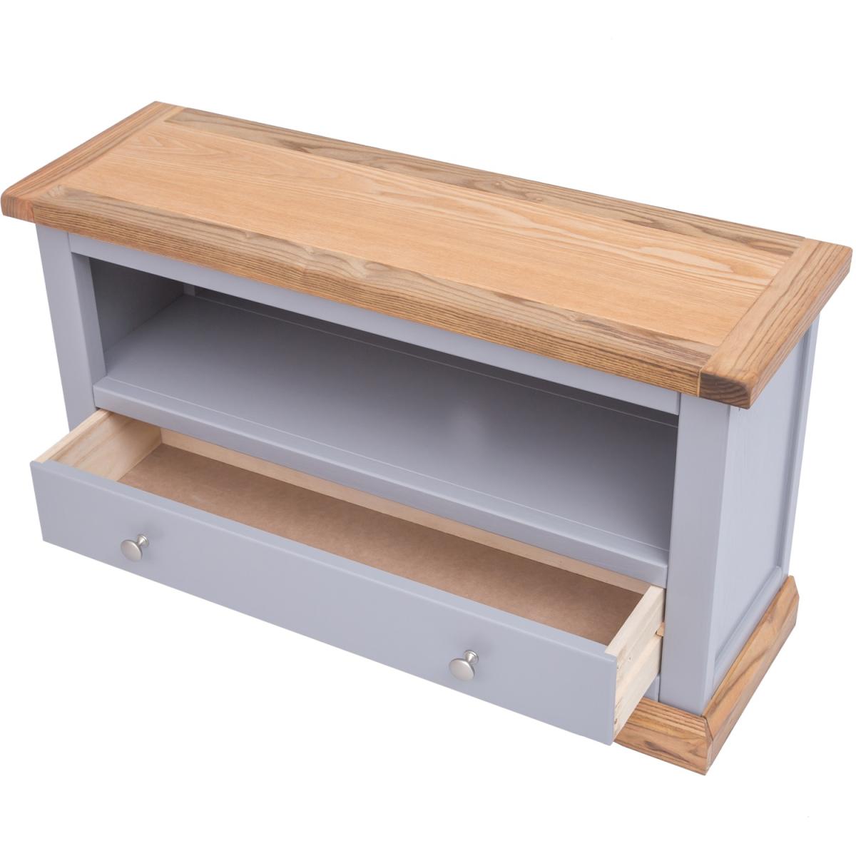 Our Biccari collection has a simple but pleasing design and is produced by our skilled craftsmen to the highest standards using responsibly sourced wood and veneers. All tops are made using a combination of hardwood and ash veneer and are carefully hand waxed giving them a great look. The body is finished with high-quality eco-friendly water-based paint in a grey colour. A compact and stylish TV unit with a full-width drawer at the bottom to store your remote controls and games consoles out of the way. Above the drawer is an open space for digital boxes or players, access for wiring is made easy by the cable holes cut out in the back of the unit.