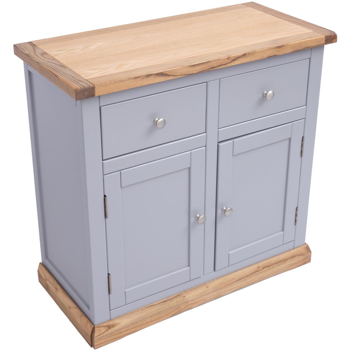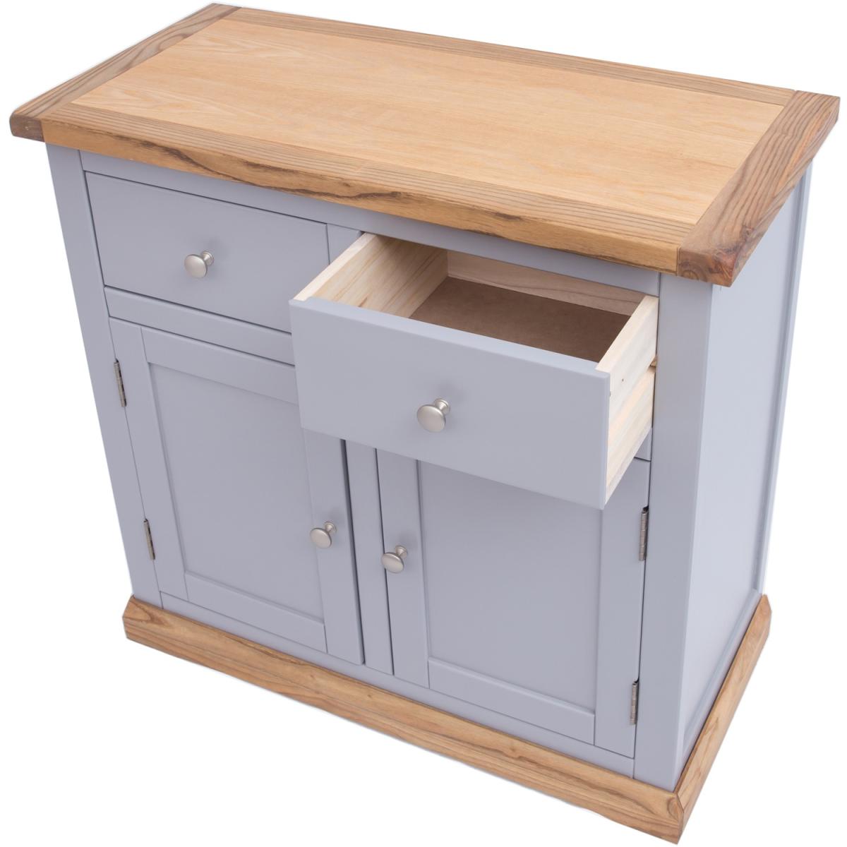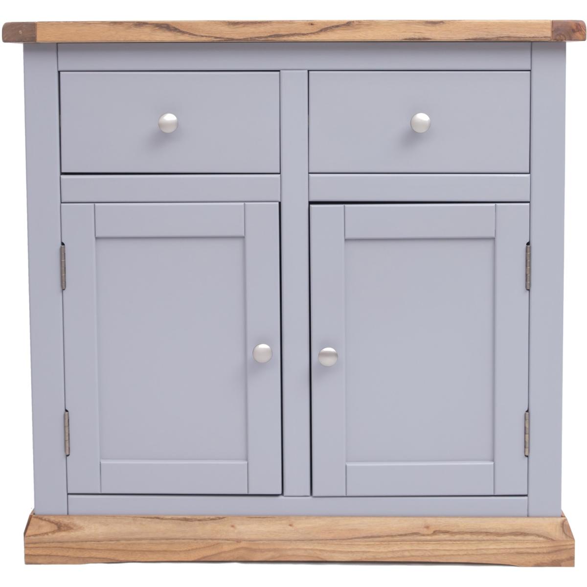 Our Biccari collection has a simple but pleasing design and is produced by our skilled craftsmen to the highest standards using responsibly sourced wood and veneers. All tops are made using a combination of hardwood and ash veneer and are carefully hand waxed giving them a great look. The body is finished with high-quality eco-friendly water-based paint in a grey colour. A compact 2-door 2-drawer sideboard ideal for your kitchen, dining room or lounge. The two doors conceal a large cupboard space for storing crockery, bottles or glassware and there is a shelf to help you organise your contents too.