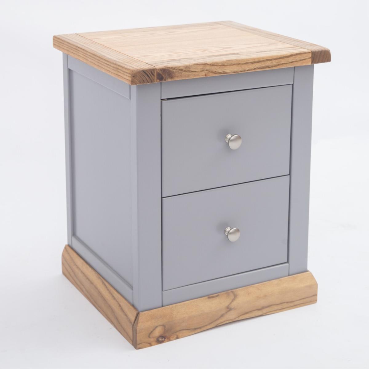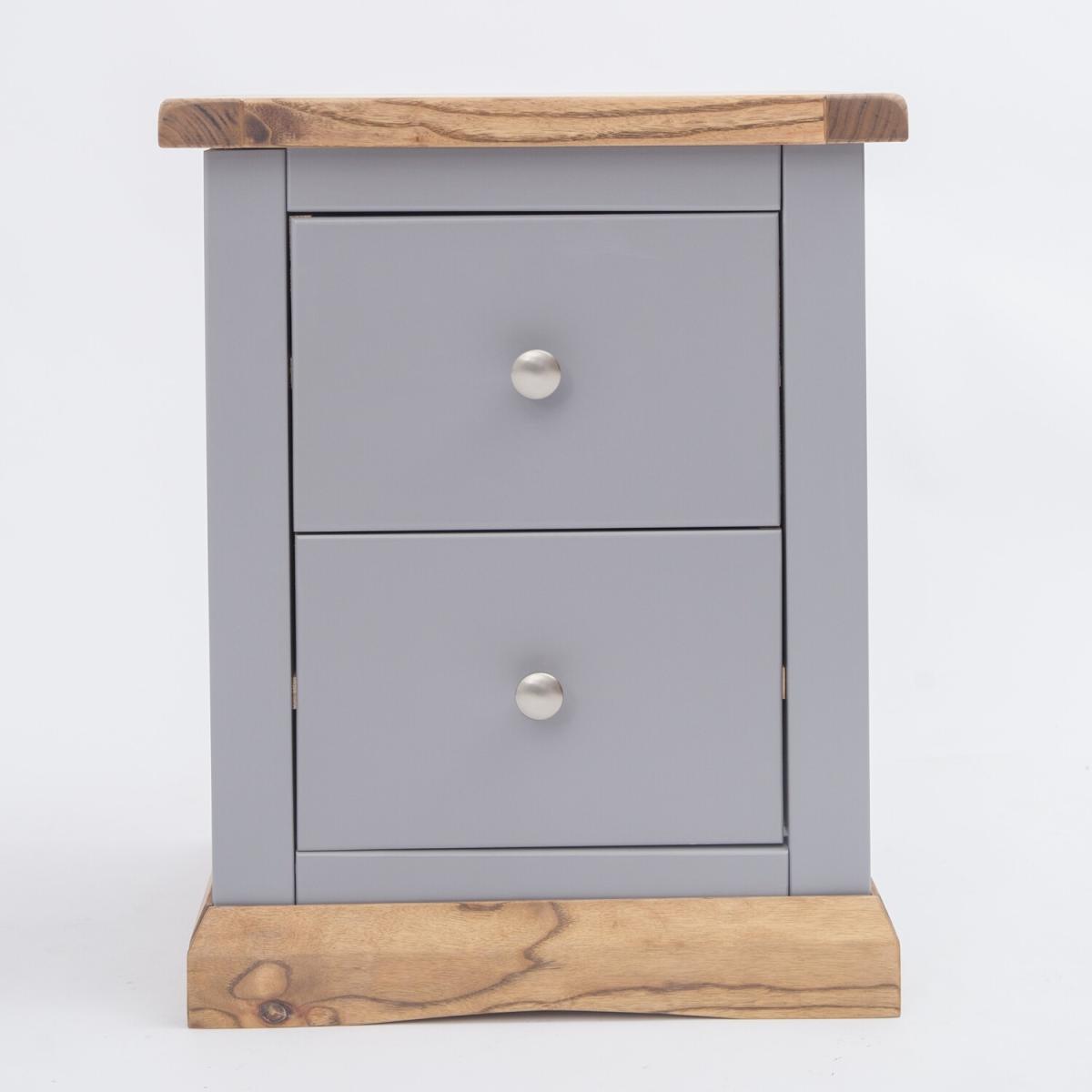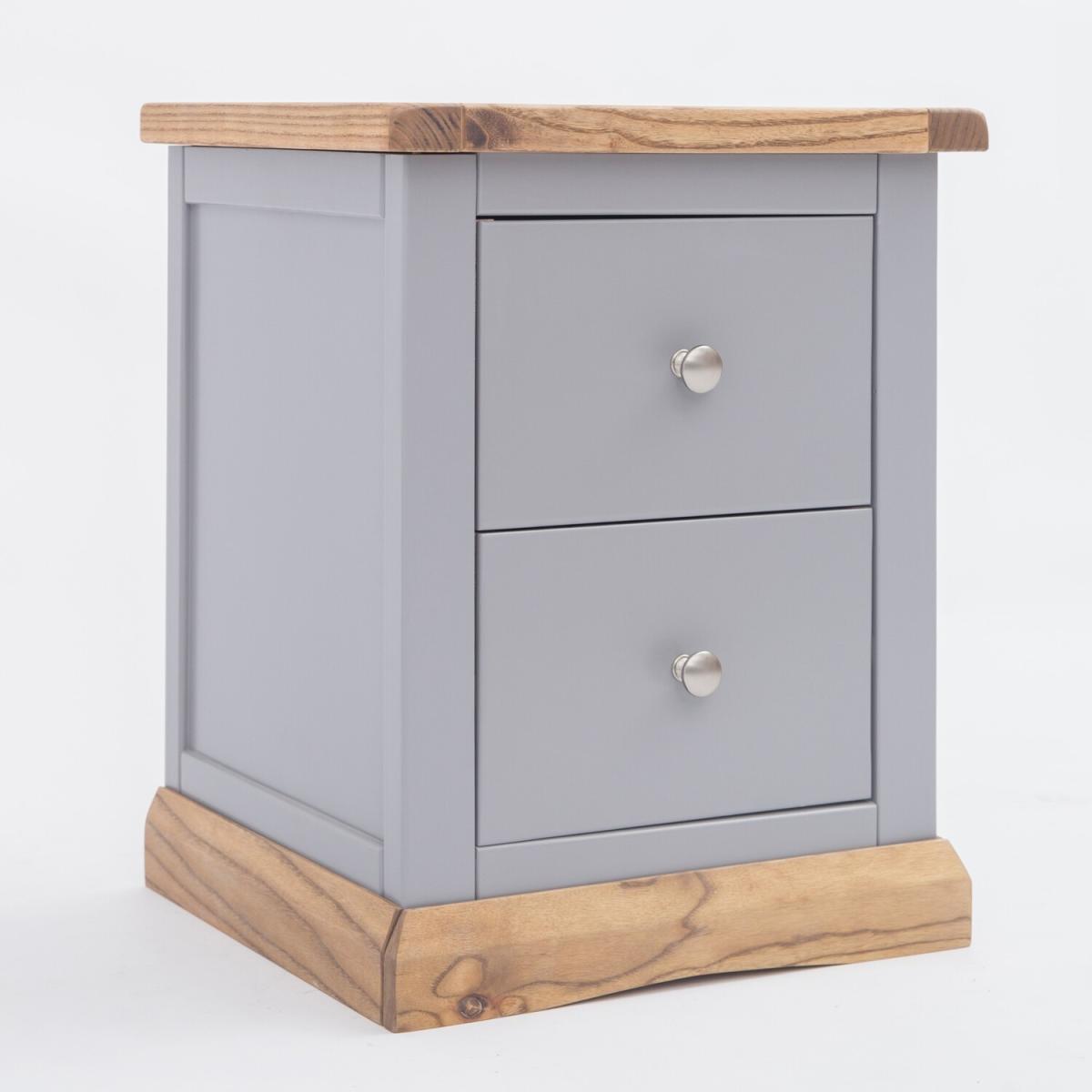 Our Biccari collection has a simple but pleasing design and is produced by our skilled craftsmen to the highest standards using responsibly sourced wood and veneers. All tops are made using a combination of hardwood and ash veneer and are carefully hand-waxed giving them a great look. The body is finished with high-quality eco-friendly water-based paint in a grey colour. This generous two-drawer bedside has deep drawers which allow all your requirements to be kept close to the bed and within easy reach, it also allows you to keep the top clutter-free and ready for your morning cuppa. These attributes combined with a simple construction for easy assembly make it a great value product to be taken home today.