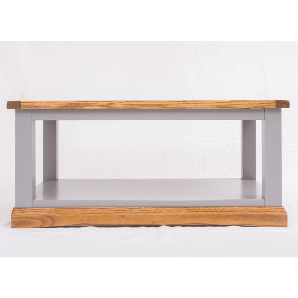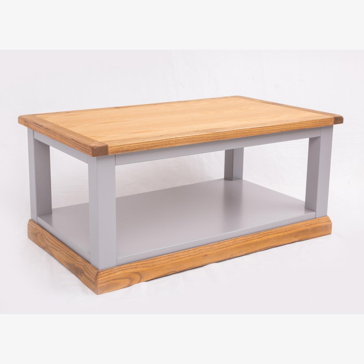 Our Biccari collection has a simple but pleasing design and is produced by our skilled craftsmen to the highest standards using responsibly sourced wood and veneers. All tops are made using a combination of hardwood and ash veneer and are carefully hand waxed giving them a great look. The body is finished with high-quality eco-friendly water base paint in a grey colour. This coffee table is perfect as a centrepiece for your room. The top has plenty of space for TV remotes, magazines, your tablet or your favourite scented candle. It is also perfect for drinks and snacks, but don't forget to use a coaster to protect the finish. The shelf below allows space for those other items you need close to hand to be stored conveniently, perhaps tissues or your snuggle blanket for cold nights. These attributes combined with a simple construction for easy assembly make it a great value product to be taken home today.