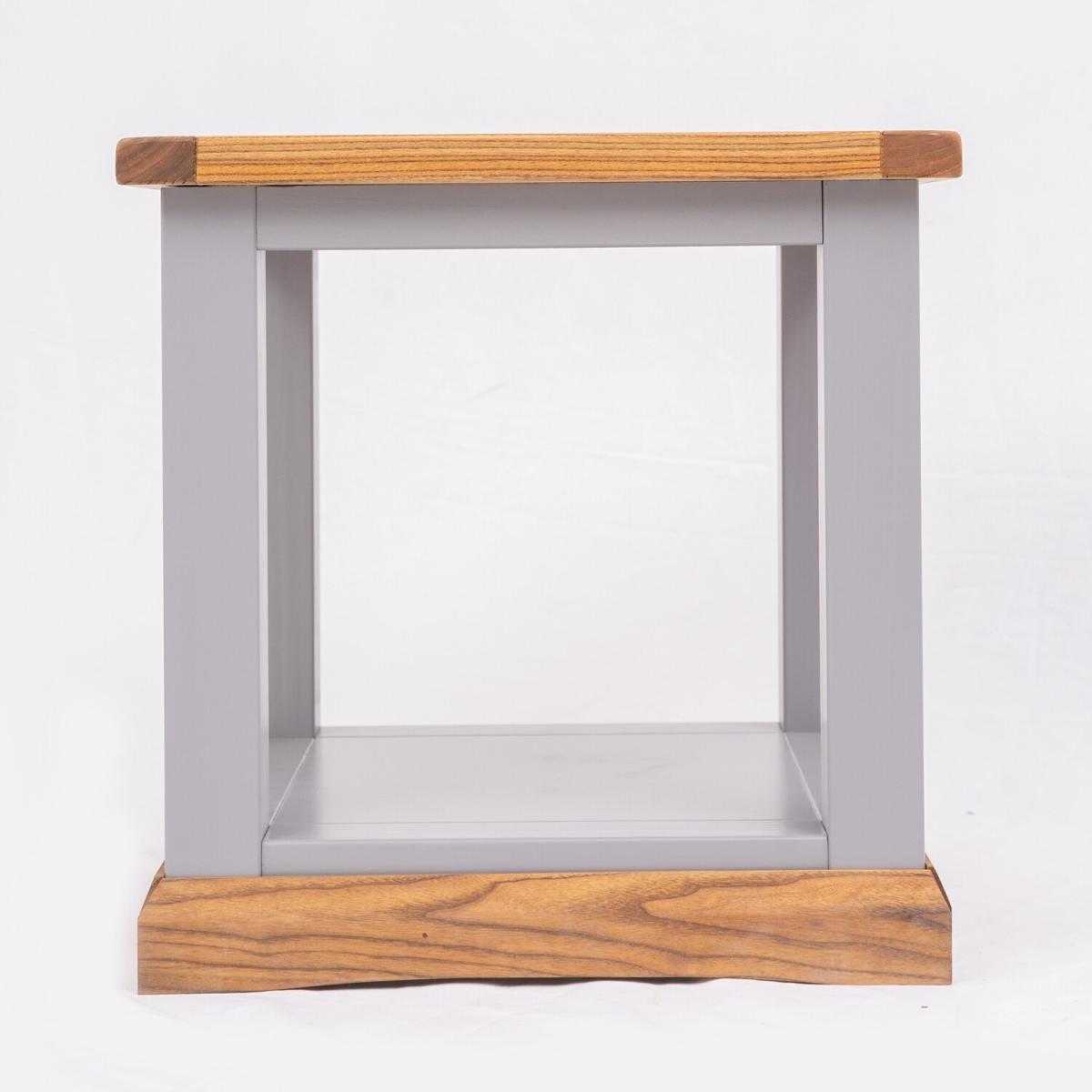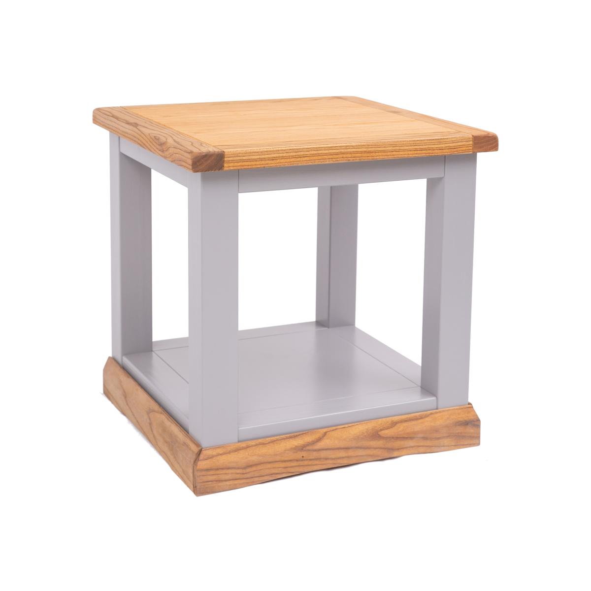 Our Biccari collection has a simple but pleasing design and is produced by our skilled craftsmen to the highest standards using responsibly sourced wood and veneers. All tops are made using a combination of hardwood and ash veneer and are carefully hand waxed giving it a great look. The body is finished with a high quality eco-friendly water base paint in an grey colour. A compact lamp table ideal for between your sofas and chairs or anywhere in your home where you require an occasional table to use. The shelf underneath allows space for storage if required. These attributes combined with a simple construction for easy assembly makes it a great value product to be taken home today.