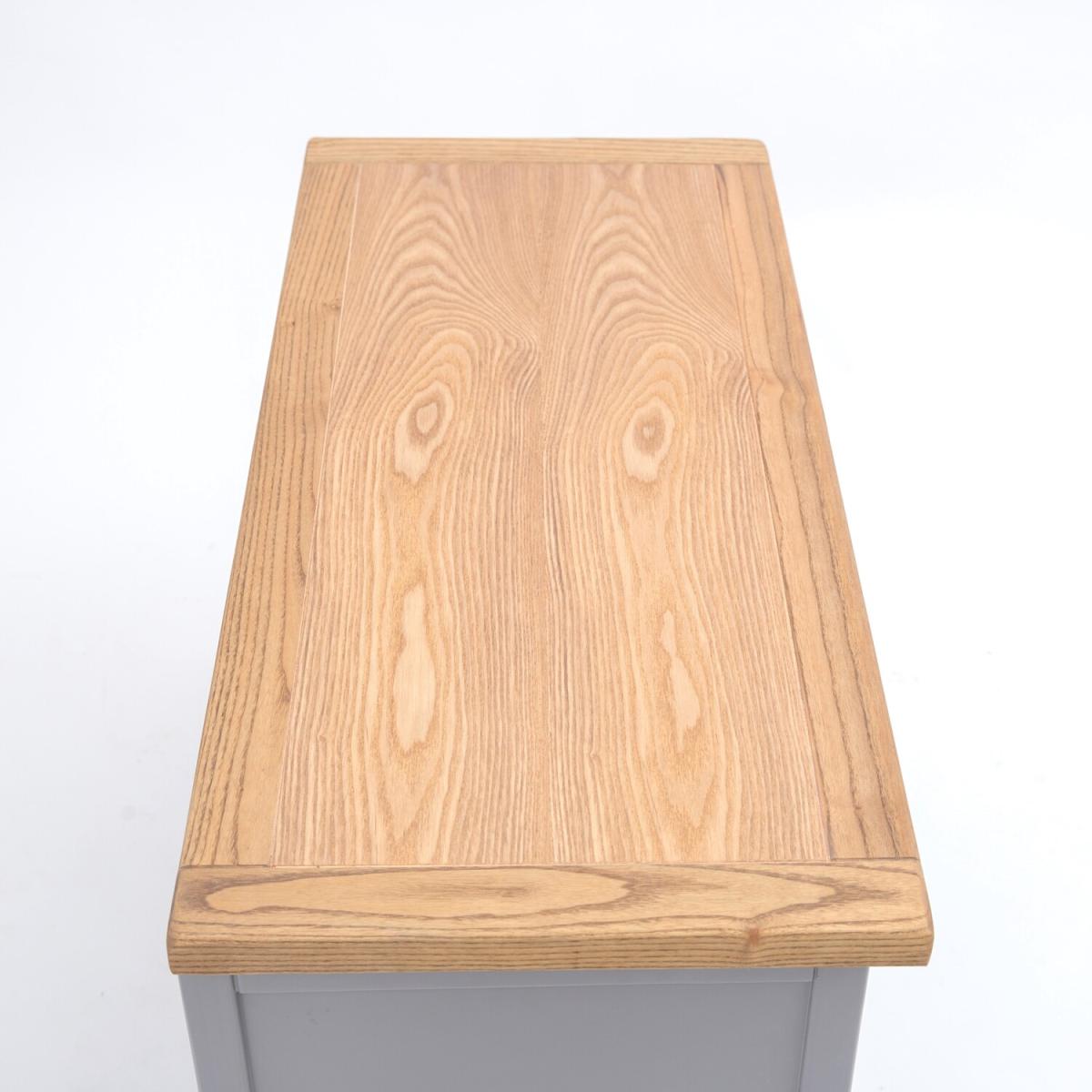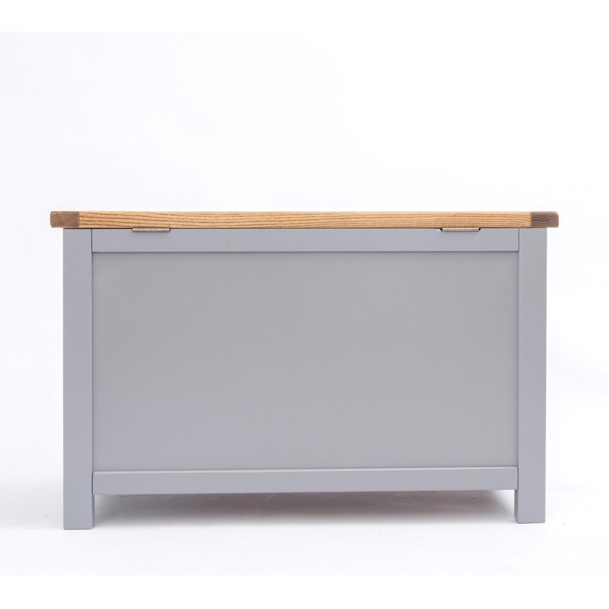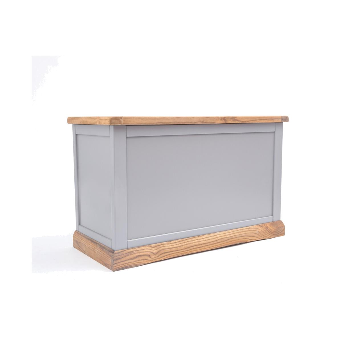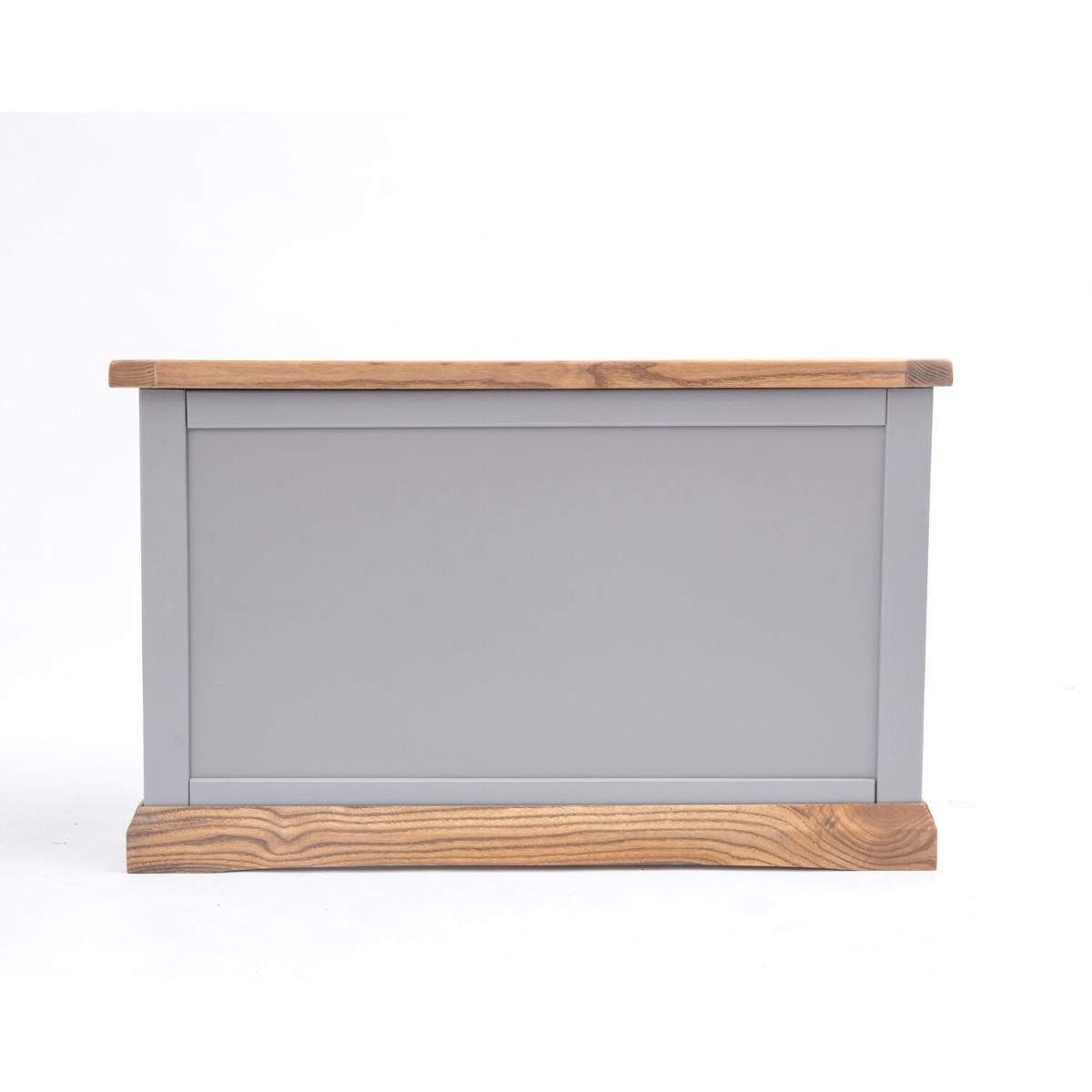 Our Biccari collection has a simple but pleasing design and is produced by our skilled craftsmen to the highest standards using responsibly sourced wood and veneers. All tops are made using a combination of hardwood and ash veneer and are carefully hand waxed giving it a great look. The body is finished with a high quality eco friendly water base paint on an grey colour. This ottoman is the perfect item to fit in small areas, but still offers plenty of storage space for all your essentials. It comes with a safety holder to avoid accidents and it is made with a solid wood frame and veneer panels, making it very strong and stable, guaranteeing it will last for a long time. The top has a 3cm thick solid wood frame, making it extremely sturdy. These attributes combined with a simple construction for easy assembly makes it a great value product to be taken home today.