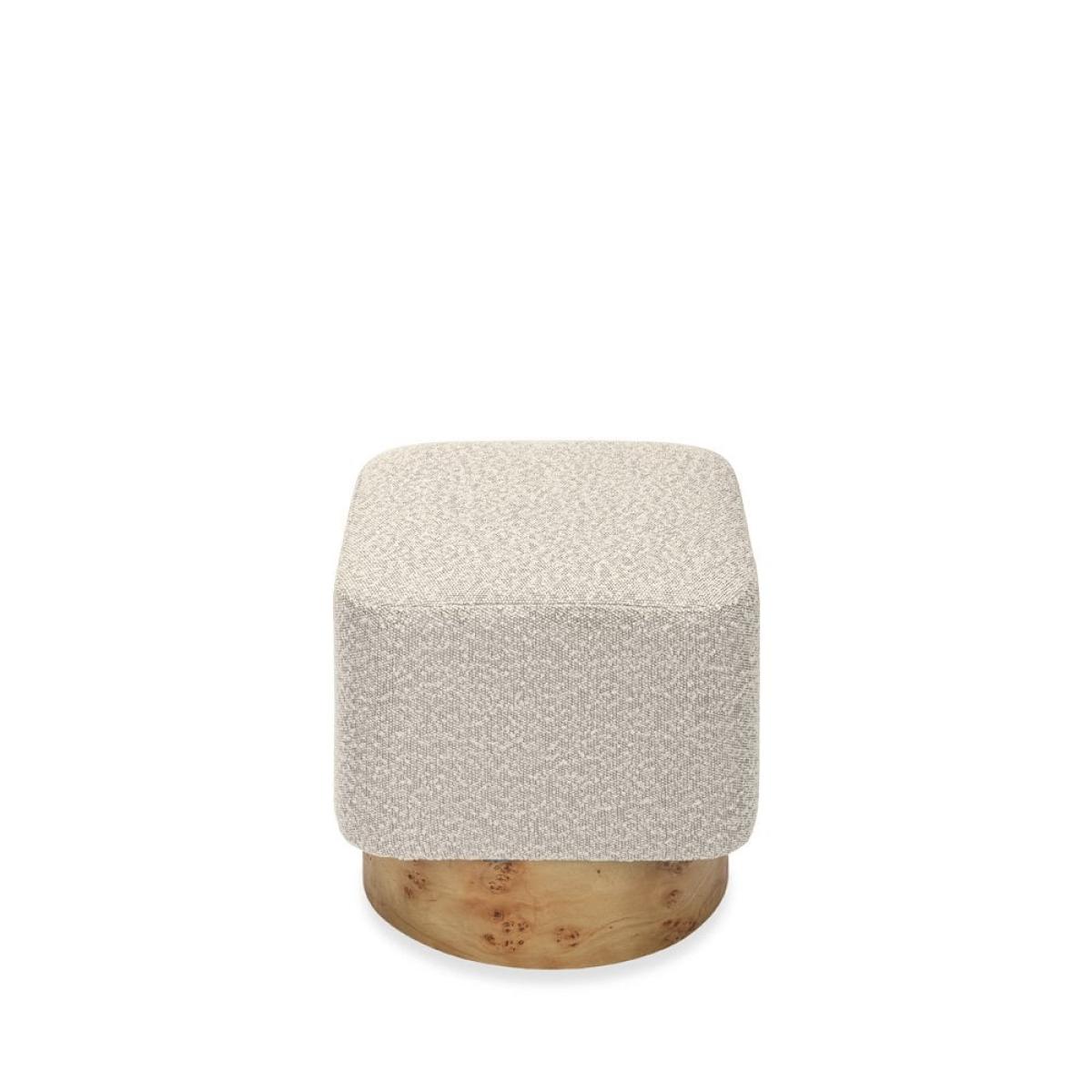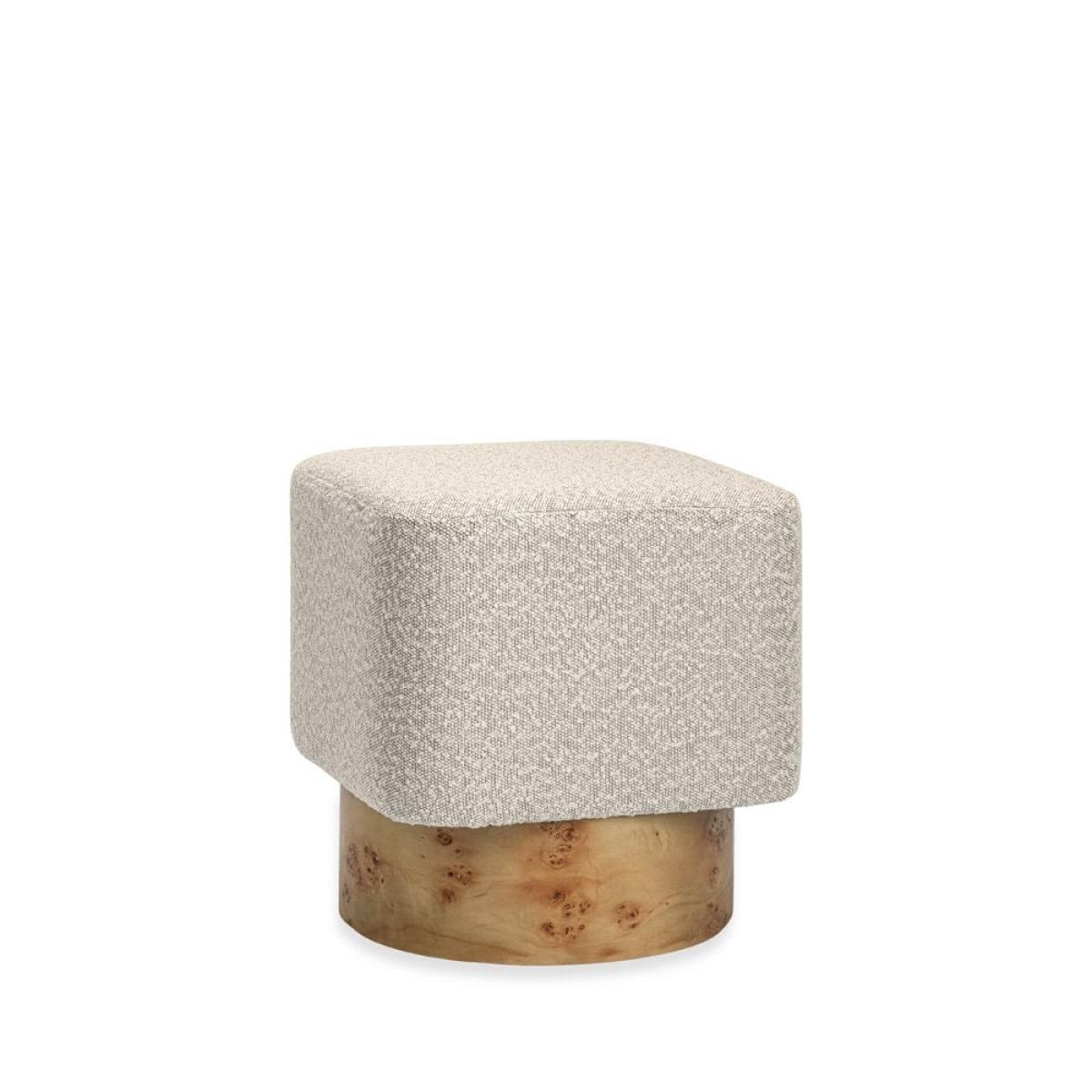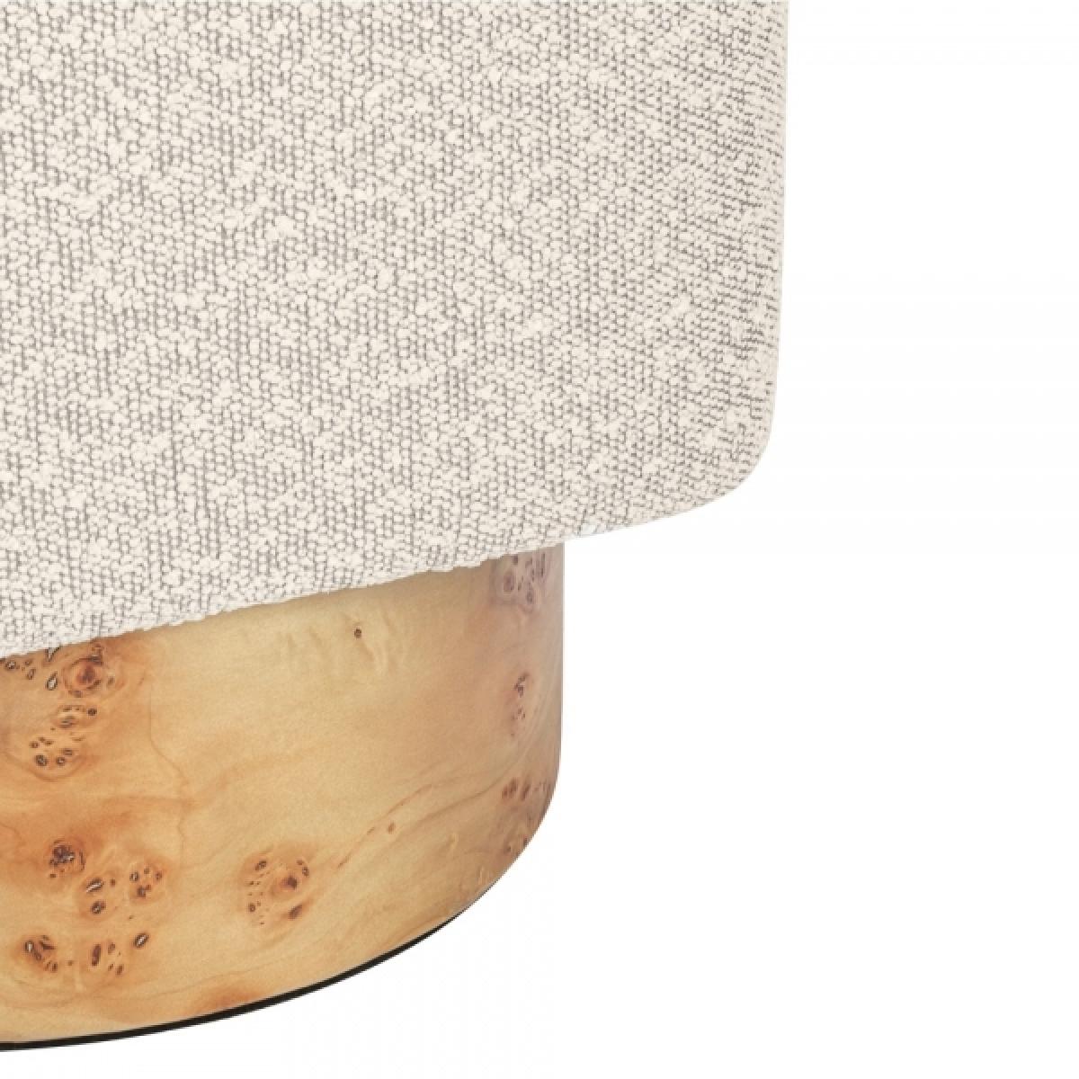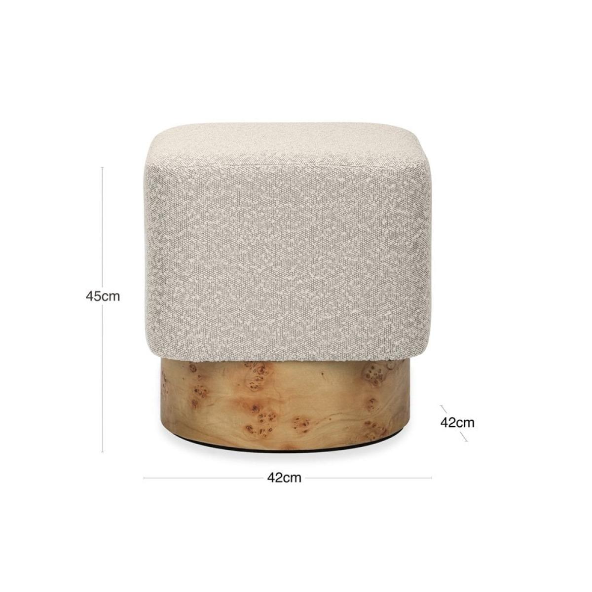 Whether used as an extra seat or sublime footrest, elevate your living space with the Bidbury Boucle Pouffe. The delicious combination of the burl wood base and tactile body offers an exciting contrast in textures. The greys and creams of the speckled stone boucle blend with existing decor effortlessly whilst the unique knots and patterns of the wooden base offer depth and intrigue. For a rich depth of colour and unique softness, our boucle used in this pouffe is not only of the highest quality but it is made from recycled PET yarns so it is kinder to the environment too.