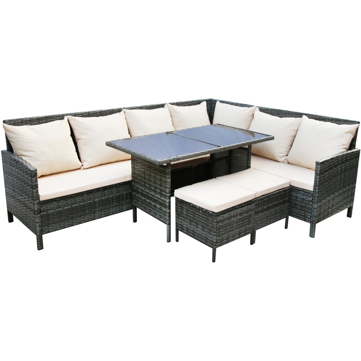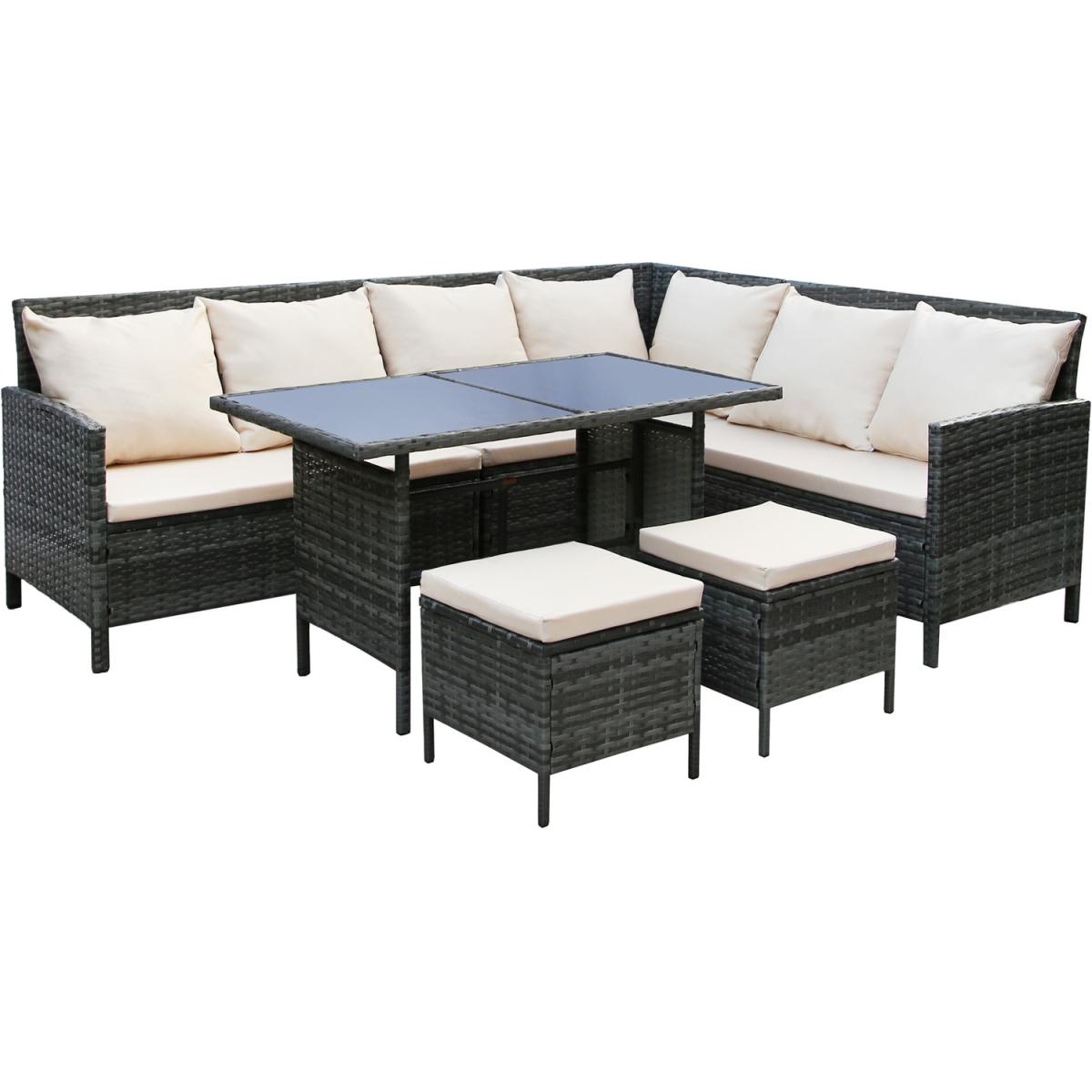 Bideford 8-Seat Rattan Corner Dining Sofa Set - Grey/Beige