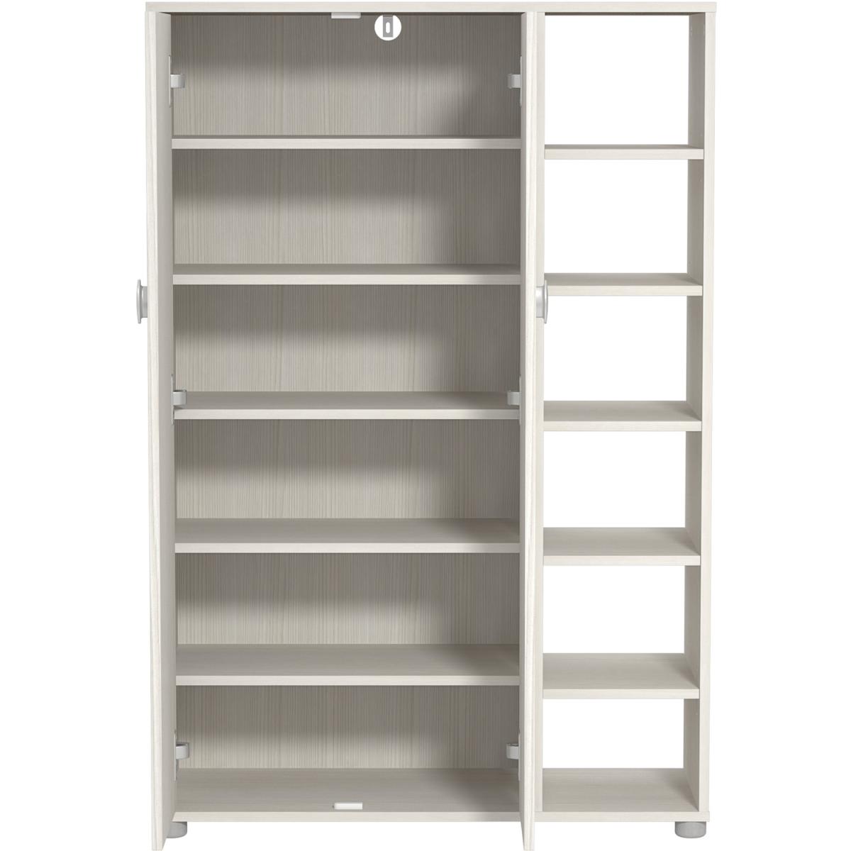 Get organized with our stylish and practical shoe rack. Our product features 2 doors and open shelves that provide ample room for shoe storage, making it easy to keep your shoes organized and easily accessible. With its sleek design and durable construction, our shoe rack is perfect for any space in your home, from your entryway to your closet. Say goodbye to cluttered entryways with our shoe cabinet! With ample storage space for up to 24 pairs of shoes, this organizer keeps your footwear neat and tidy while also adding style to your home decor. Upgrade your home organization today with our shoe rack!