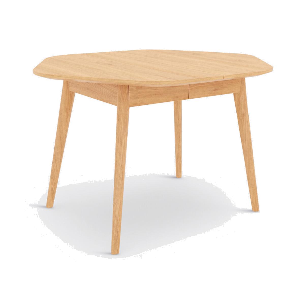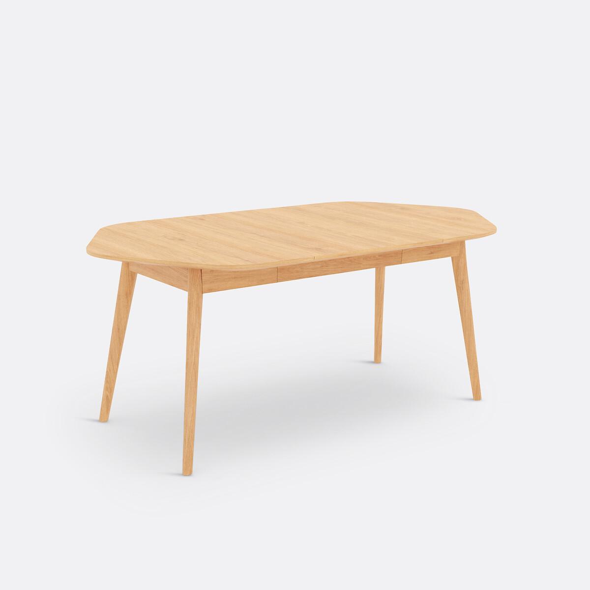 The Biface extendable dining table can be extended from 4 to 10 place settings. We love its very original hexagonal shape and vintage-style tapered legs. Product Details • Hexagonal shape, with 2 extensions, great depth: 110cm. • Top and extensions in oak veneered MDF, polyurethane varnish finish. • Double bevel top edge. • Feet in solid oak with polyurethane varnish. • 2 extensions, extension slides on metal rail. • Dimensions. Extension L60 x H12 x D110cm. • Closed version, 4-6 seater. • 1 extension = 8 places. • 2 extensions = 10 places. • Felt pads. • Made in Europe. • The table can extend to seat 4-10 people. Dimensions • Width 120/180/240 cm. • Depth 110 cm • H75cm • This product requires assembly. • Made in Europe. • WOOD FROM SUSTAINABLY MANAGED FORESTS. FSC® certified wood comes from forests that are environmentally, socially and economically well managed. Dimensions and weight of parcel:2 parcels : • L122 x H13.5 x D71cm, 40kg • L94.5 x H9.5 x D35cm, 21kg