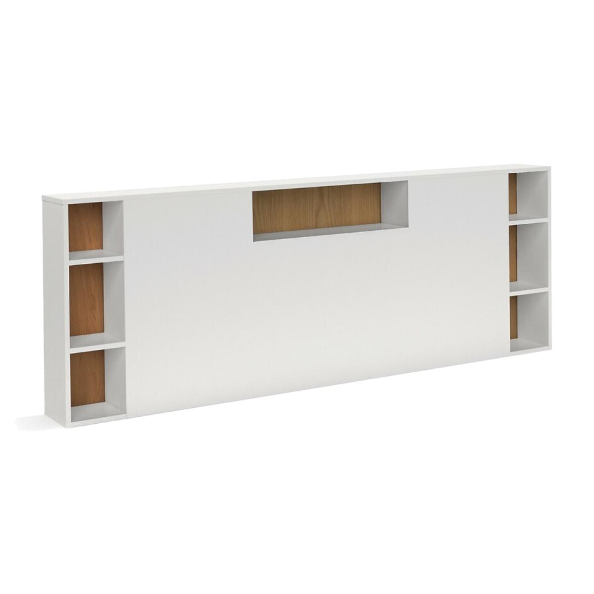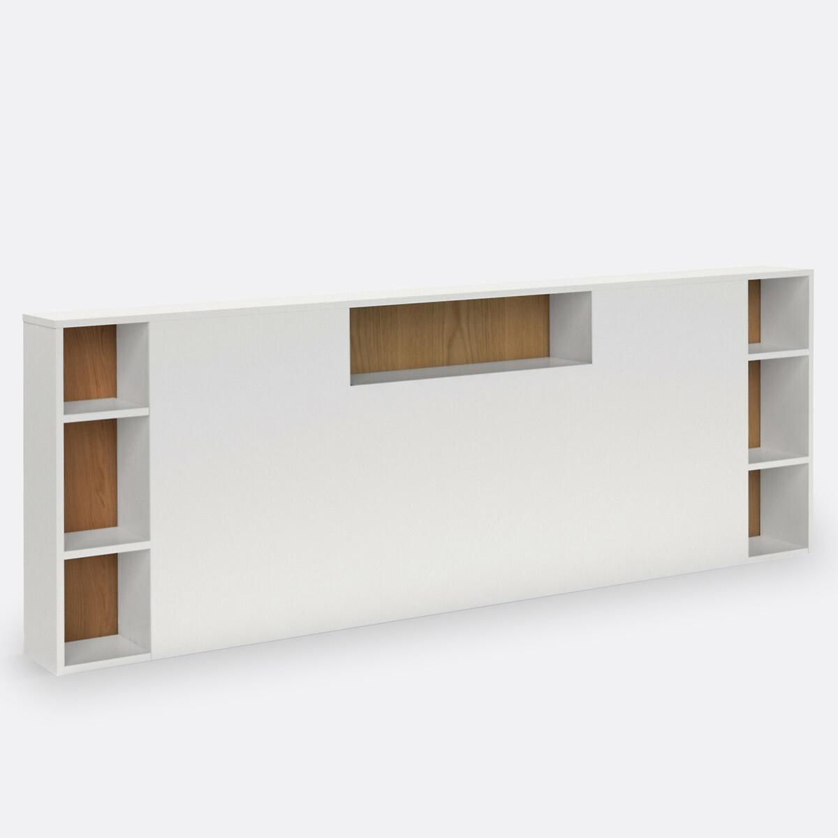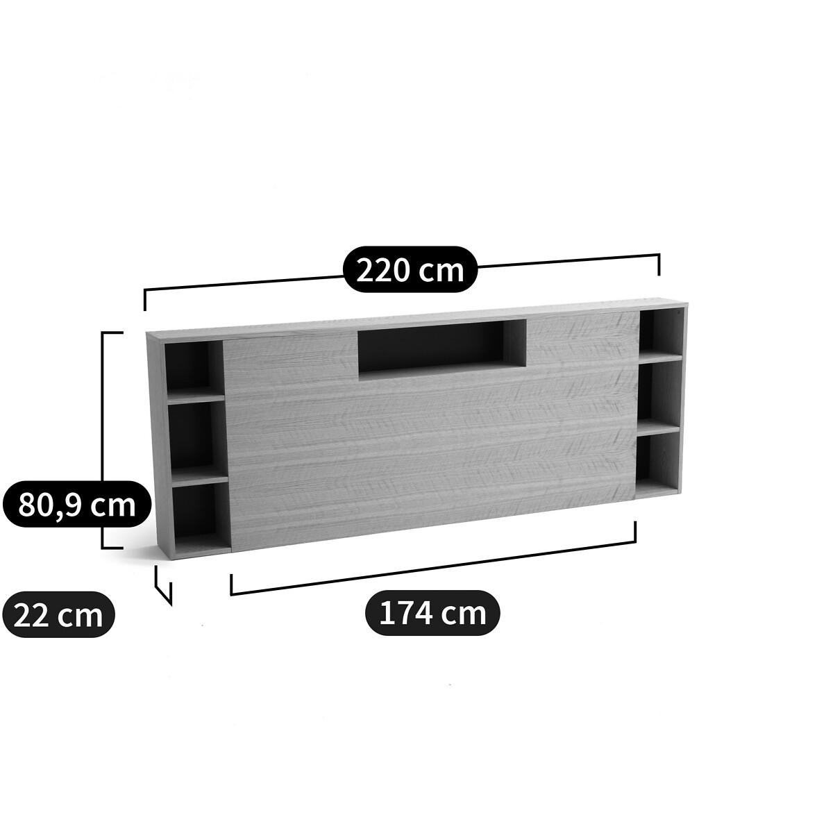 With a contemporary feel and its large dimensions, this Biface headboard is very functional thanks to its numerous storage spaces. Made in Europe. Product Details • 3 compartments on each side. • 1 large central compartment. • Wall fixing recommended. • Lacquered MDF and interior of compartments veneered in light oak colour, polyurethane varnish finish, FSC® certifiedDimensions. Overall • Width: 220cm • Height: 80.9cm • Depth: 22cm • Weight: 55.5kg.Interior • Central compartment: L70.7 x H18.1 x D19cm. • Small side compartments : L21 x H20 x D21cm, L21 x H28 x D21cm, L21 x H25 x D21cm. • Made in Europe. • WOOD FROM SUSTAINABLY MANAGED FORESTS. FSC® certified wood comes from forests that are environmentally, socially and economically well managed. Dimensions and weight of parcel:2 parcels. L186 x H5.5 x D85cm, 36kg. L232 x H9.5 x D28cm, 22kg. Home Delivery:Your Biface storage headboard is self-assembly. It will be delivered to your door!Note! Please check that access points (doorways, stairways, lifts) are wide enough to accommodate your delivery.