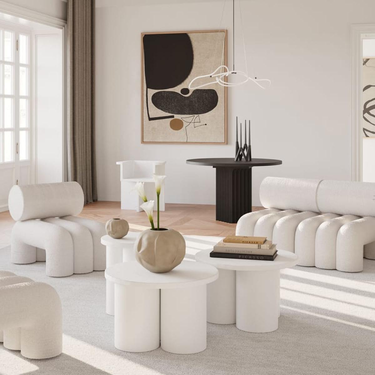 This side table’s bold, sculptural form makes it a versatile statement piece that works especially well in contemporary or minimalist interiors. Its oversized, cylinder-inspired shape adds visual interest without overwhelming the space, and the white composite finish keeps it neutral enough to pair with a range of colour palettes and textures. I love styling it alongside neutral-toned sofas, where it can serve as both a practical surface and a design feature. For a layered look, try placing a mini plant, a stack of books, or a decorative object on top. Its substantial presence also makes it suitable as a standalone statement in a corner or within a collection of smaller side tables. Overall, it’s a practical and eye-catching addition that offers flexibility and modernity to any room.