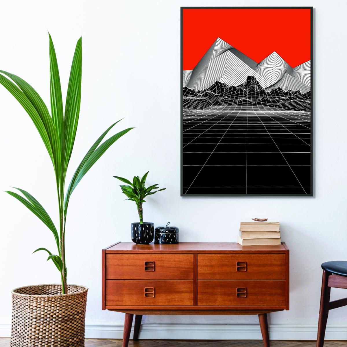 I love the Big Red Small Stanley Print House for its bold, modern aesthetic. It works particularly well in contemporary and minimalist interiors, adding a striking focal point without overwhelming the space. The vivid red background makes it ideal for injecting colour into neutral rooms or for contrasting against dark walls. For practical styling, consider pairing it with sleek black or white furnishings to keep the look cohesive, and hang it at eye level to maximise its impact. Its geometric landscape pairs well with other graphic or abstract pieces, making it a versatile choice for those looking to add a touch of urban or futuristic vibe to their home.