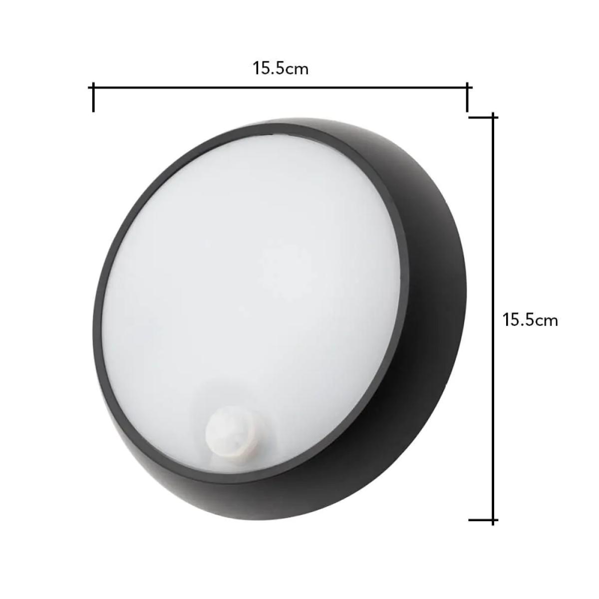 Bigton 8 Watt LED Outdoor Round Bulkhead with PIR Sensor, Black