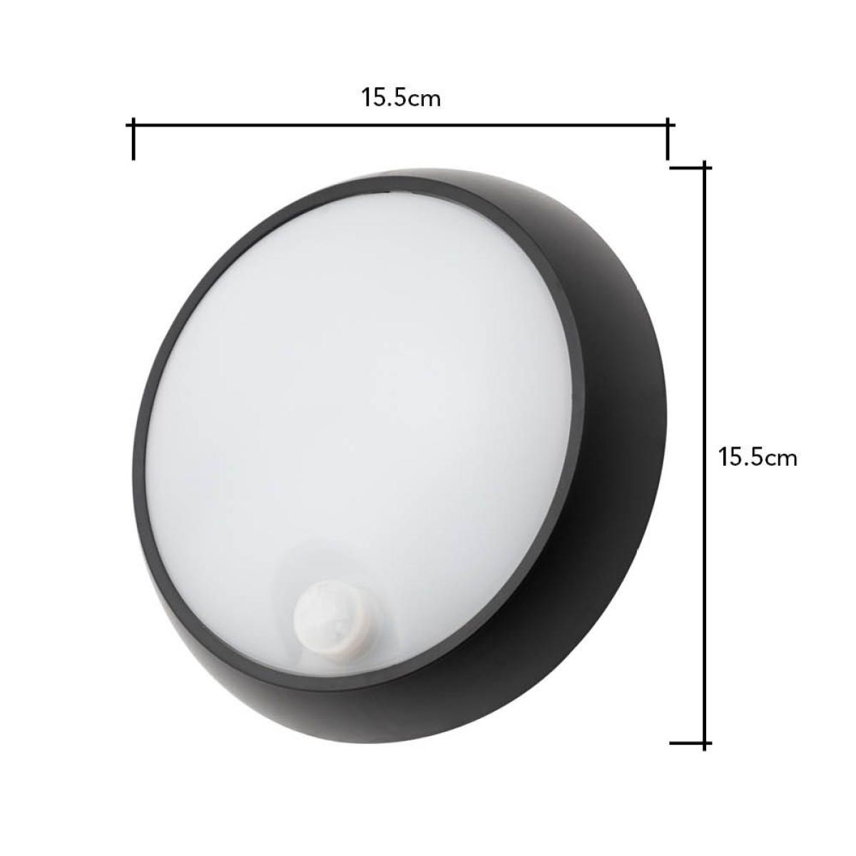 Add a practical lighting touch to your outdoor spaces with the Bigton 8 Watt LED Outdoor Round Bulkhead Light. With a sleek black finish and a rounded design this wall light gives a minimalist and modern aesthetic to the outside of your home. It also features a PIR sensor which detects motion outside your home and instantly triggers the light, acting as useful security addition to deter unwanted intruders.