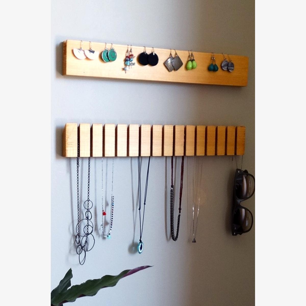 Bijoox wall-mounted organizer shelf will be an glamorous part of your room with its stylish appearance and unusual design. While offering you quality with its solid structure, it will give your room a completely different look with its aesthetic design. The Bijoox offers a new space for your accessories and jewelry. The product consists of two parts. This product comes with 3m double side tapes. It works perfectly with this product on suitable surfaces like wallpaper, cabinet surface, properly plastered walls. Just clean the surface with a damp cloth, let it dry, remove the protective covers of the tapes, place the product on the surface and apply pressure for a few seconds. It is made of first class kiln-dried beech wood. The product, which is prepared with two layers of sandpaper and two layers of paint, is offered for sale after passing all quality controls. The paints used are certified in EN71-3 standards and do not harm human and animal health. Installation instruction and hardware pack are included in the package.