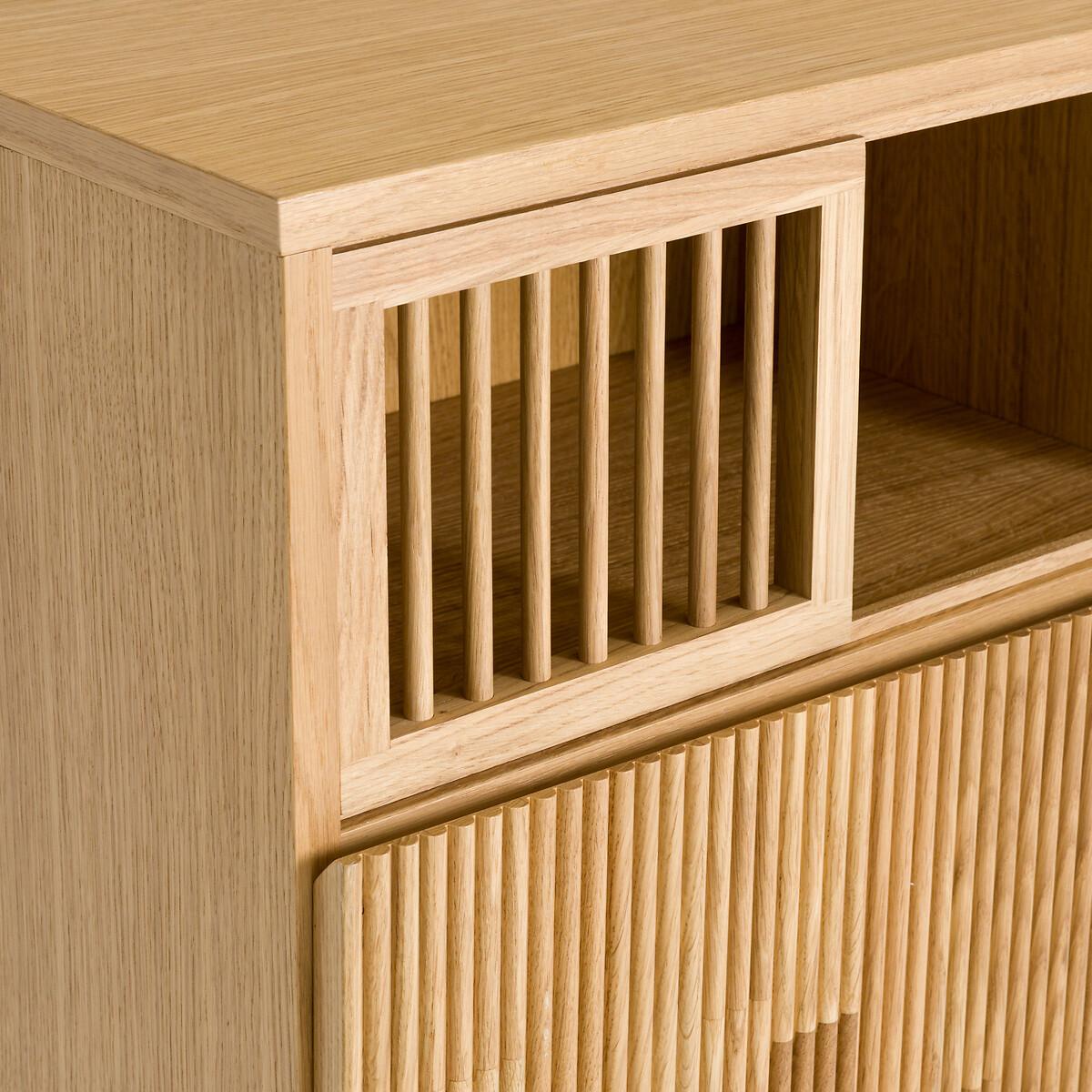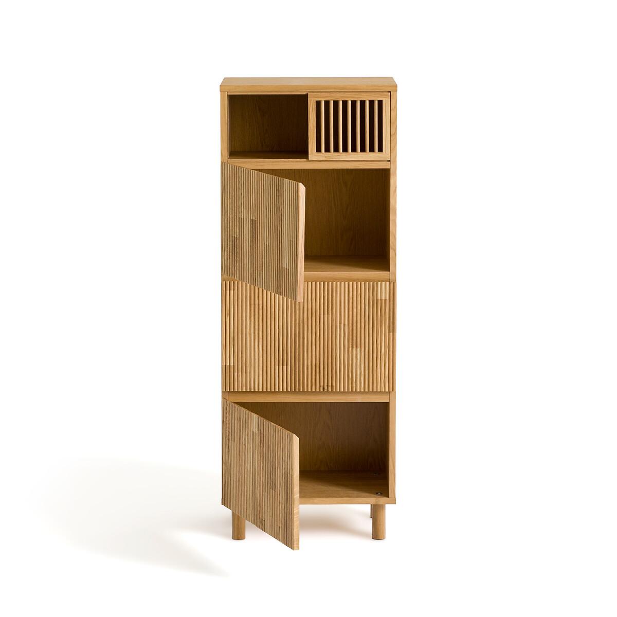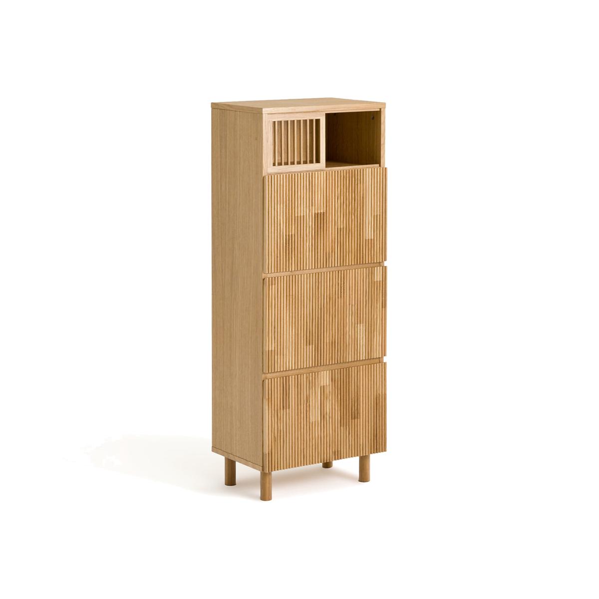 Made in Europe, the Bilbao 3-door wardrobe offers great storage capacity. Its depth has been designed so this cabinet can be installed in all types of entrances, even the narrowest..Created by La Redoute Interiors. Product Details • 3 doors + 1 sliding half-door with perforated bars • Oak veneered particleboard box • Sliding doors: solid oak frame and rails, diameter 10mm • Fronts of the 3 doors in half-round grooves in solid oak • Legs: solid oak, 40mm diameter • Back panel in 3mm MDF oak veneer on one side • Colourless nitrocellulose varnish finish. Dimensions • Width: 50cm • Height: 131cm • Depth: 32cm • 1 open compartment: L45.5 x D30 x H18.5cm • 3 closed compartments: L45.5 x D30 x H30cmDelivery:. Assembly required. Available for home delivery. Note! Please check that all access points are large enough to accommodate your delivery (doors, stairs, lifts). • Made in Europe. Dimensions and weight of parcel2 parcels • L70 x D39 x H18cm. 13kg • L132 x D38 x H11cm. 19kg