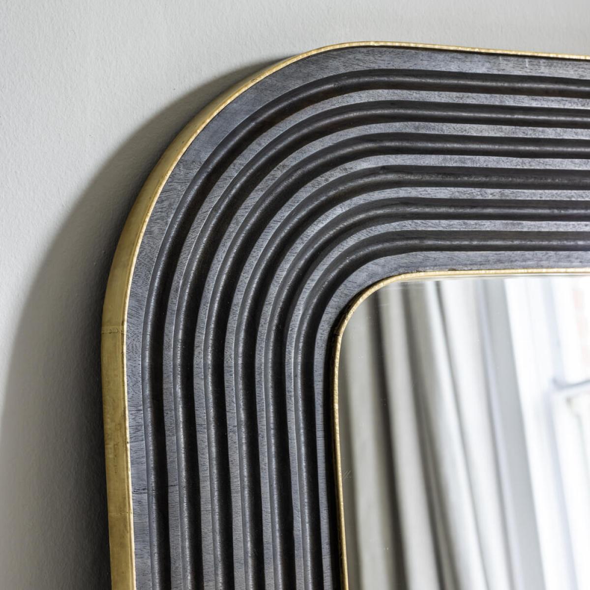Our Bilbao Carved Wooden Mirror is a statement square mirror with curved design detail in stained wood with a brass metal finish. Its retro style will complement any interior décor and it looks great hung in the hallway, or above the fireplace in the living area. This 90cm square mirror is a generous size for adding a focal point to your room, while creating a feeling of light and space. Matching Bilbao full length mirror also available.